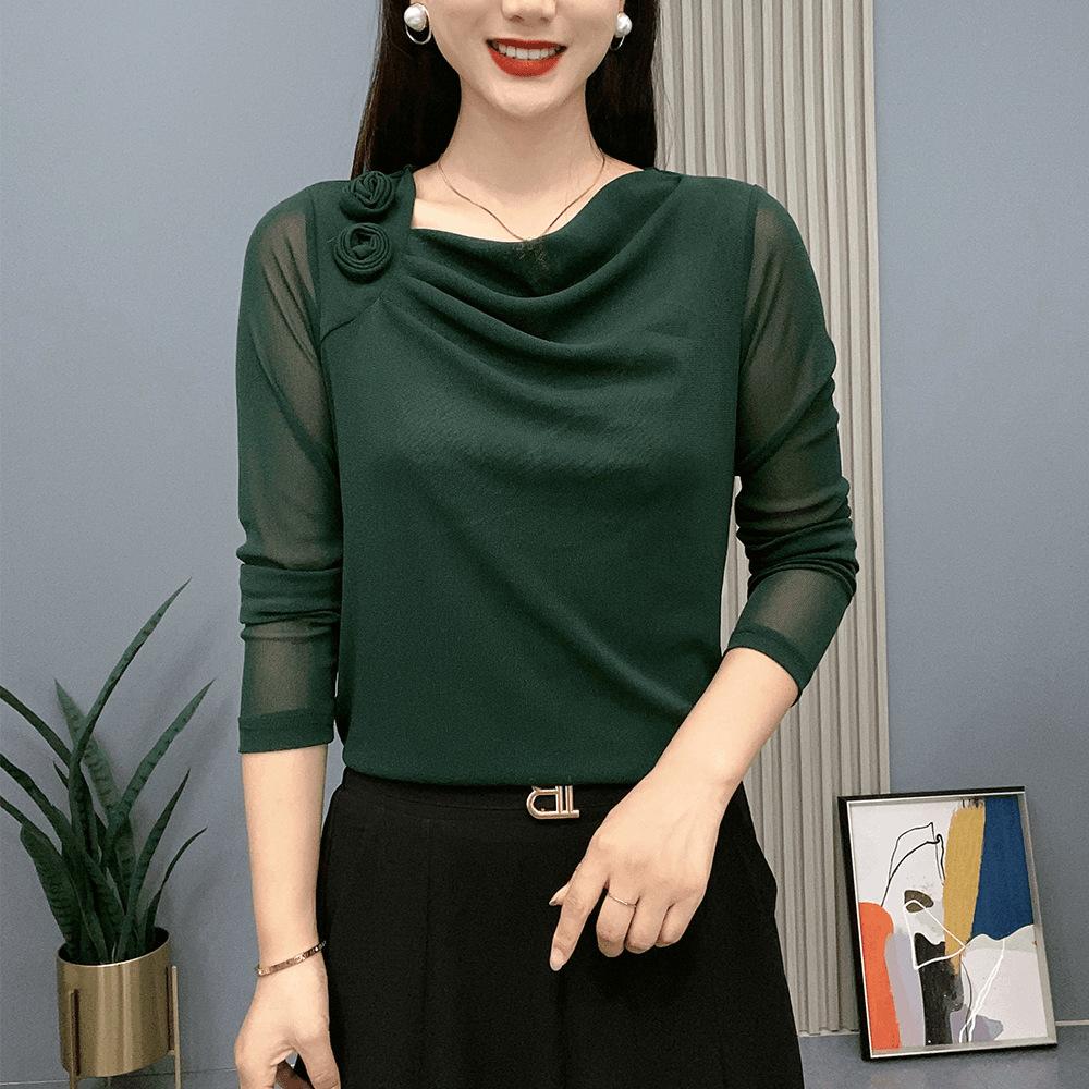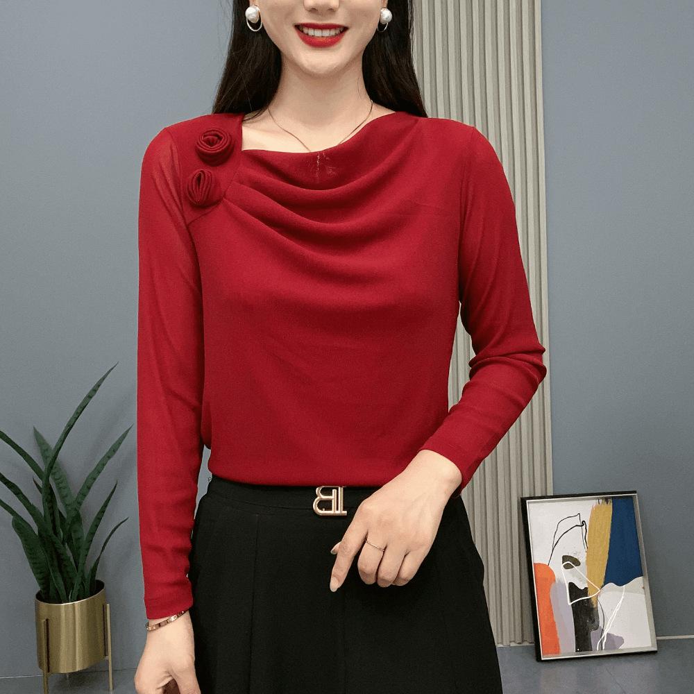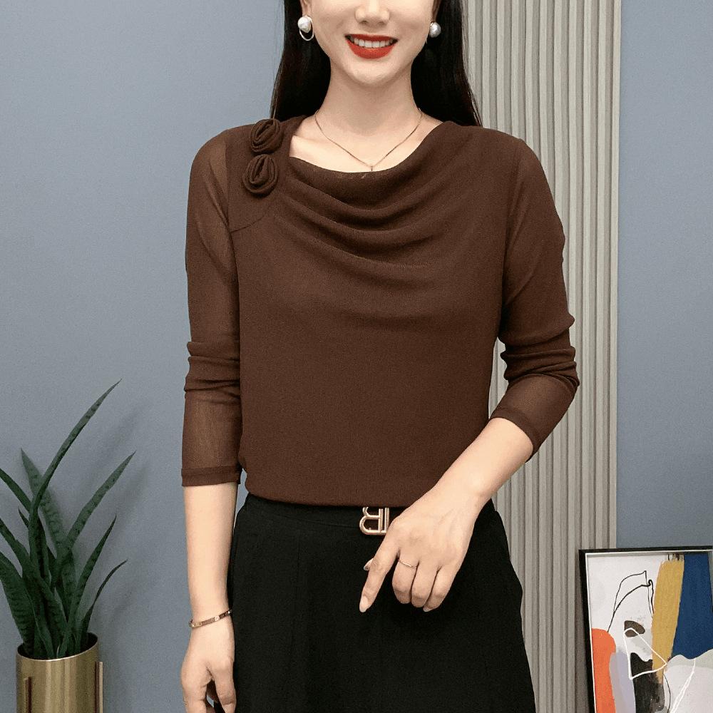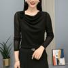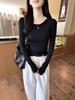 Otoño 2024 Nueva camiseta de manga larga para mujer, elegante y a la moda, con base de hilo elástico, camiseta adelgazante que combina con todo.