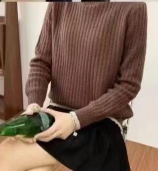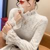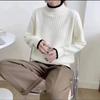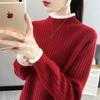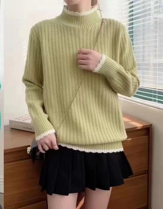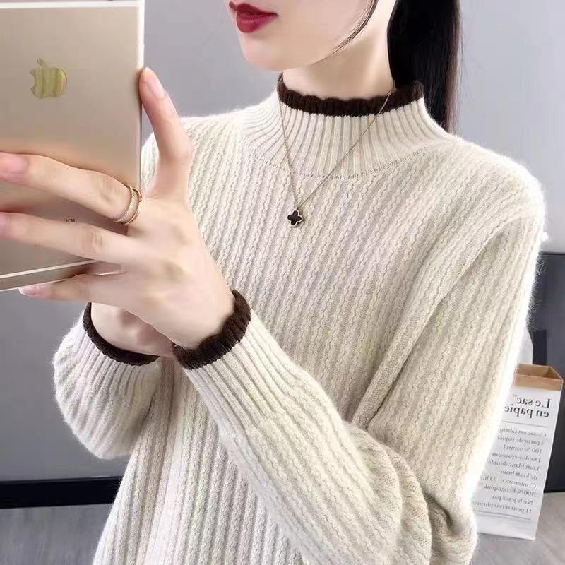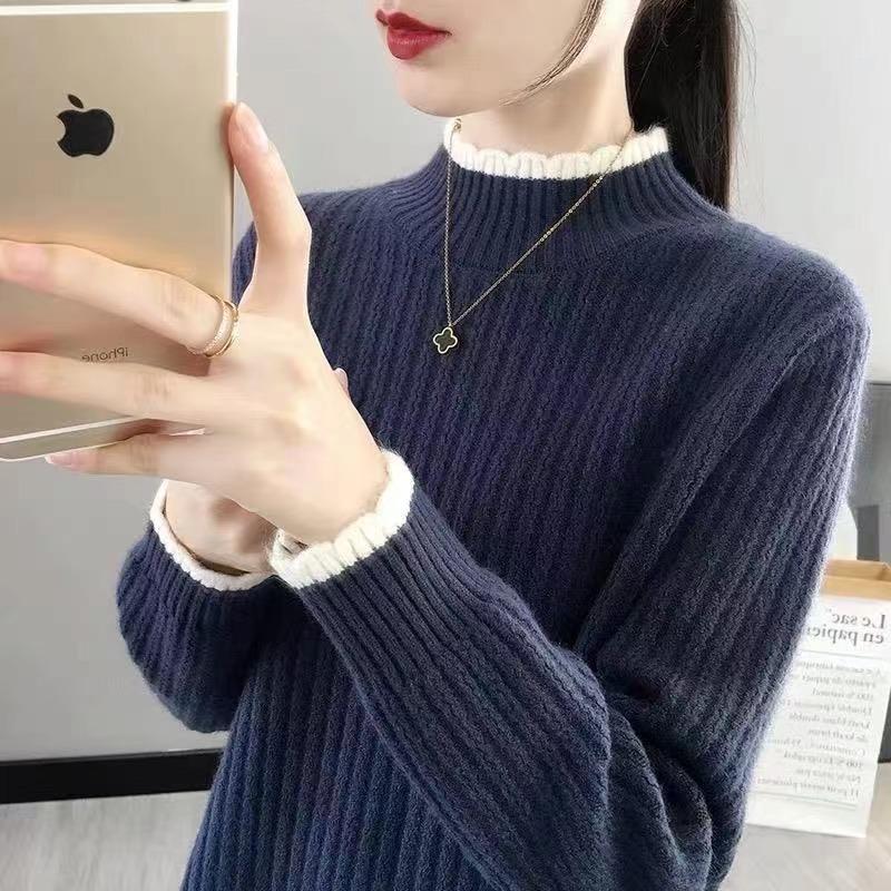 Suéter de otoño e invierno nuevo, holgado y grueso, de punto con encaje a juego de colores, cuello alto medio, camisa básica para mujer, top ajustado