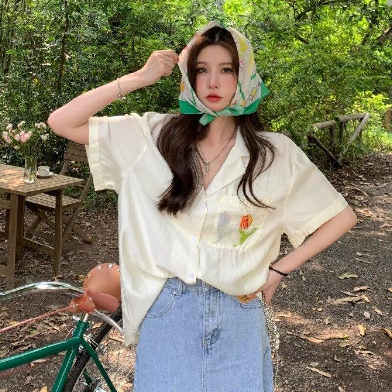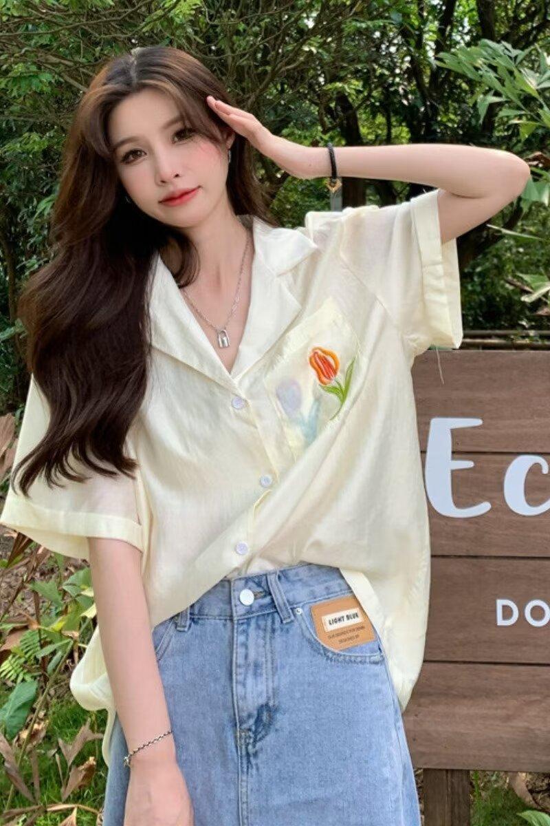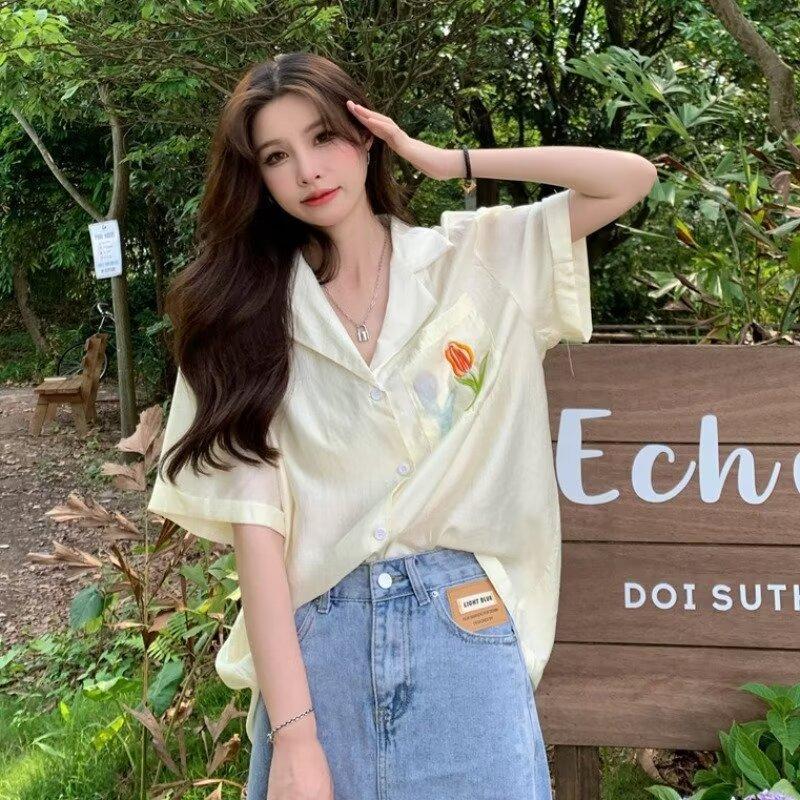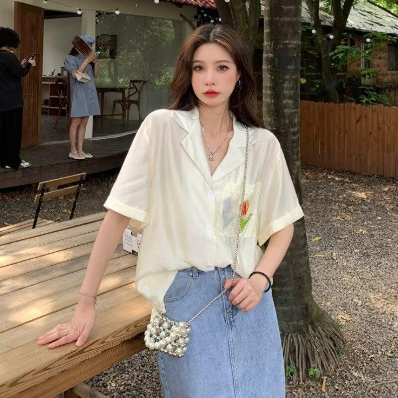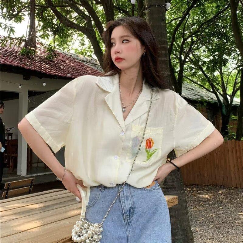 Ropa de verano para mujer con forro vintage 2024, estilo Hong Kong, diseño holgado y de nicho, nueva e interesante prenda exterior.