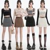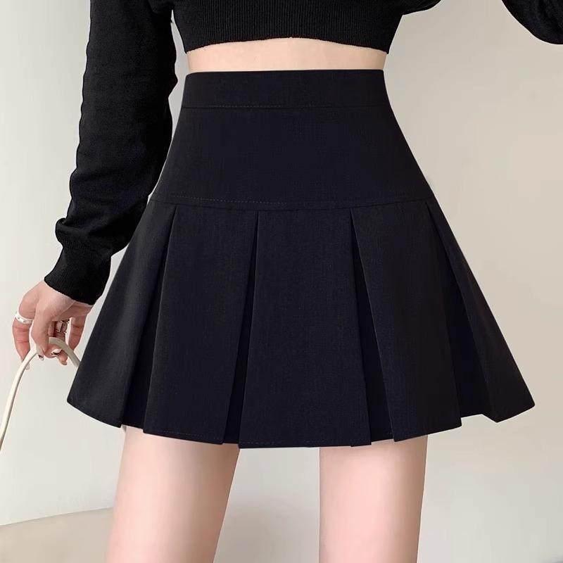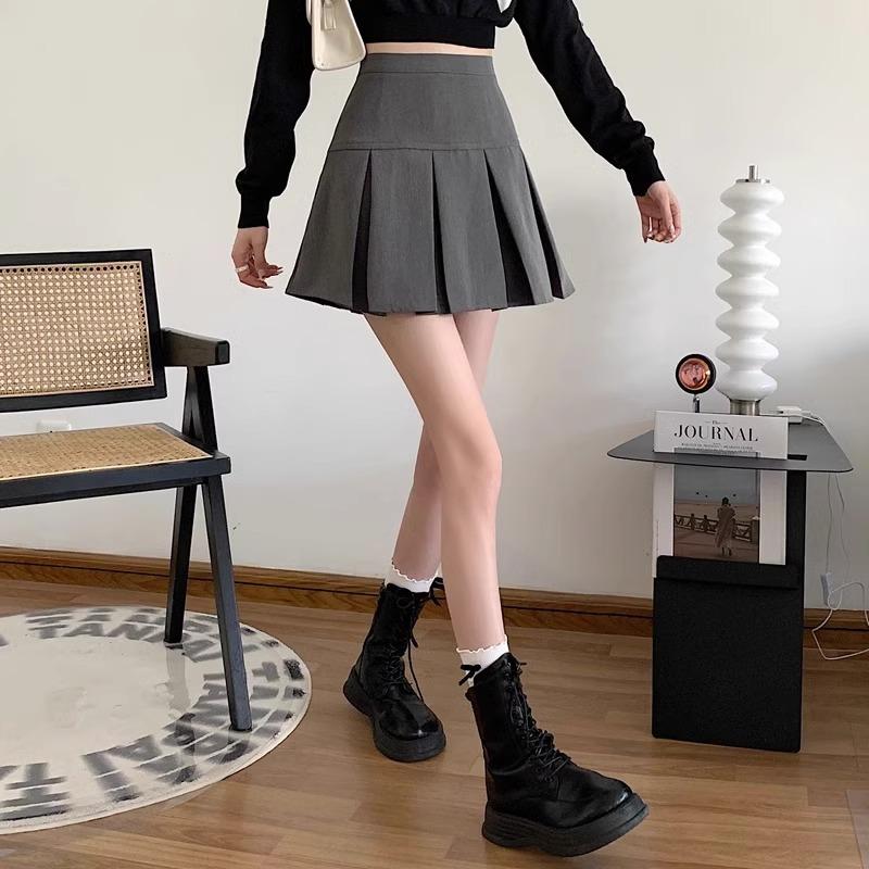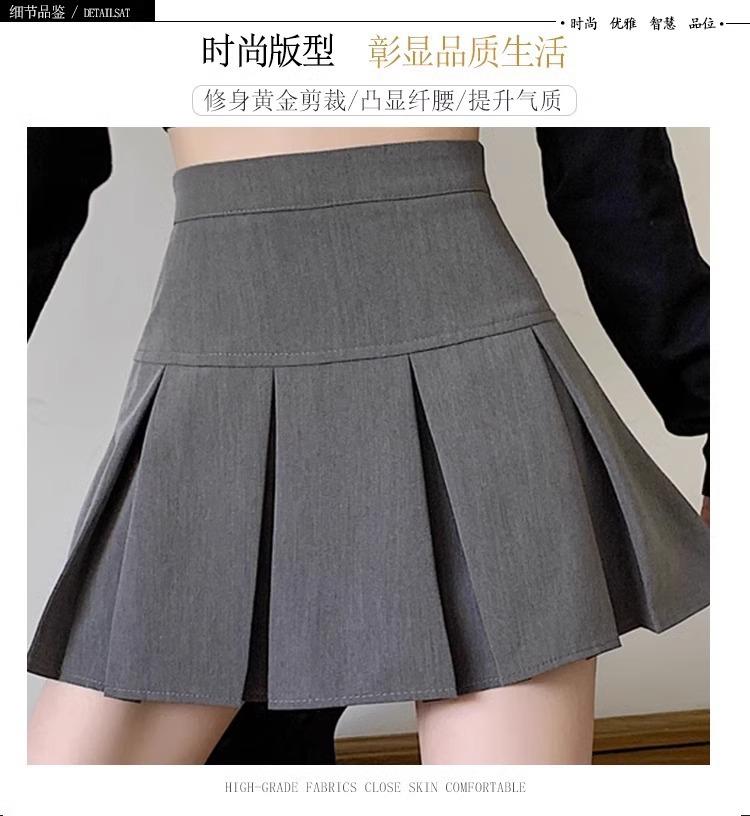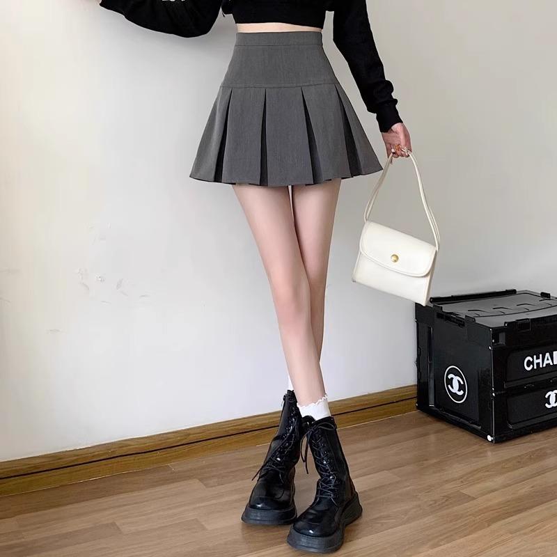 Nueva Falda Plisada Gris 2024 para Mujer Primavera y Otoño Falda Línea A Antiexposición Look Adelgazante Cintura Alta Falda Paraguas Abullonada