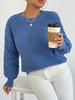 Suéter de Mujer de Comercio Exterior Transfronterizo Otoño e Invierno Color Sólido Suelto Amor Jacquard Camisa de Punto Jersey Cuello Redondo Manga Trompeta Top