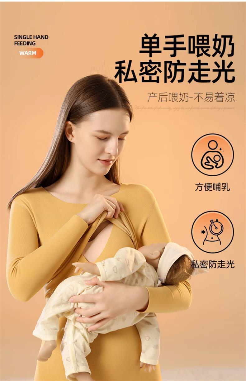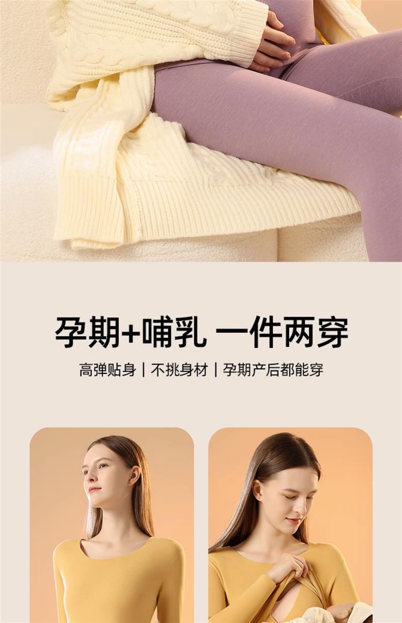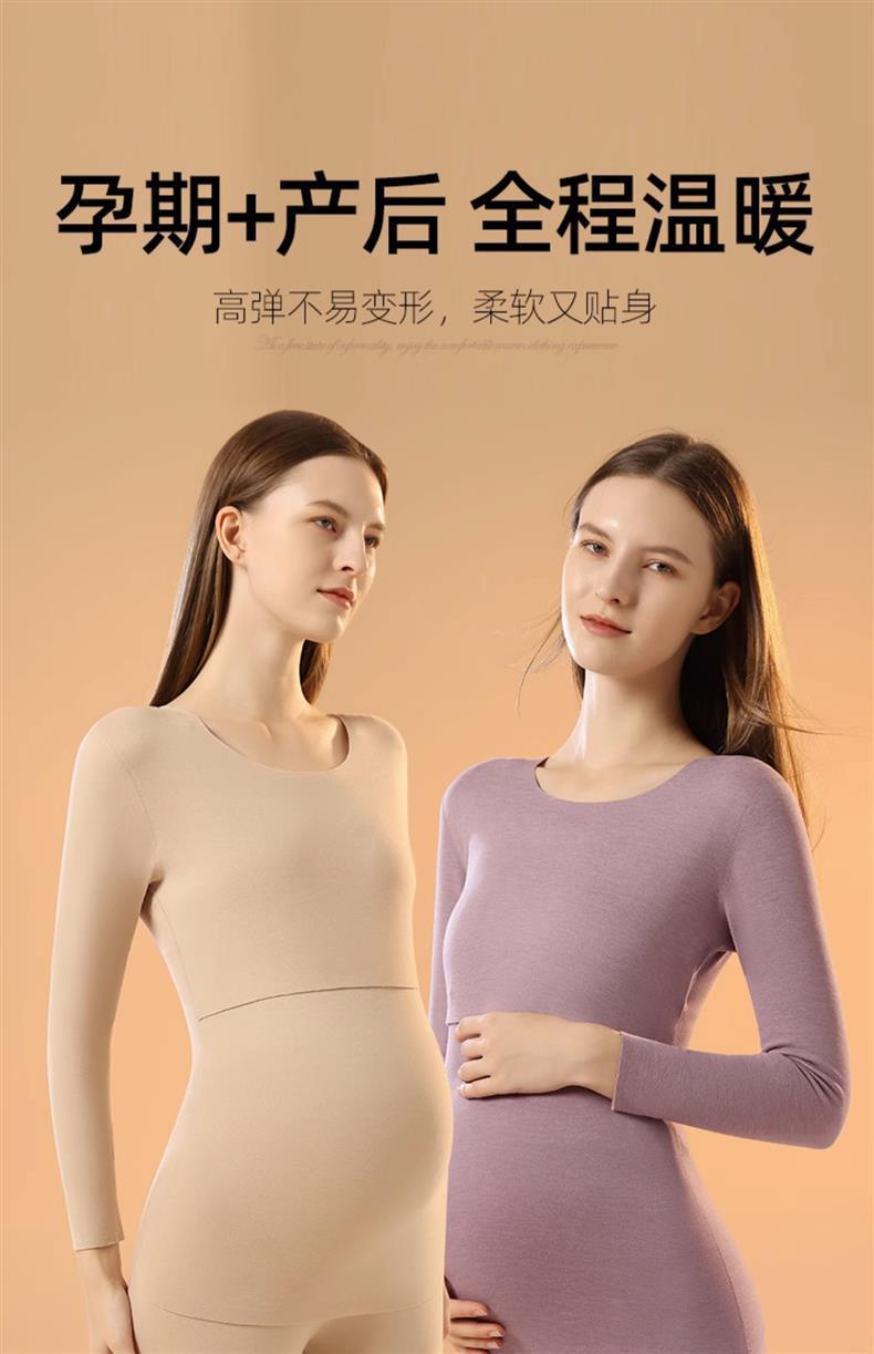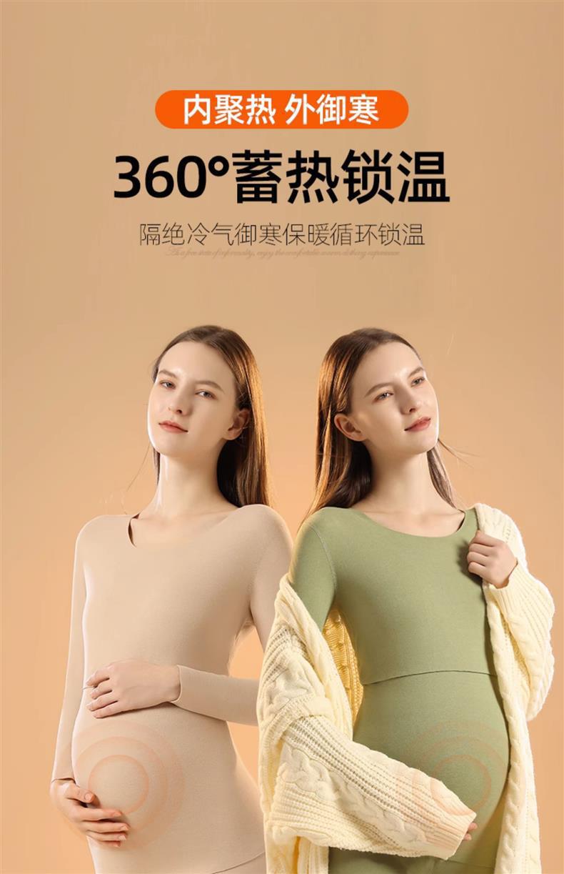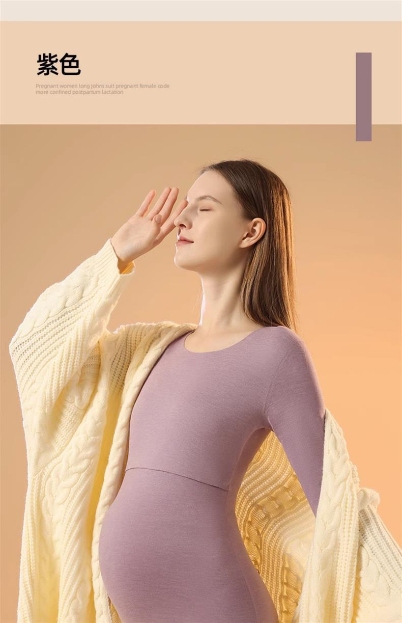 Actividades Ropa de Otoño para Mujeres Embarazadas y Traje de Pantalón Pijama de Lactancia para Otoño e Invierno para Mujeres Periodo de Embarazo Ropa Interior Térmica de Plumón de Seda Delong