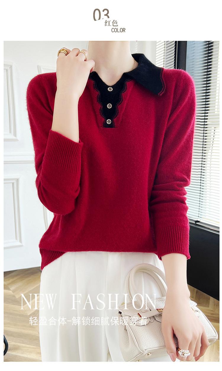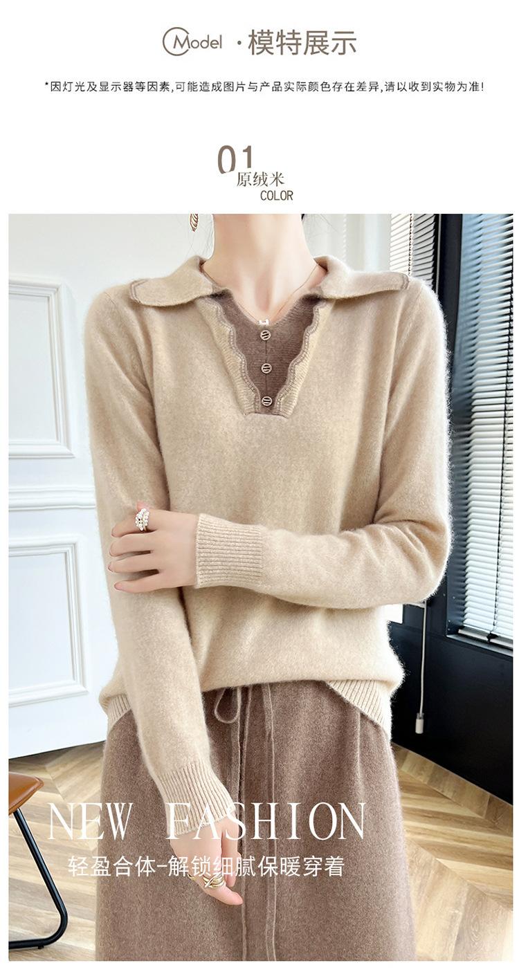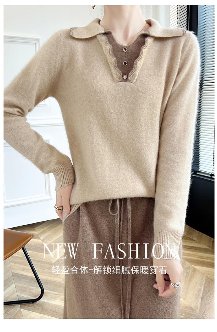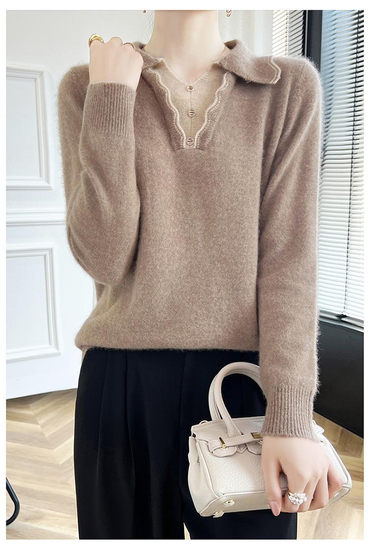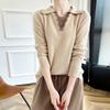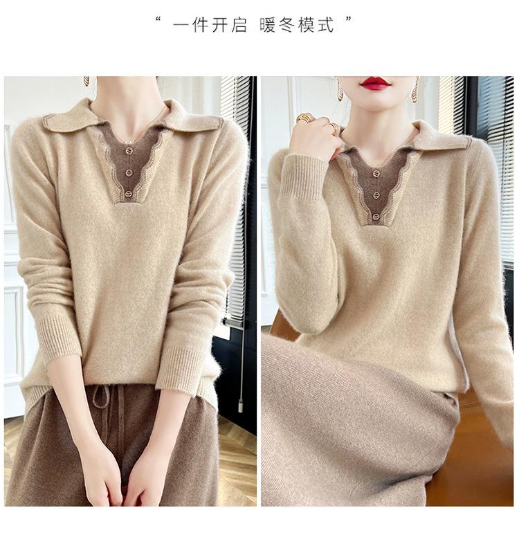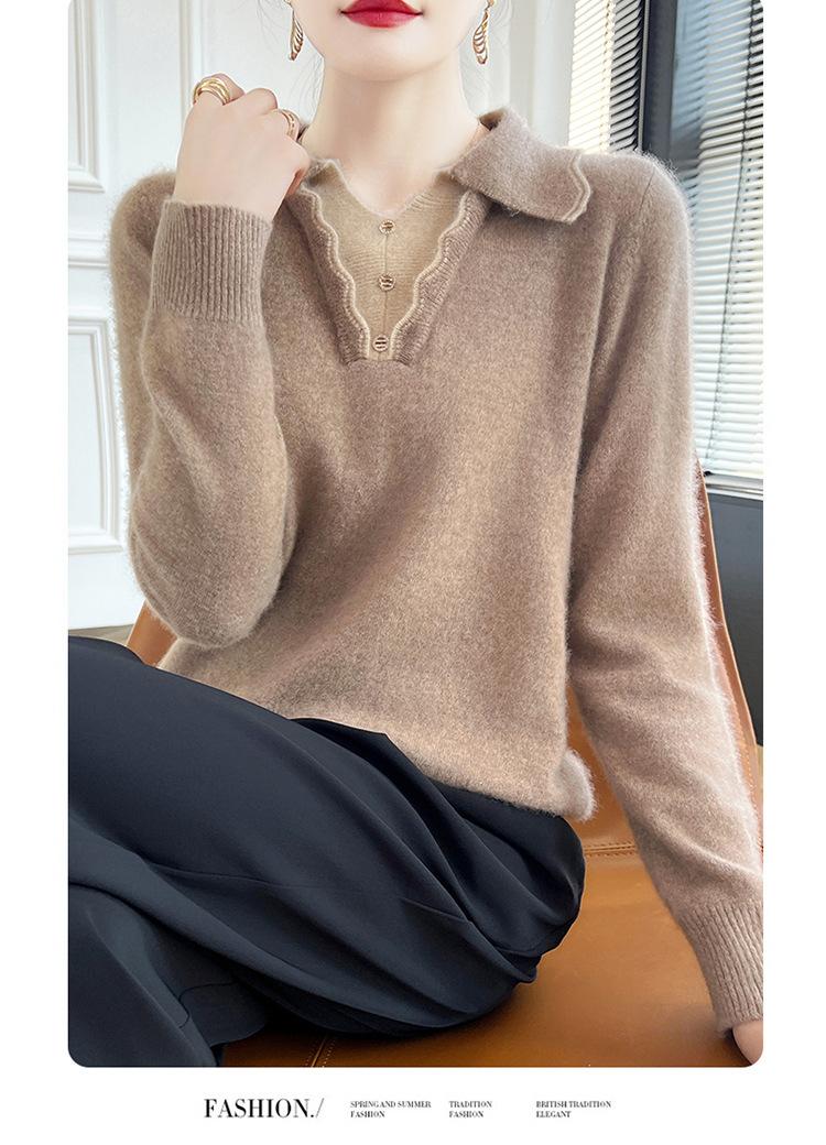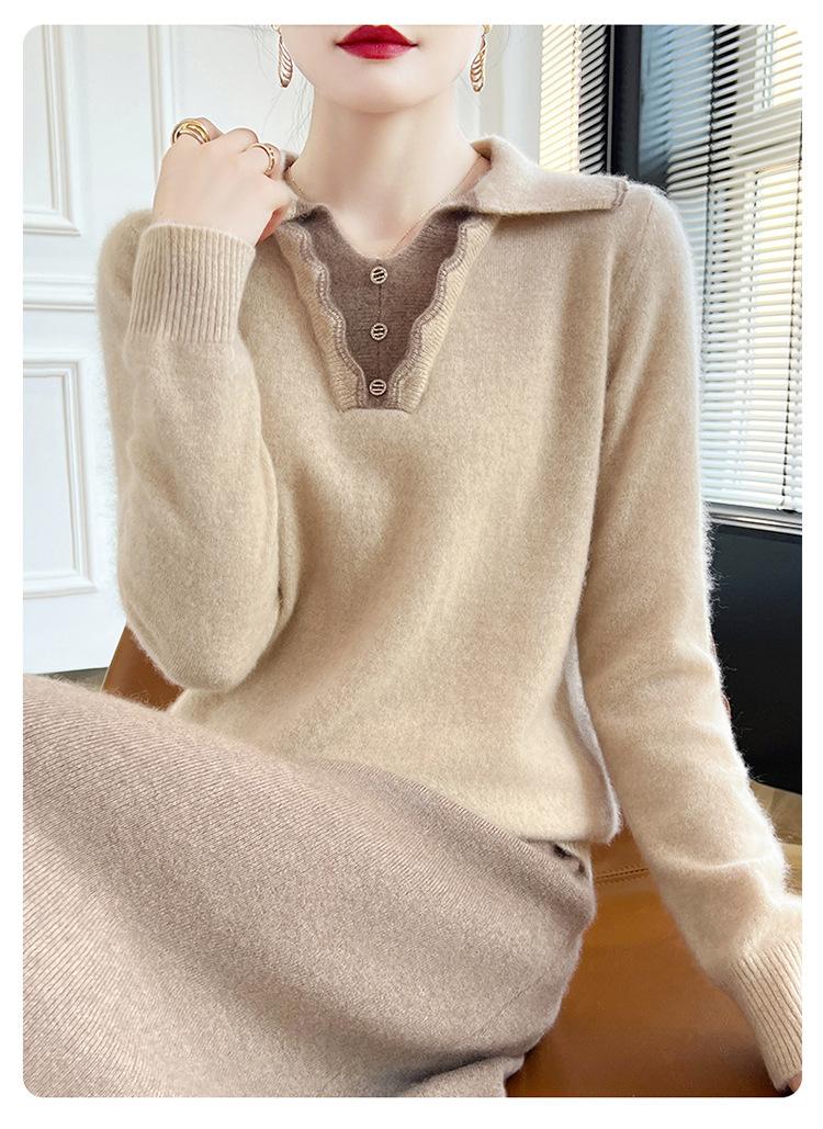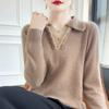 Suéter de lana dulce para mujer, nuevo, con solapa y manga larga a juego, suelto y ajustado, con base de cachemira.