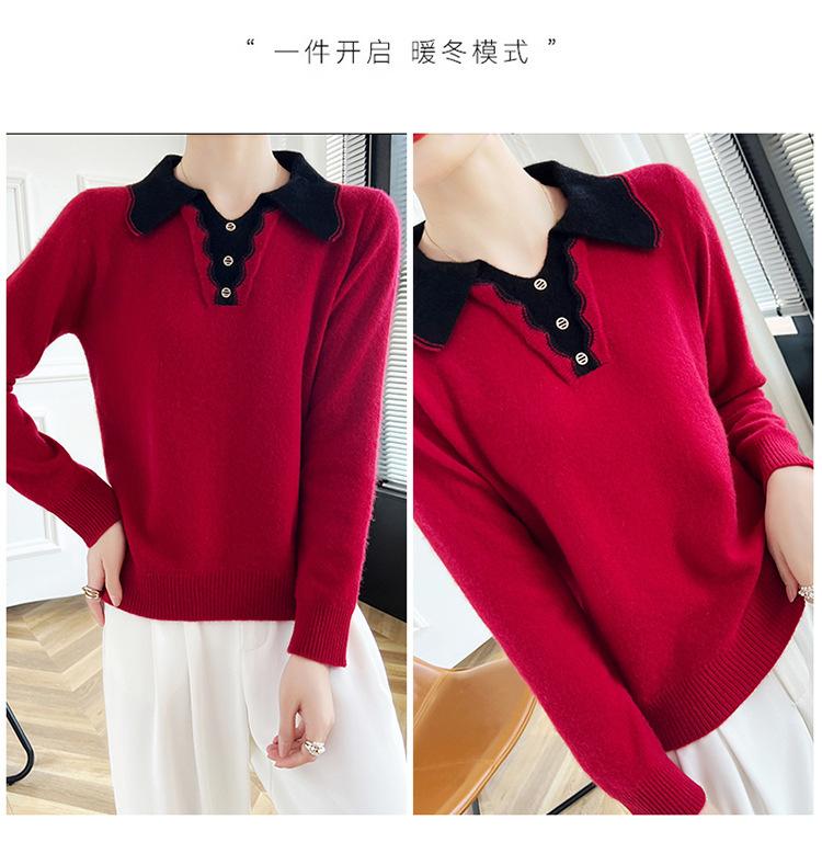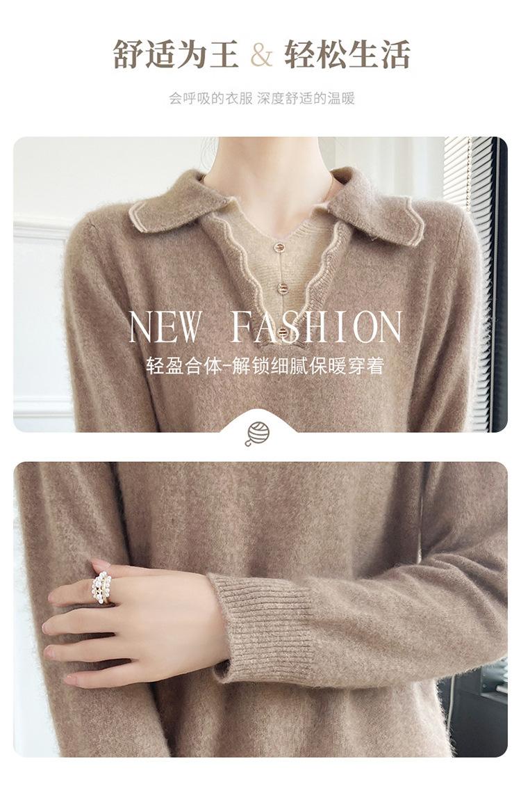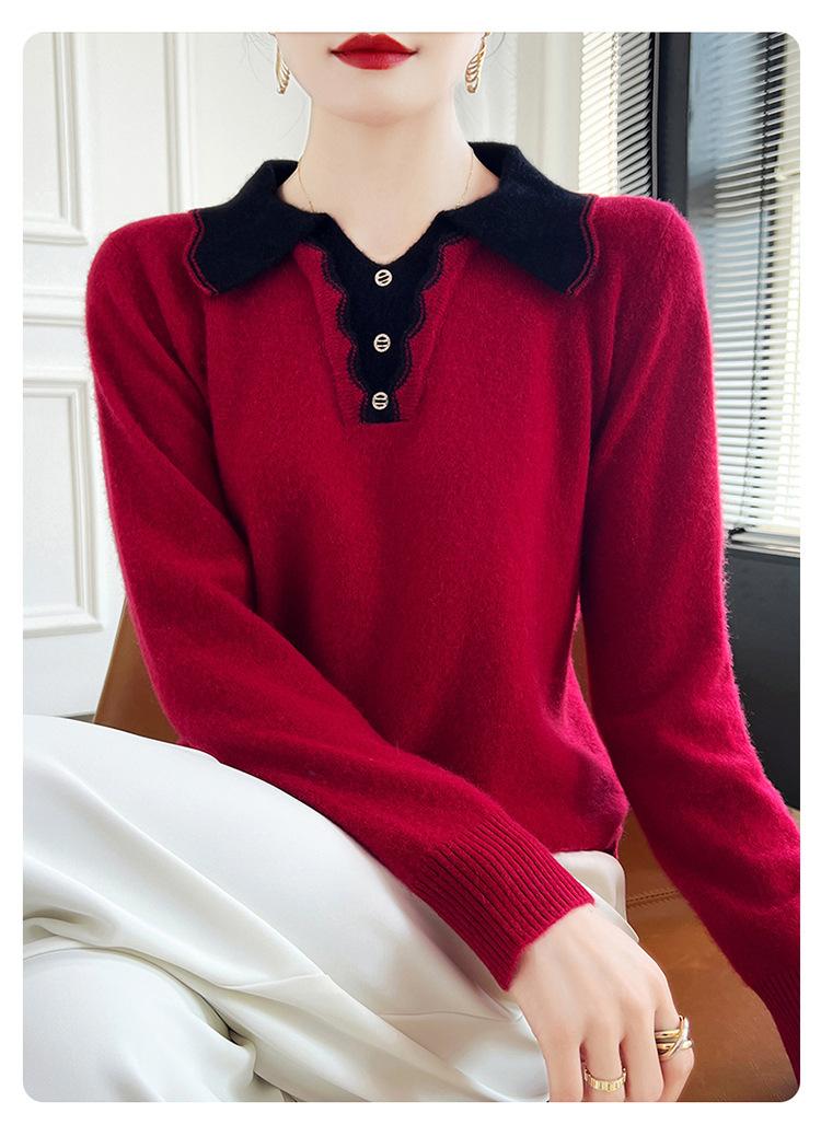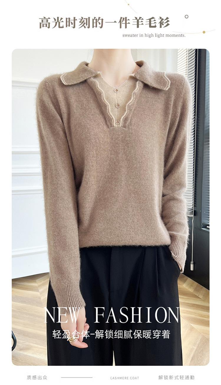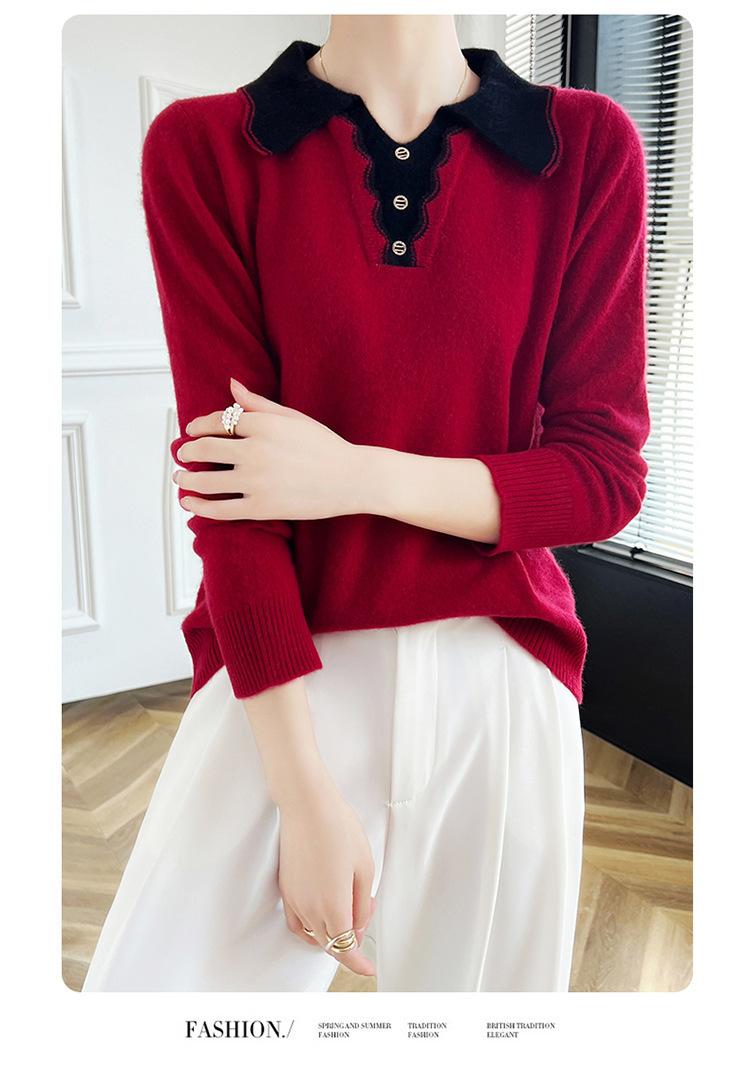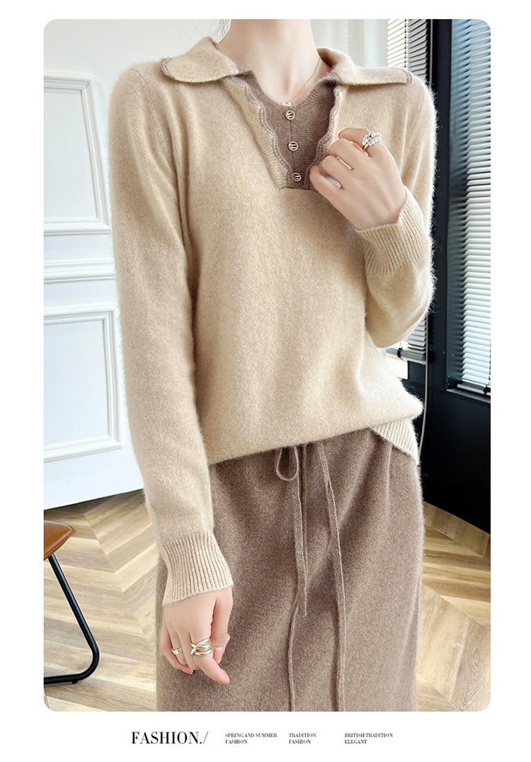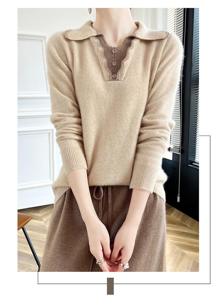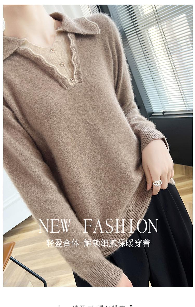Suéter de lana dulce para mujer, nuevo, con solapa y manga larga a juego, suelto y ajustado, con base de cachemira.