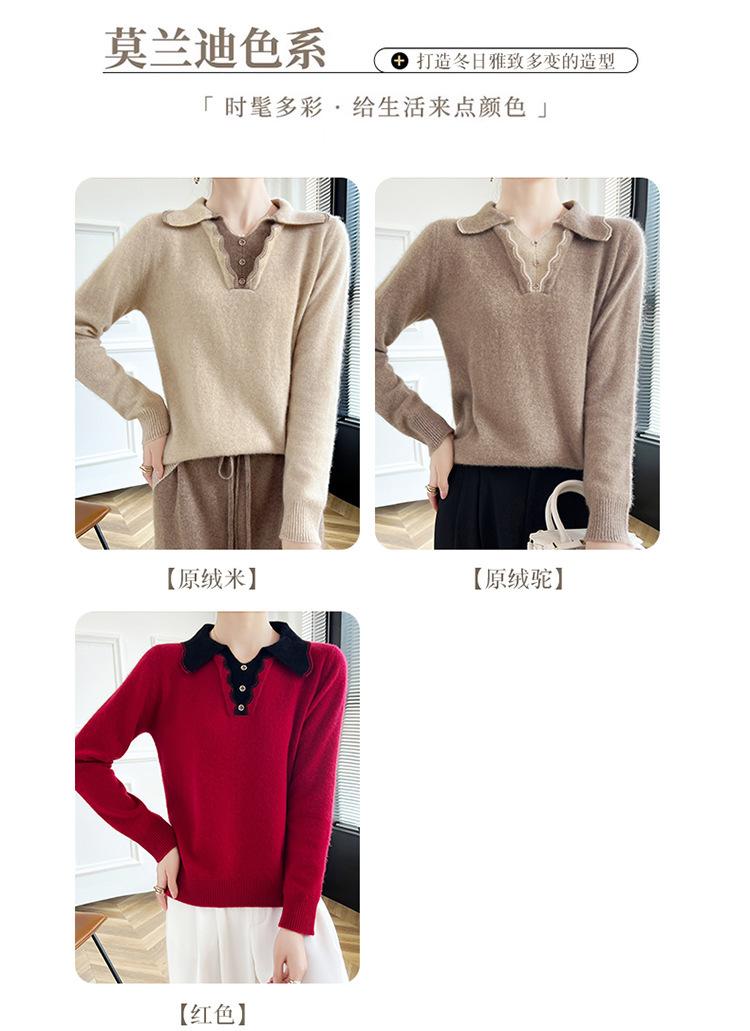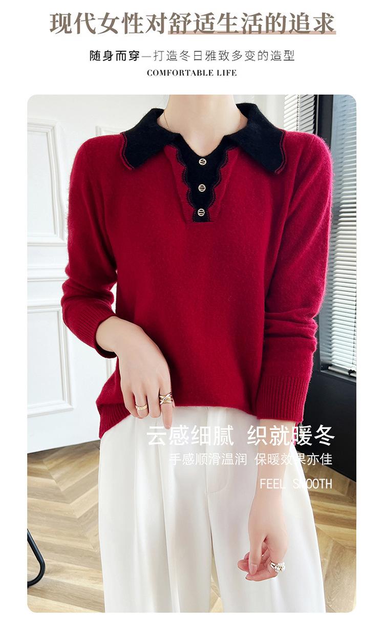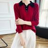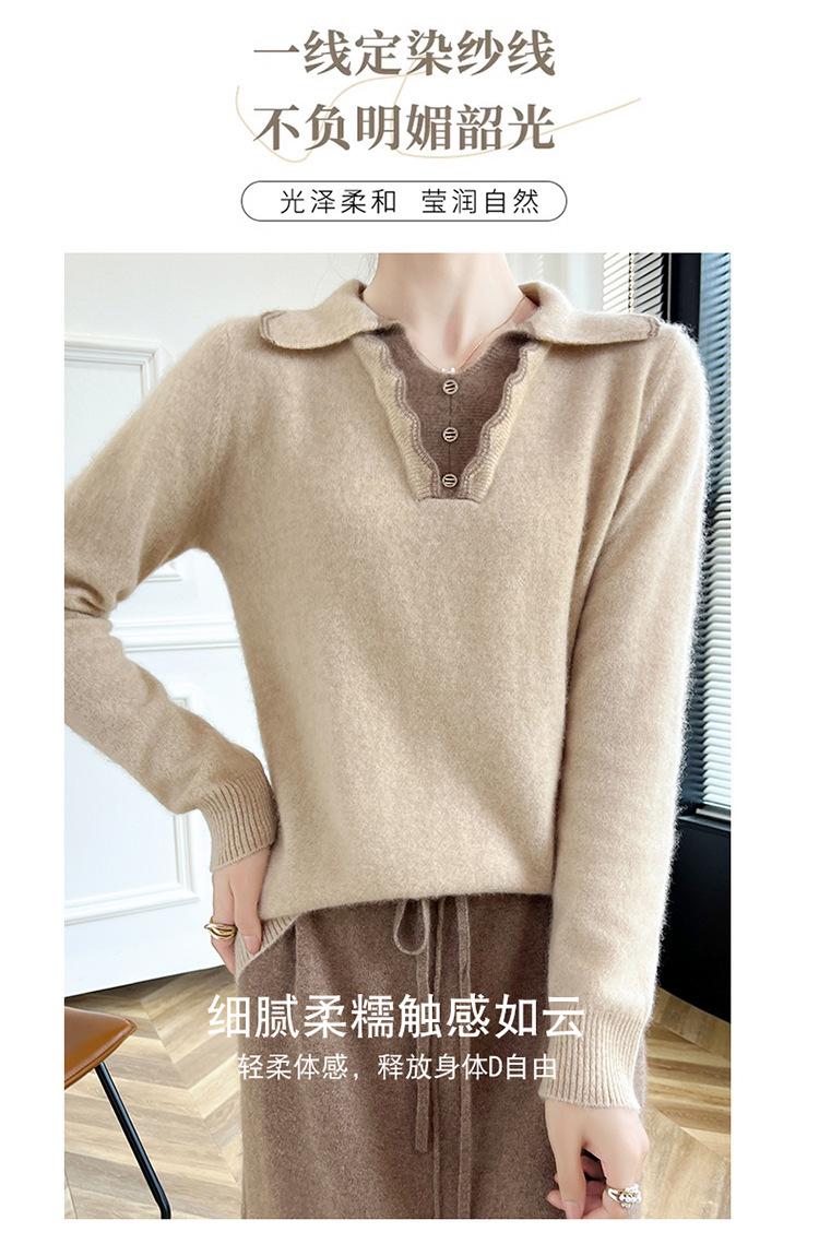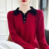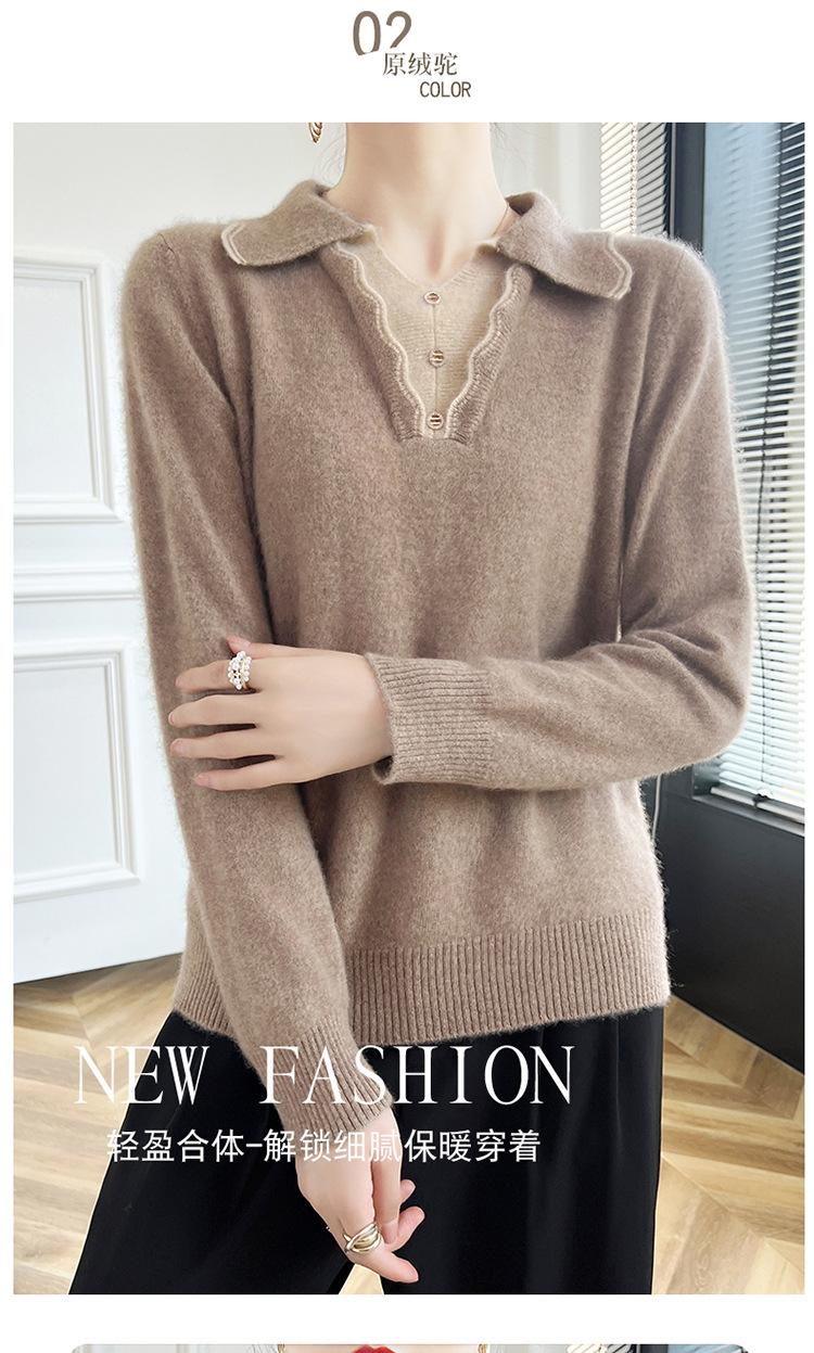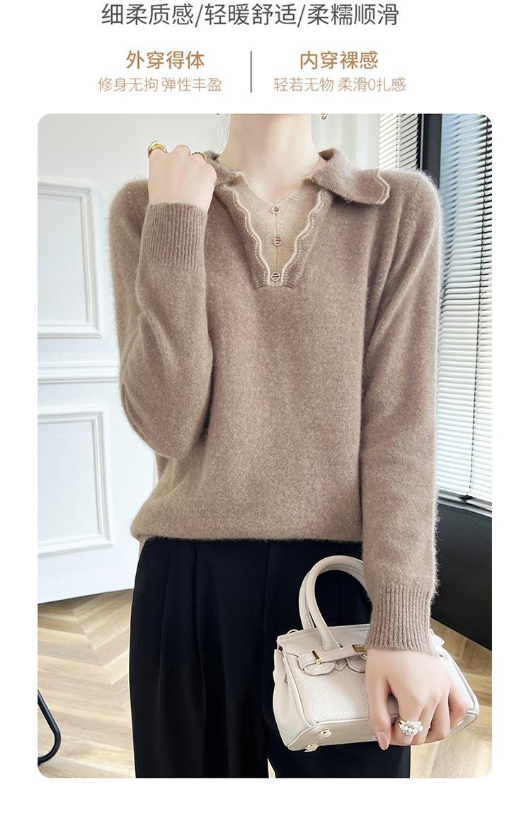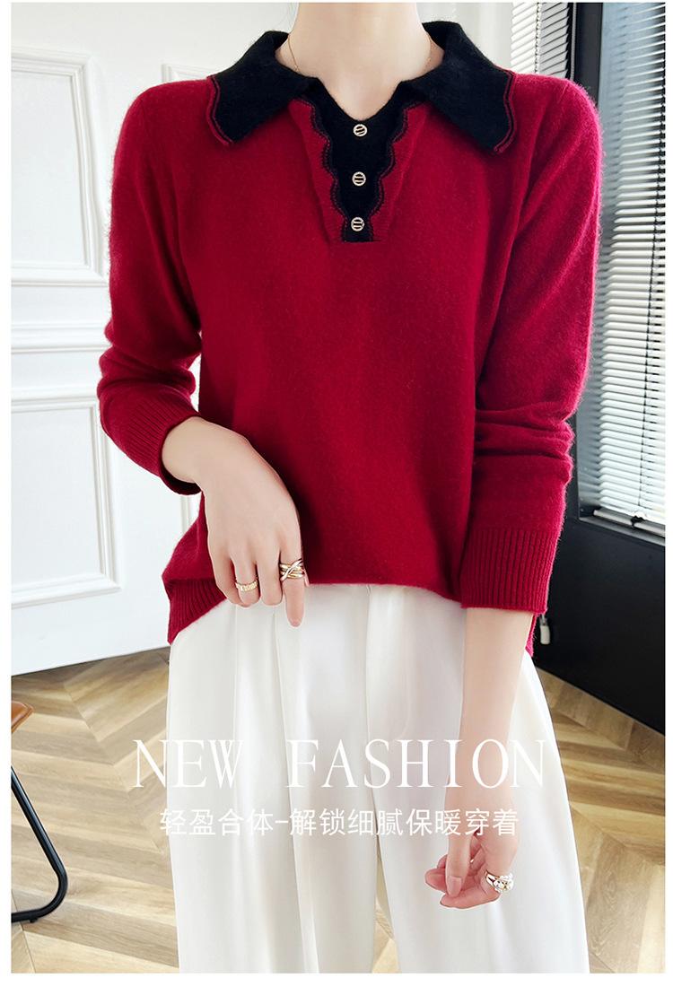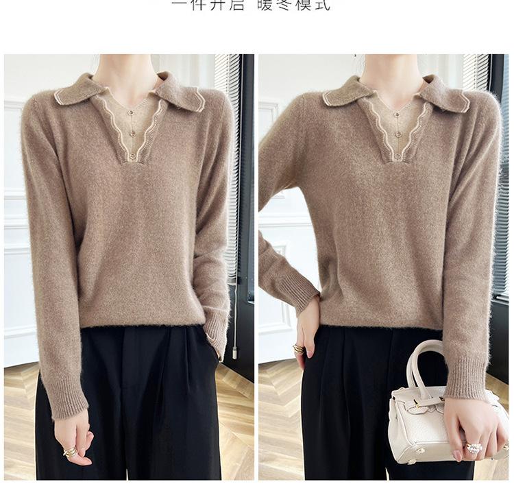 Suéter de lana dulce para mujer, nuevo, con solapa y manga larga a juego, suelto y ajustado, con base de cachemira.
