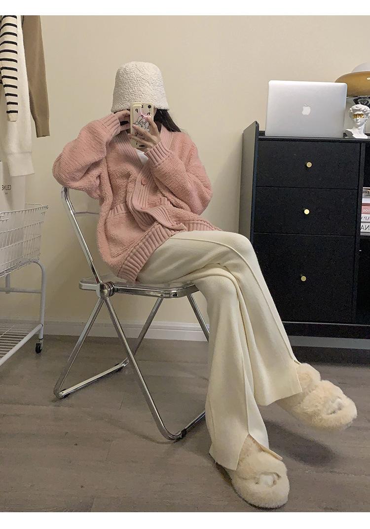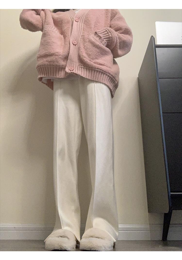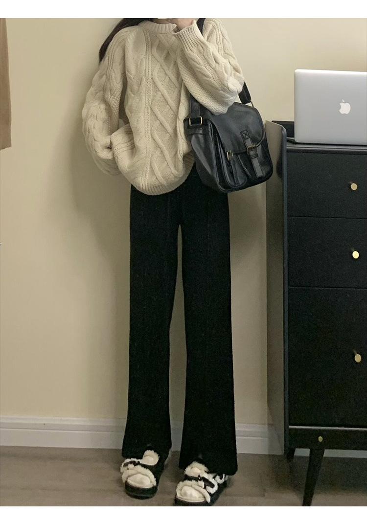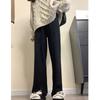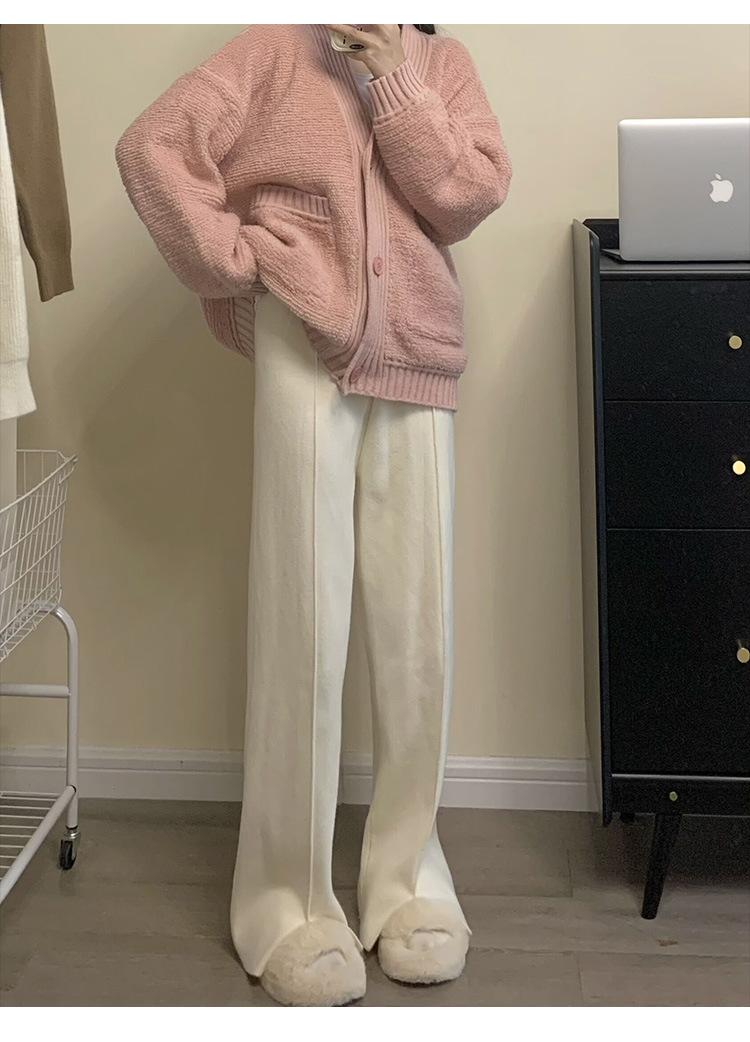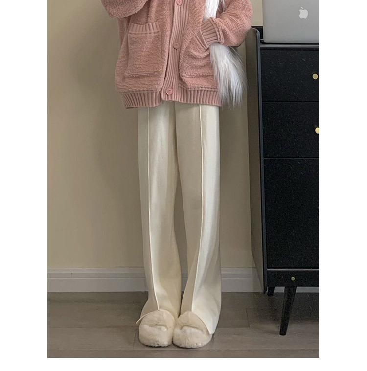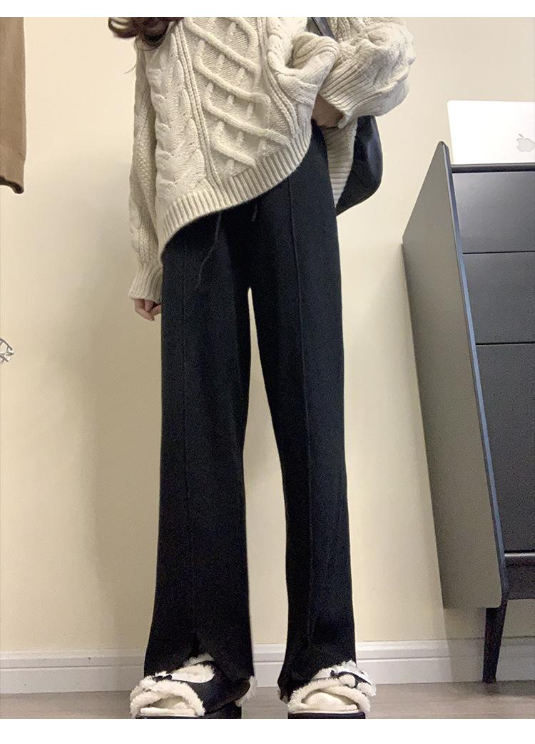 Pantalones anchos de punto con abertura frontal para mujer, otoño e invierno 2024, estilo coreano, pantalones largos rectos de lana con cintura alta y adelgazamiento.