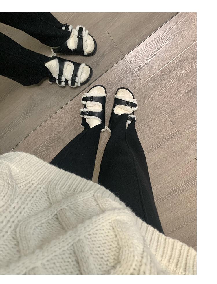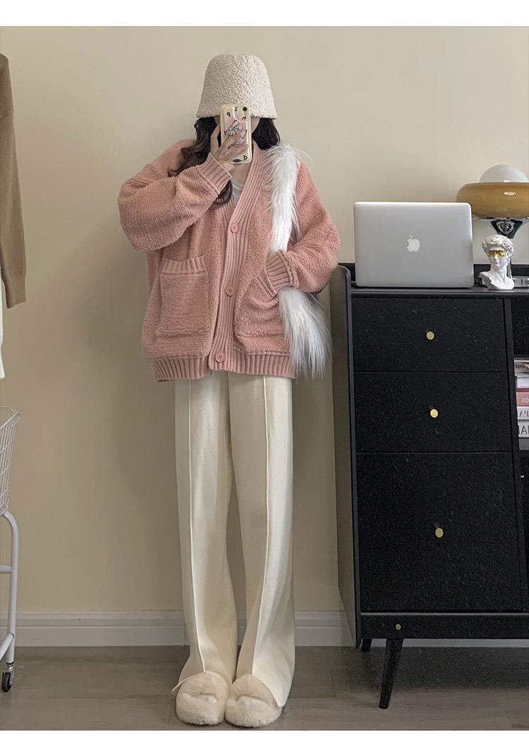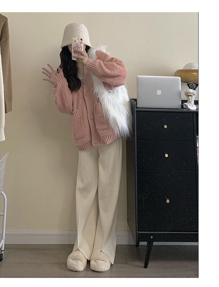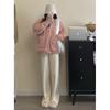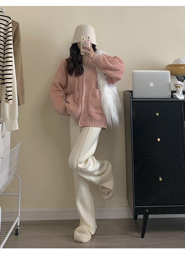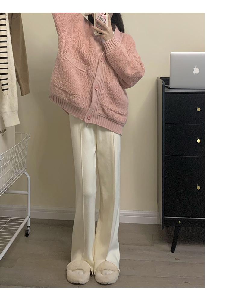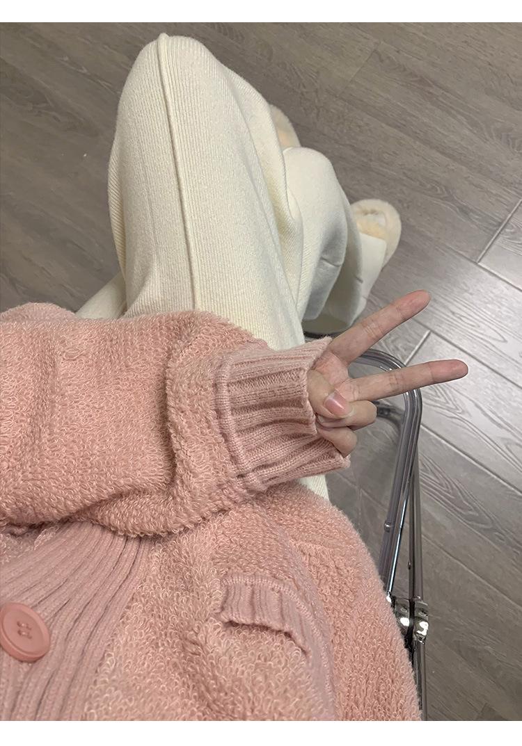 Pantalones anchos de punto con abertura frontal para mujer, otoño e invierno 2024, estilo coreano, pantalones largos rectos de lana con cintura alta y adelgazamiento.