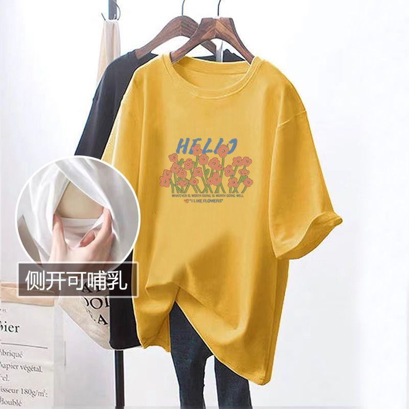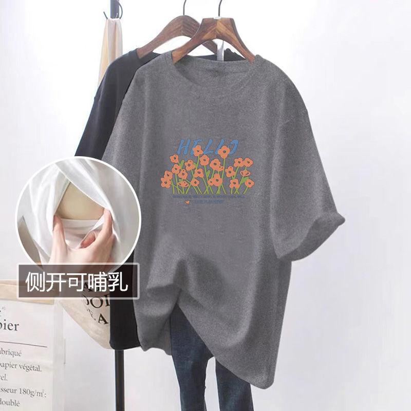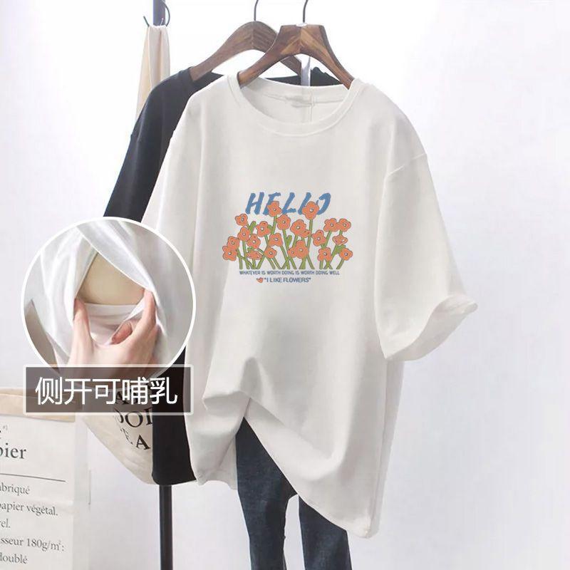 Ropa de lactancia de verano, camiseta de manga corta con abertura lateral, ropa de lactancia de moda, camiseta de talla grande para mujer.