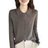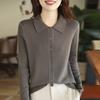 Cárdigan de Punto de Lana Fina con Solapa Nuevo para Primavera y Otoño de 2025 de Manga Larga para Mujer de Color Sólido Suelto y Más Fácil de Combinar Top de Temperamento