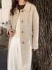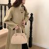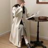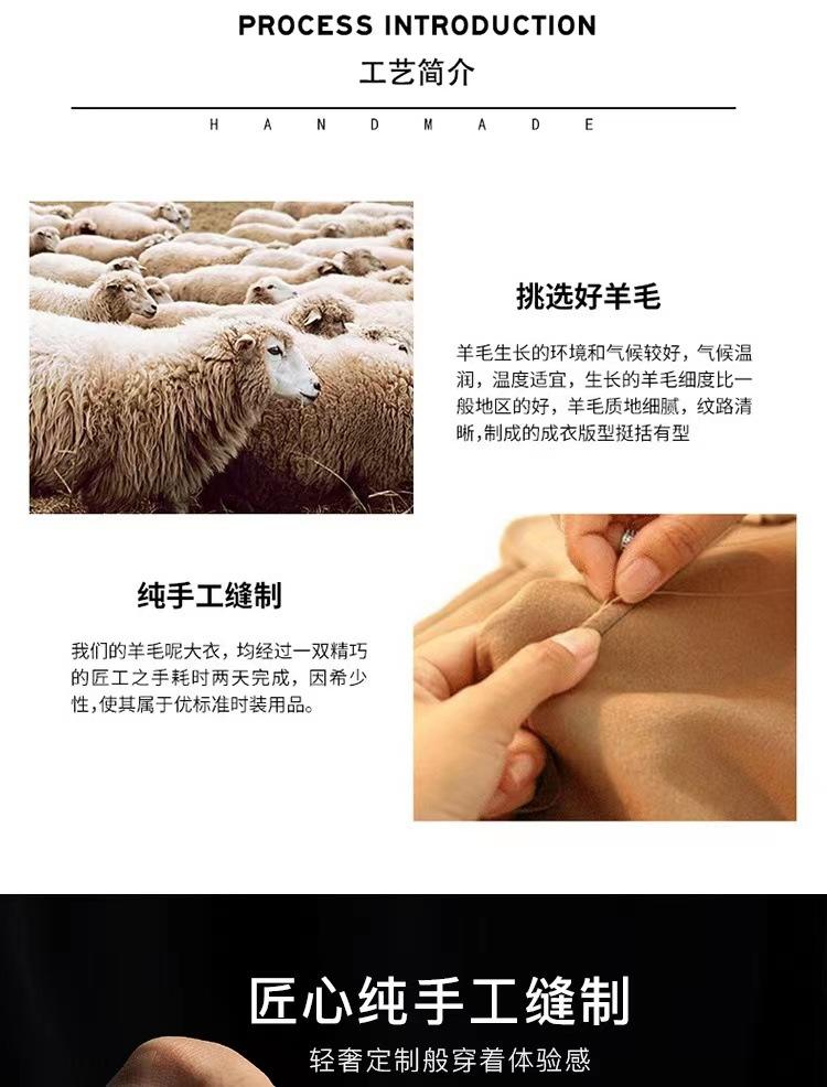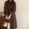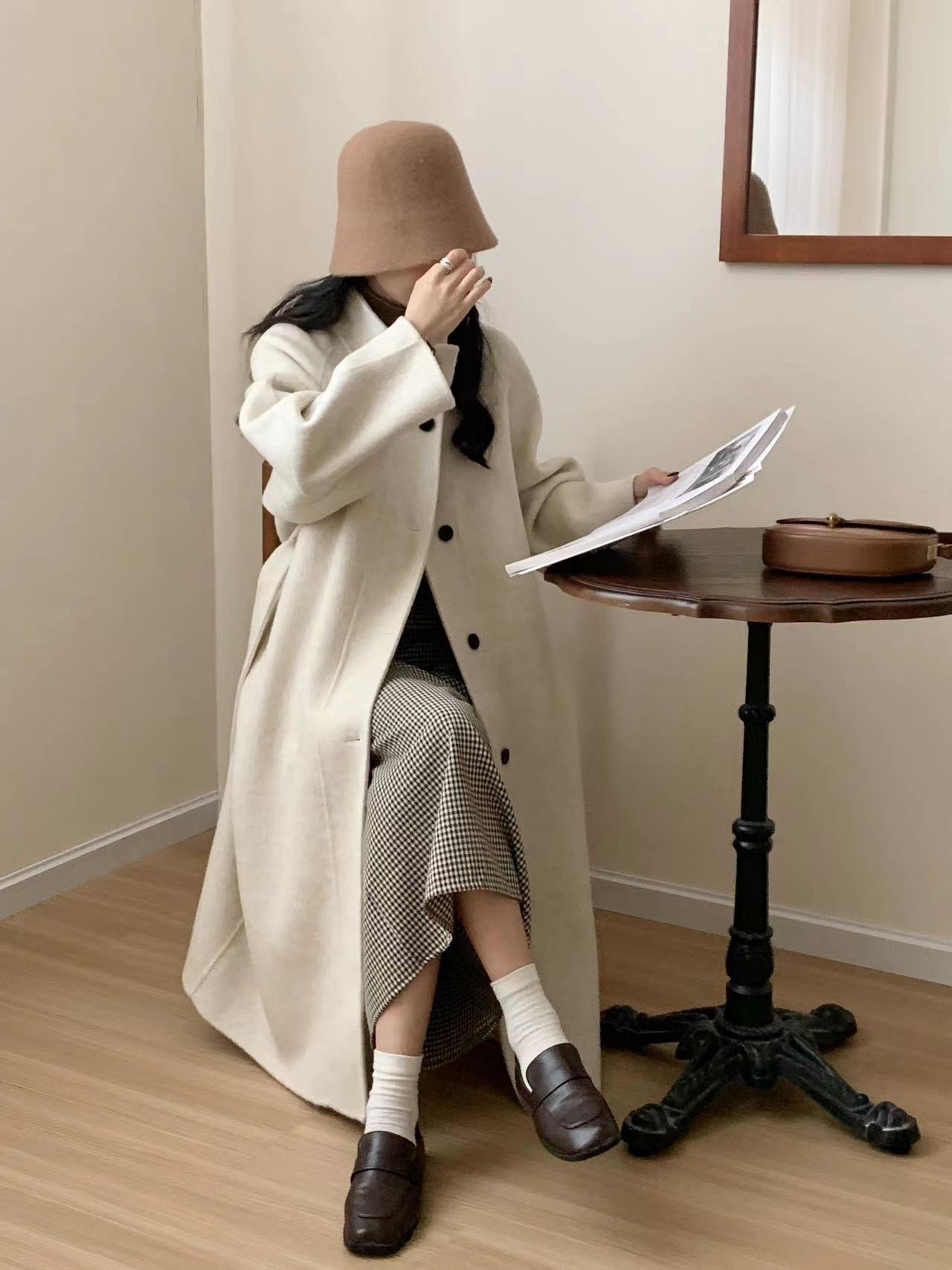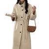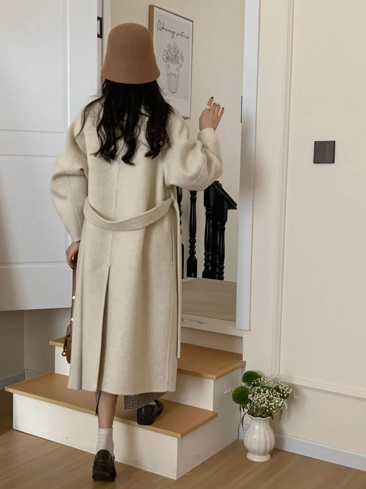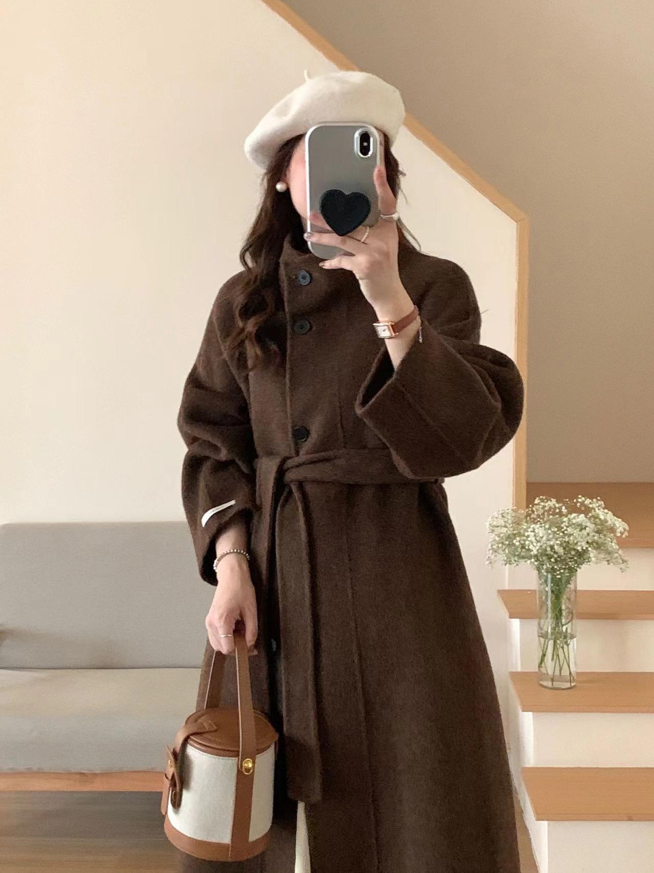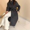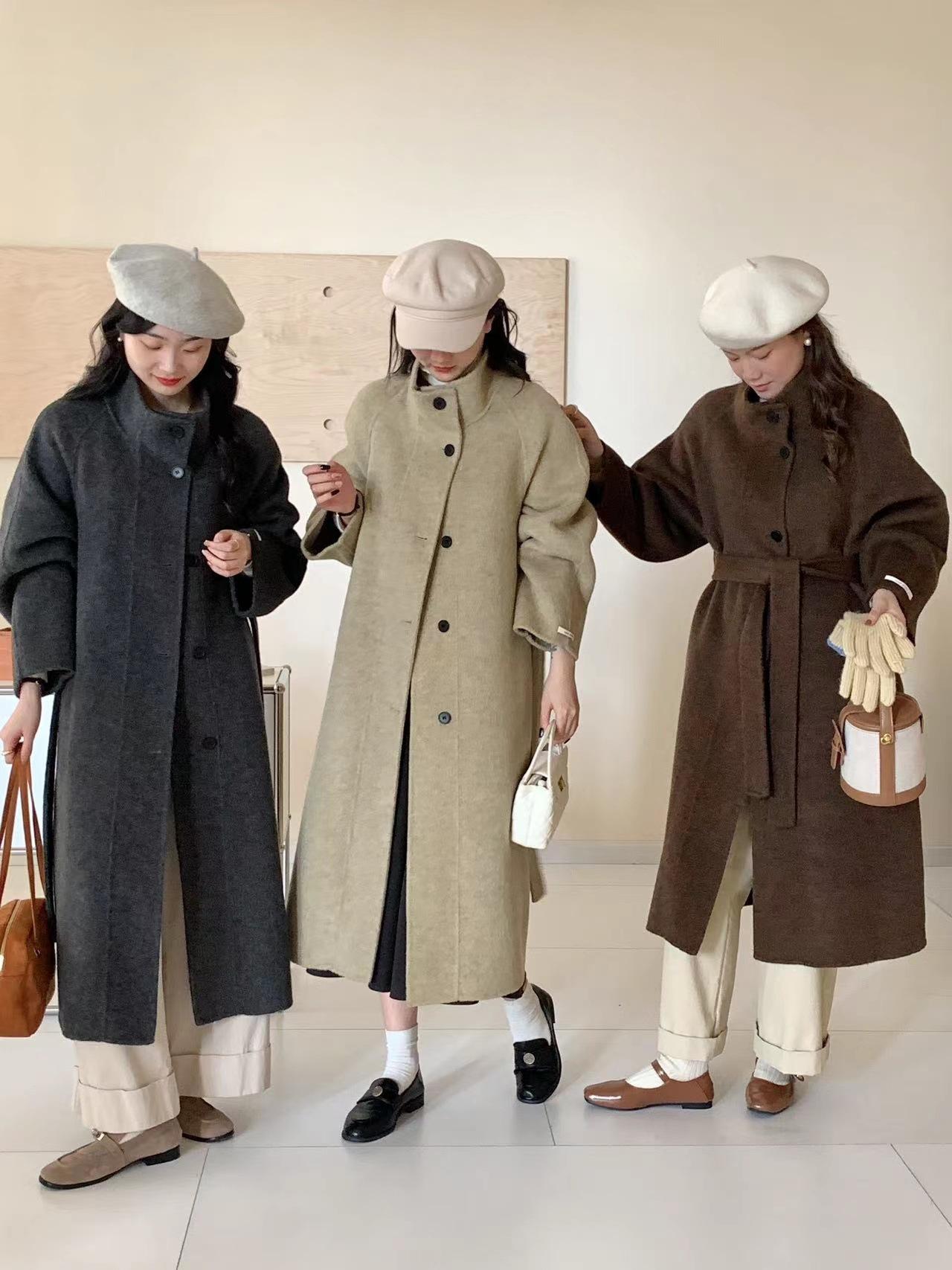 Han You Abrigo de Lana de Doble Vista con Cuello Mao, Abotonadura Sencilla y Cordones, Holgado, Coreano, de Lana, Otoño e Invierno, Nuevo Estilo