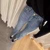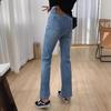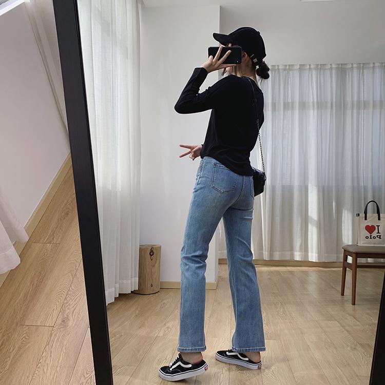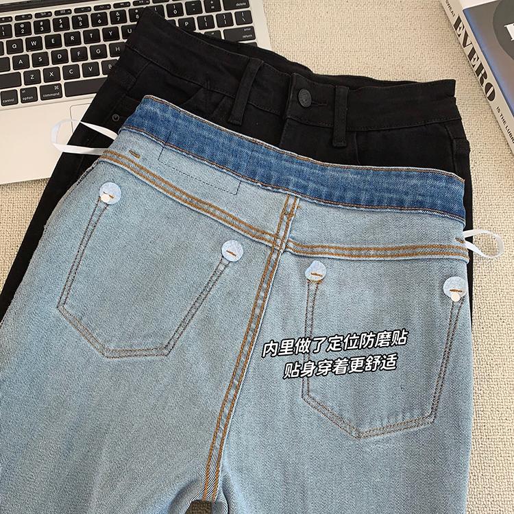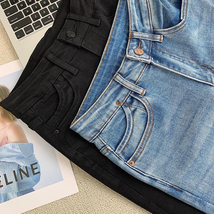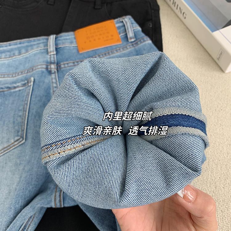 Los glúteos de melocotón se muestran completamente, y el tejido denim elástico es altamente elástico y tiene buena resiliencia.