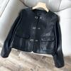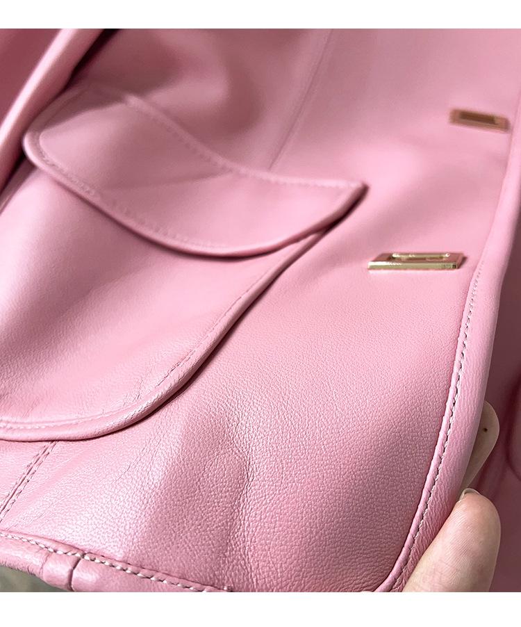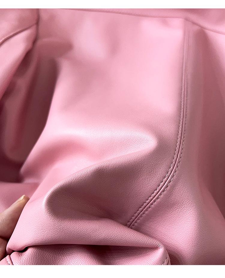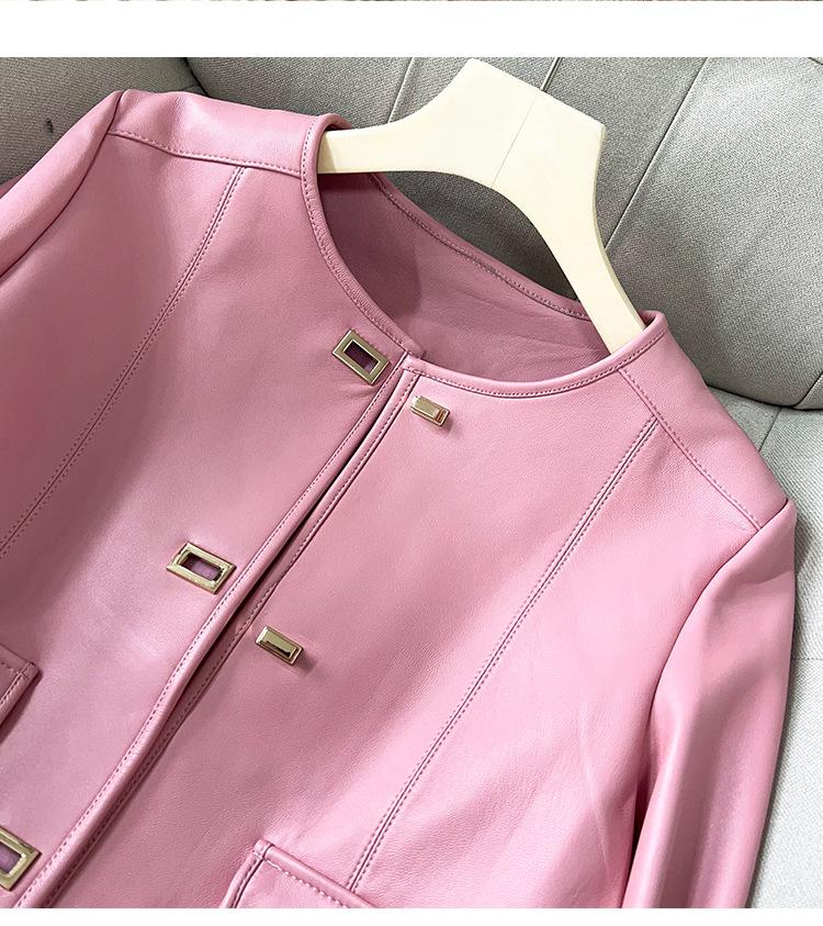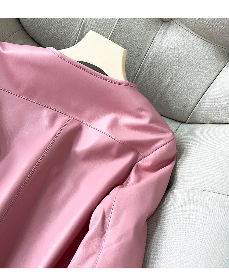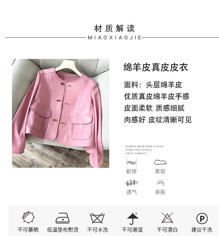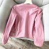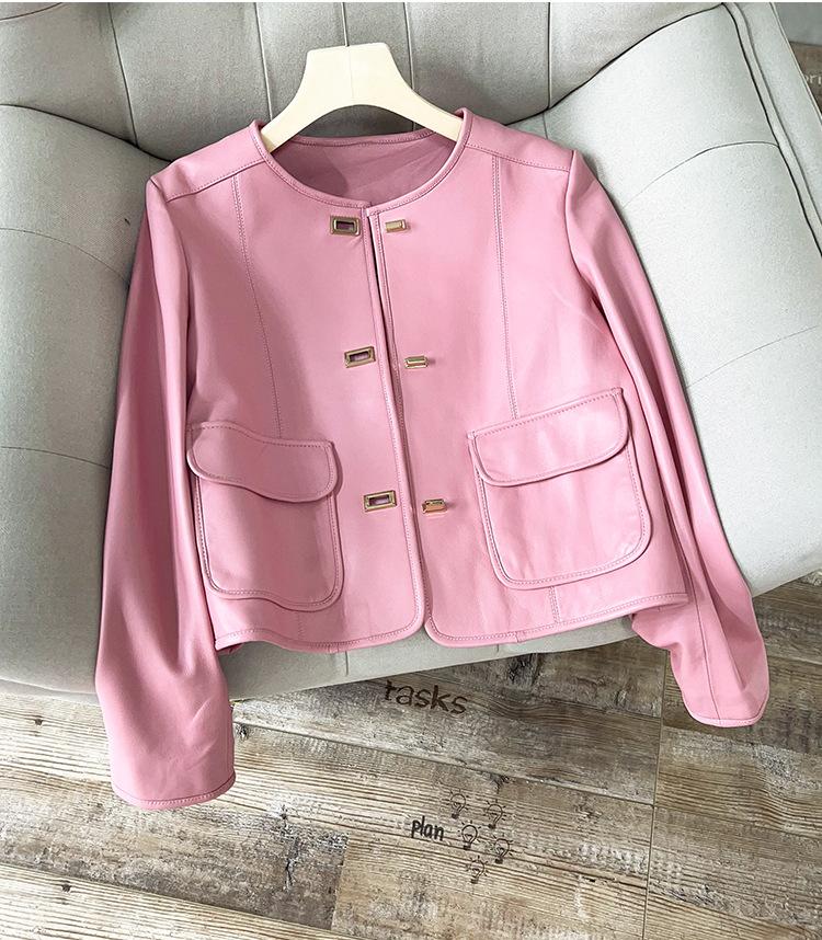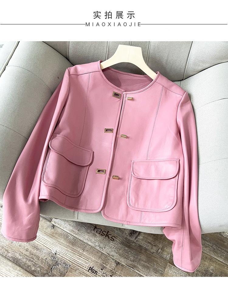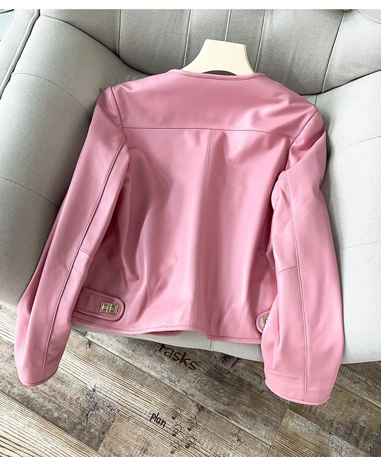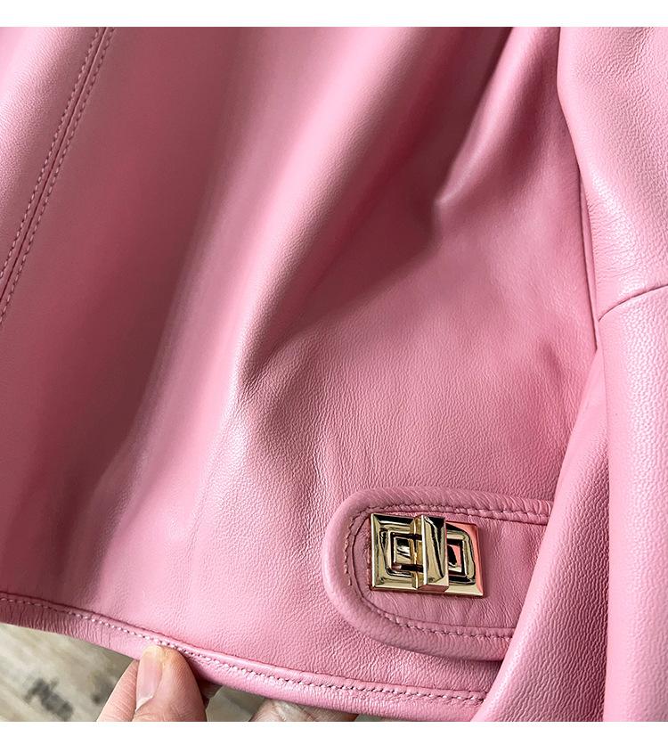 Chaqueta de piel de oveja para mujer, motociclista rosa, corte ajustado, corta, chaqueta de cuero 2024 Nueva
