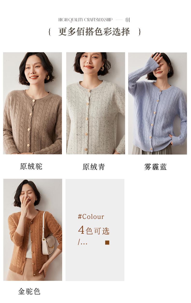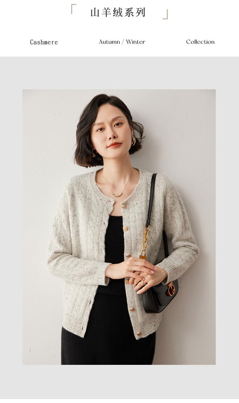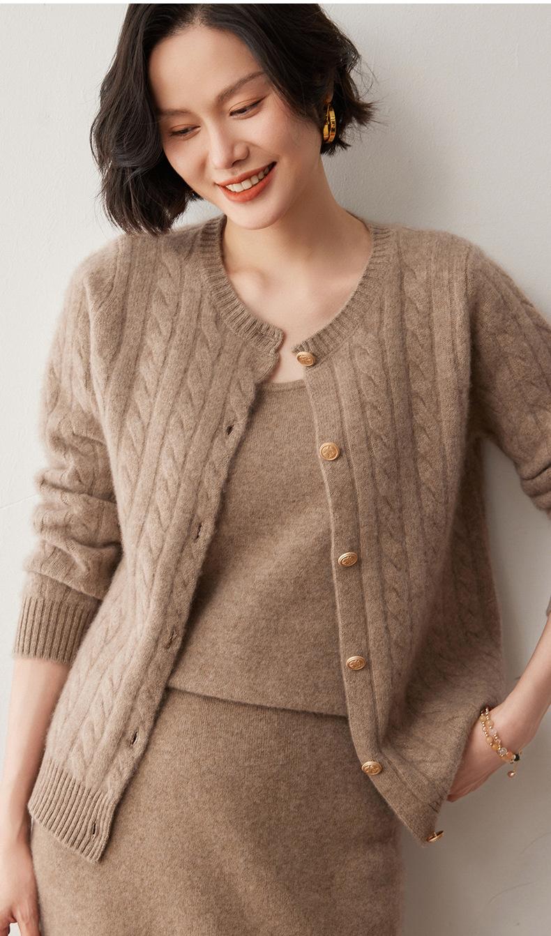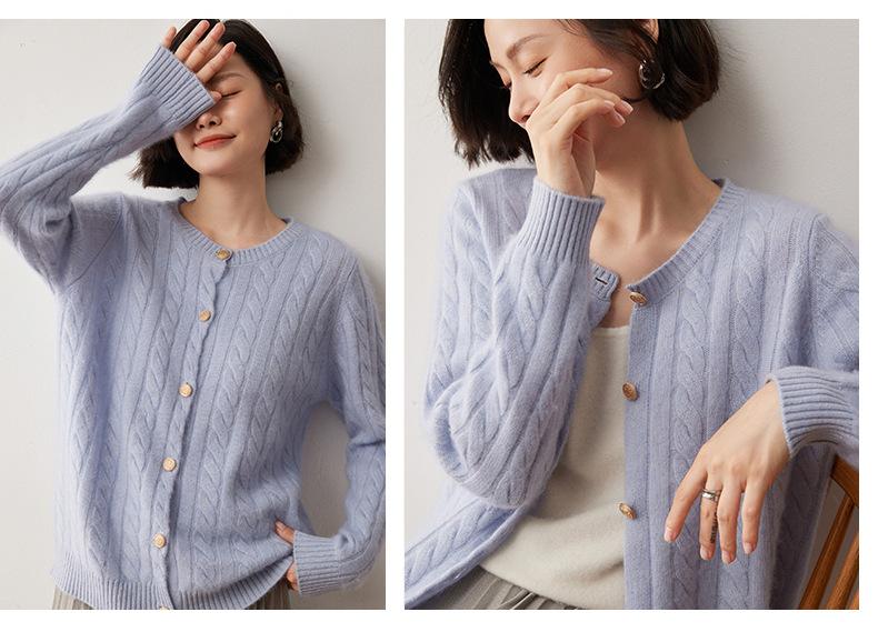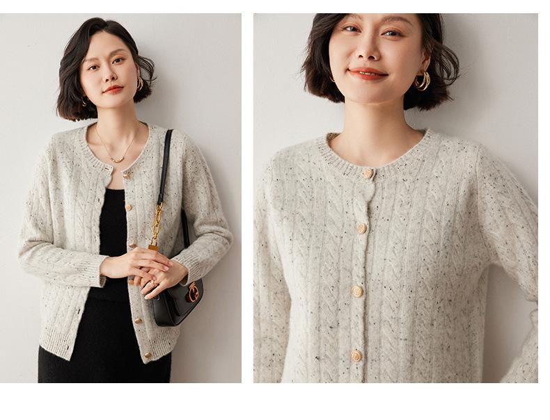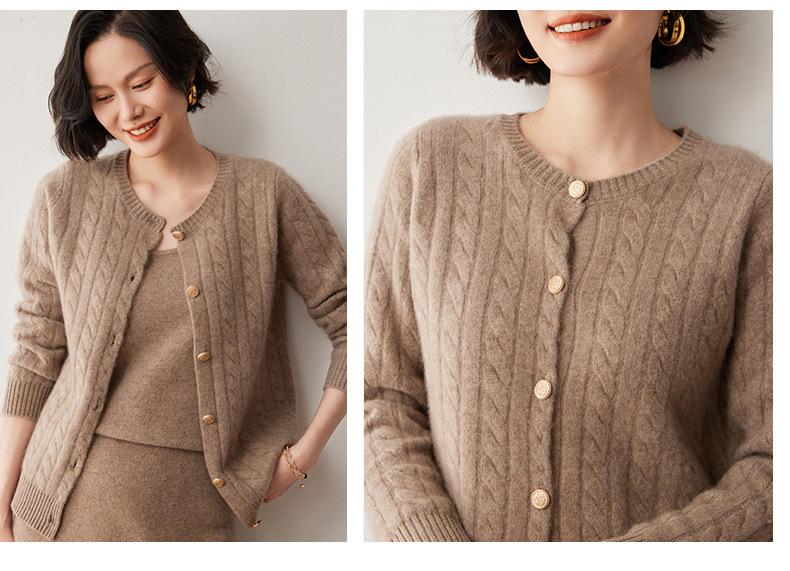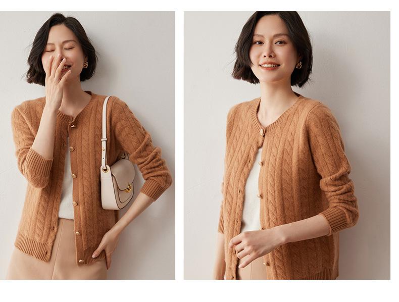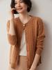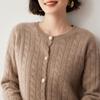 Cárdigan de lana de cachemira con cuello redondo para otoño e invierno, nuevo cárdigan de punto de manga larga que combina con todo, ropa de lana, chaqueta, ropa de mujer