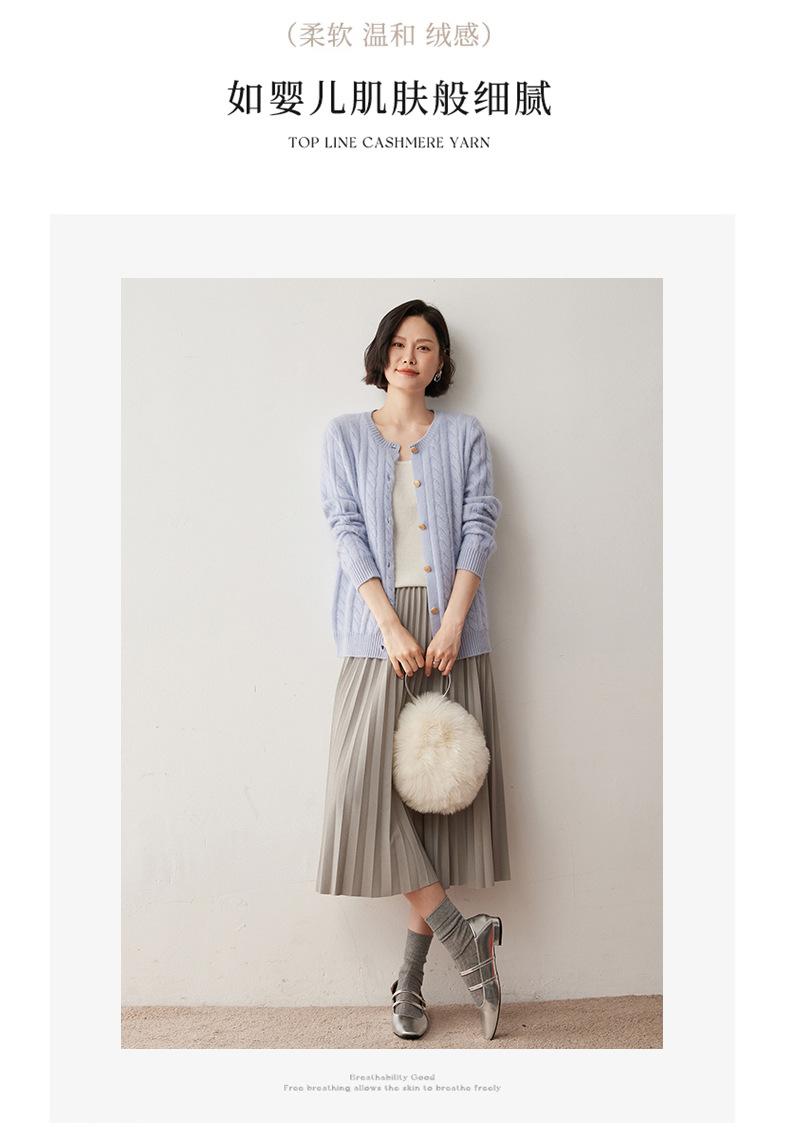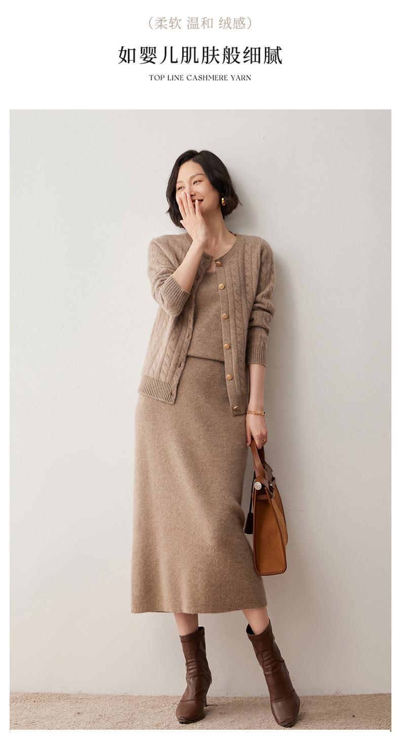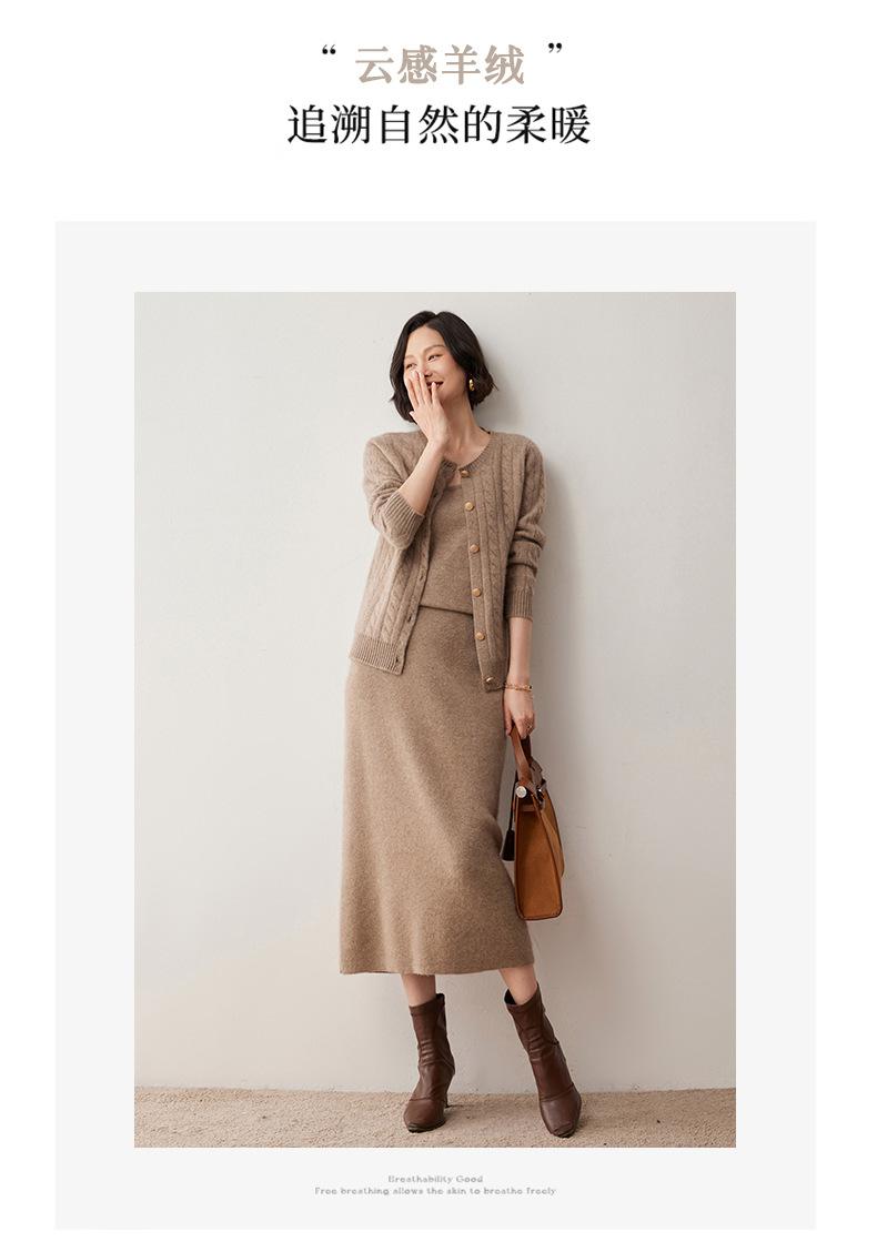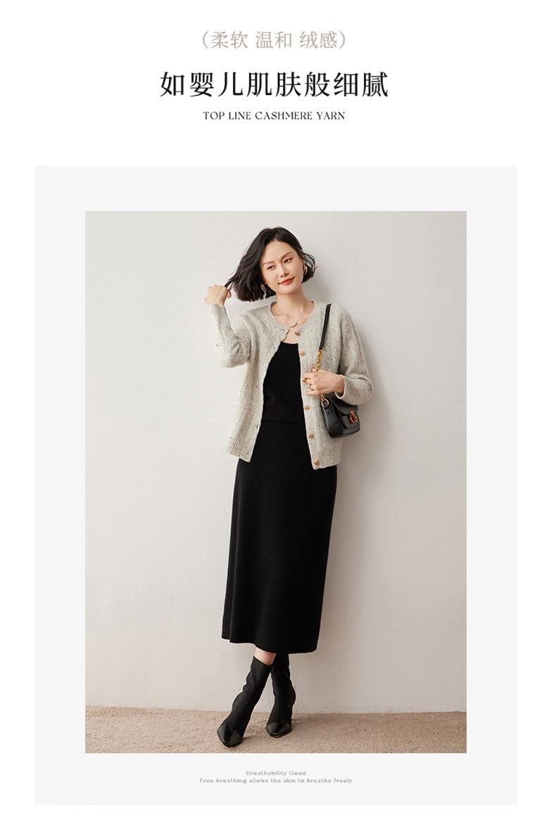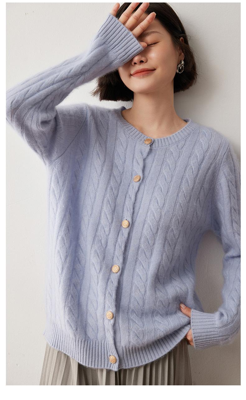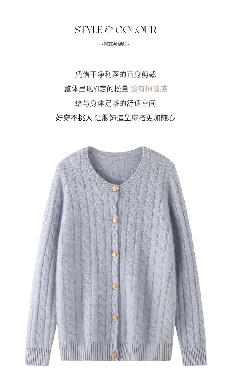 Cárdigan de lana de cachemira con cuello redondo para otoño e invierno, nuevo cárdigan de punto de manga larga que combina con todo, ropa de lana, chaqueta, ropa de mujer