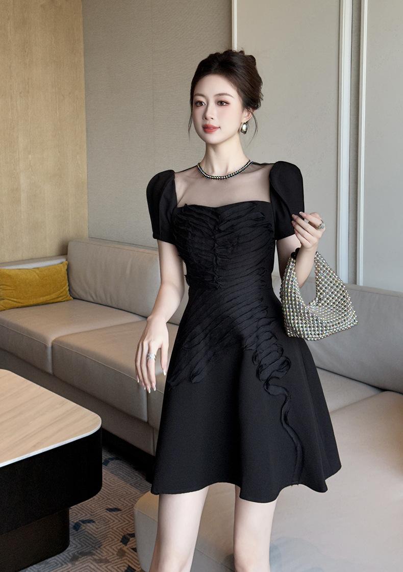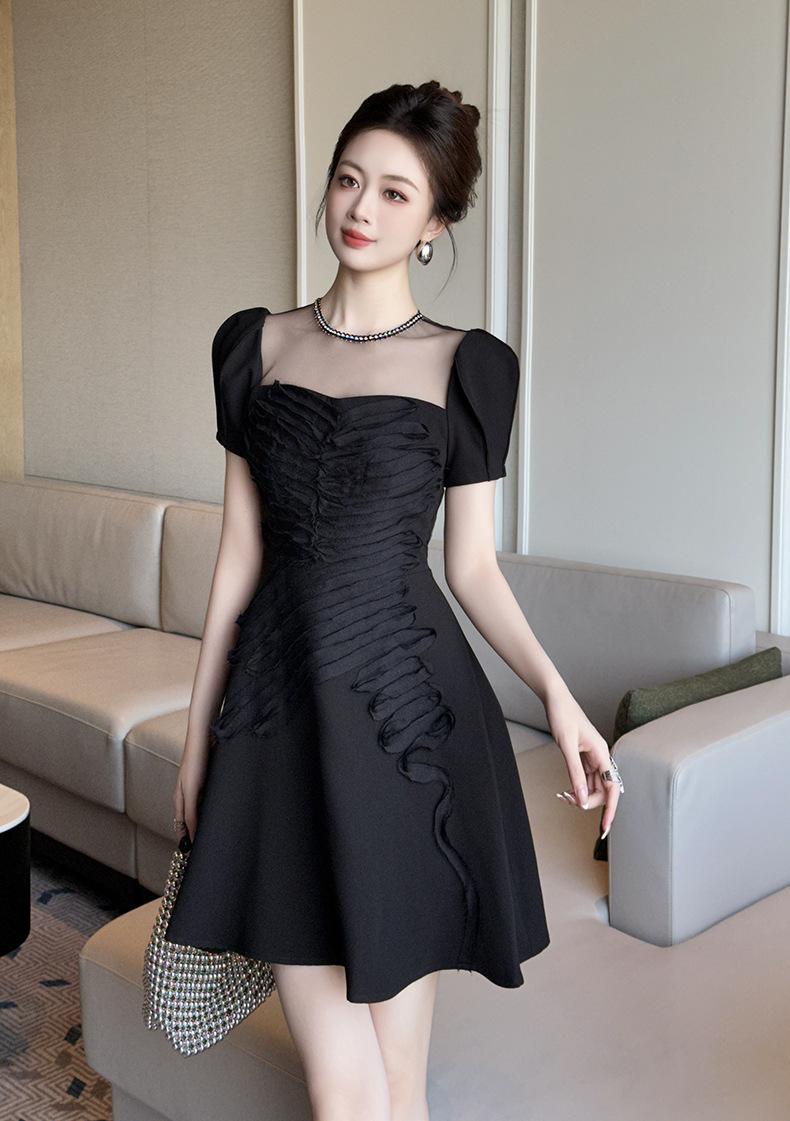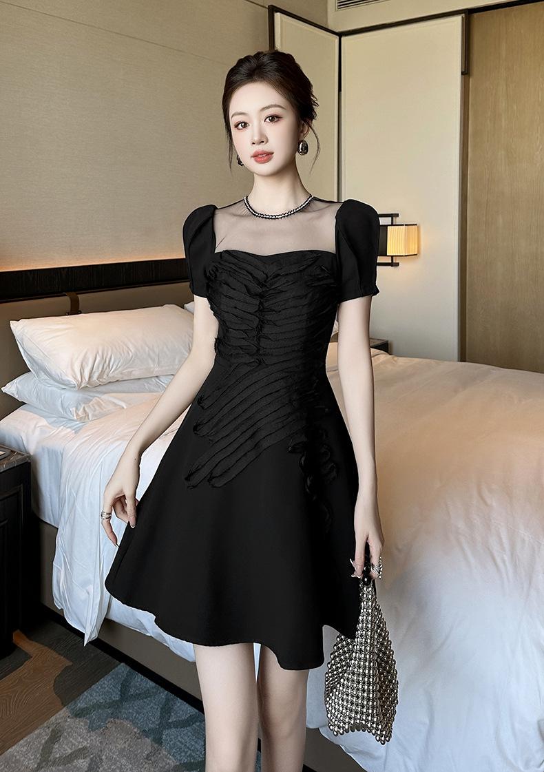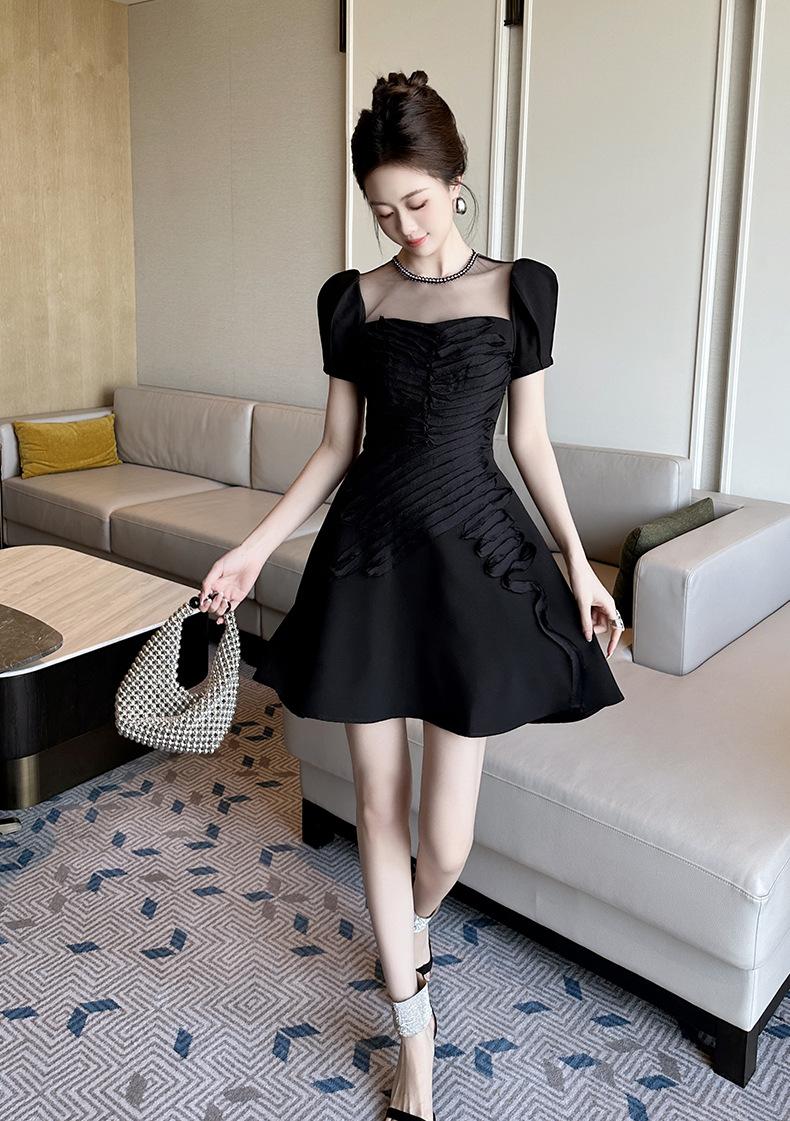 2025 Nuevo Verano Vestido Retro Hepburn Elegante Pequeño Vestido Negro Francés Cintura Plisado 9876