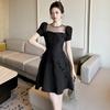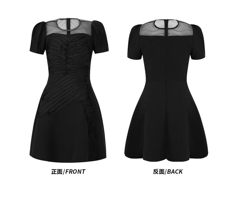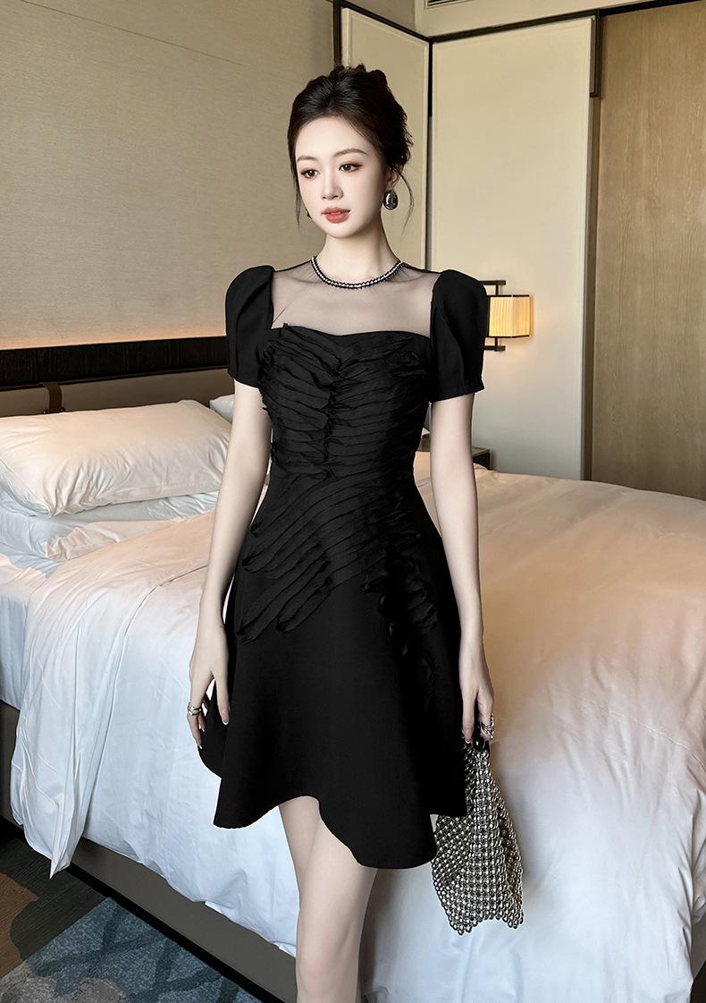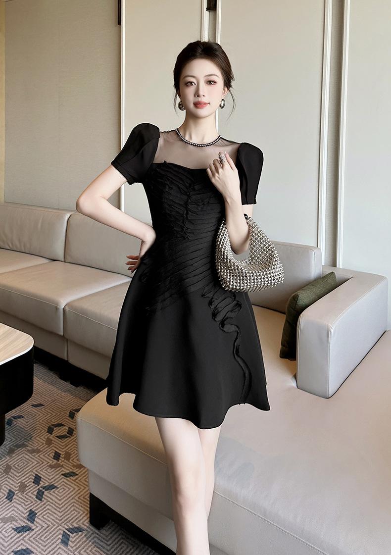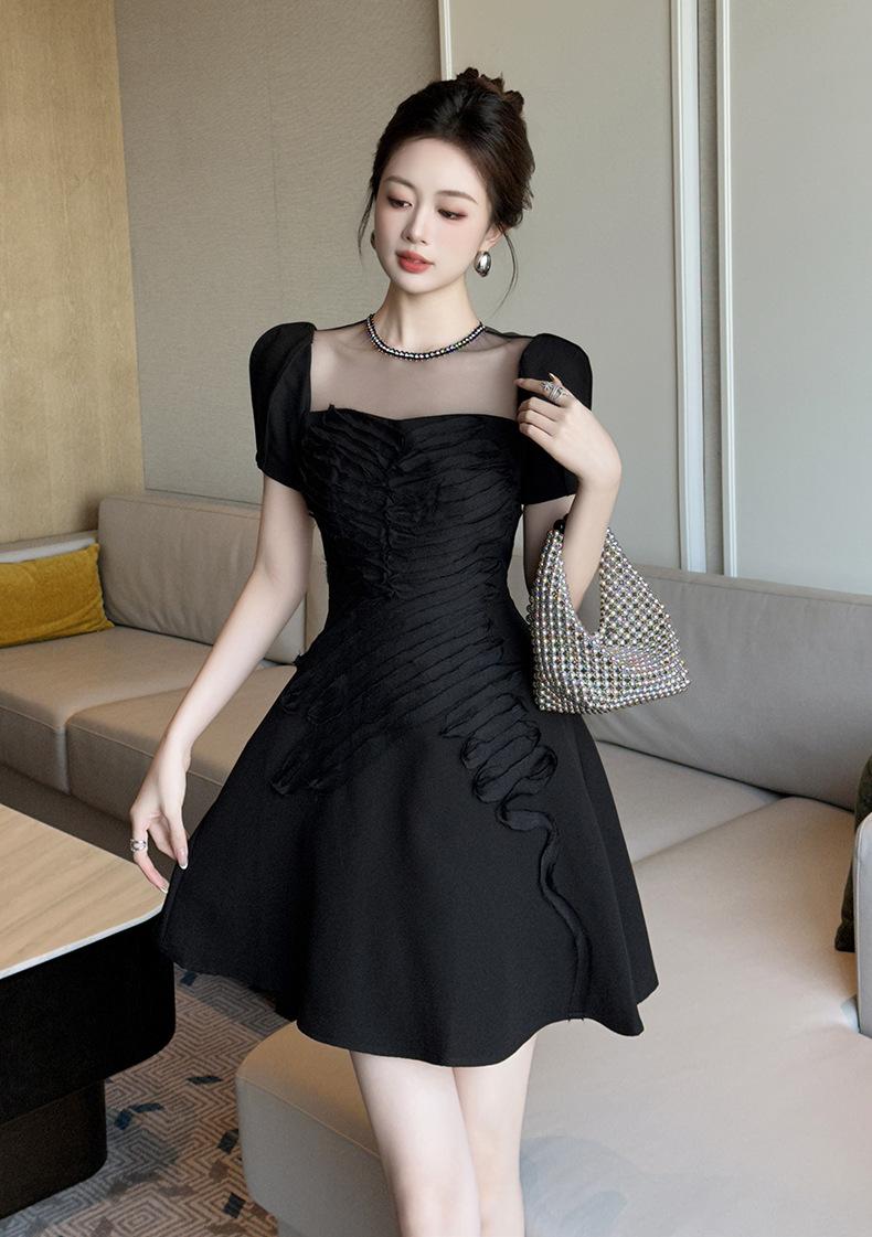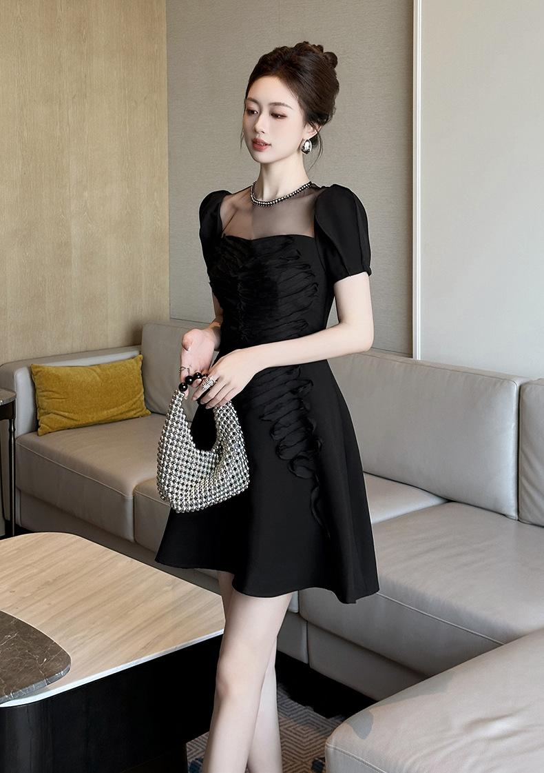 2025 Nuevo Verano Vestido Retro Hepburn Elegante Pequeño Vestido Negro Francés Cintura Plisado 9876