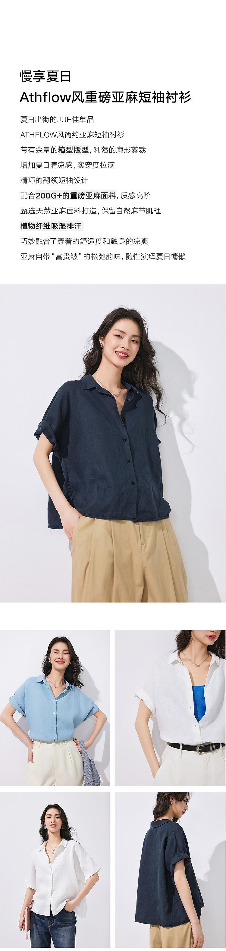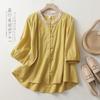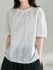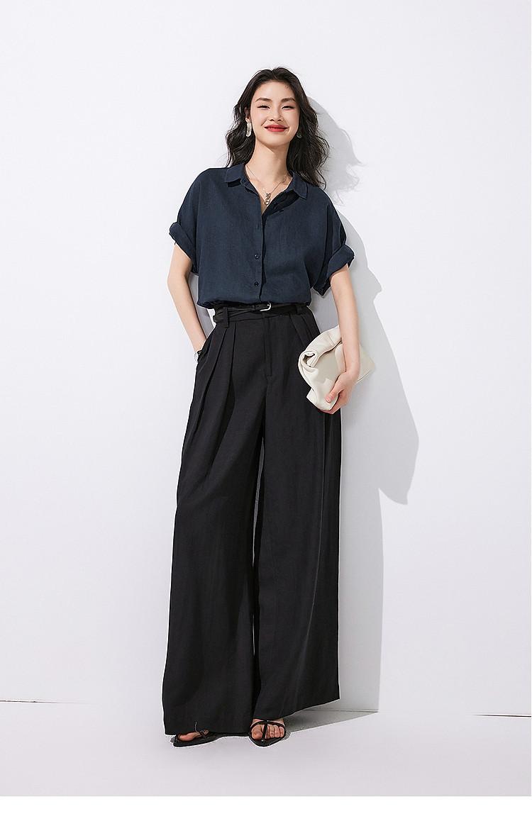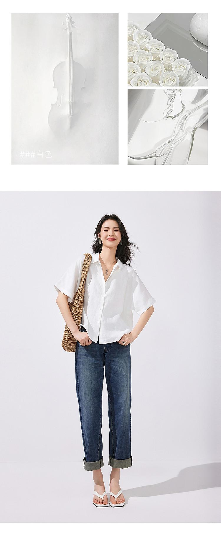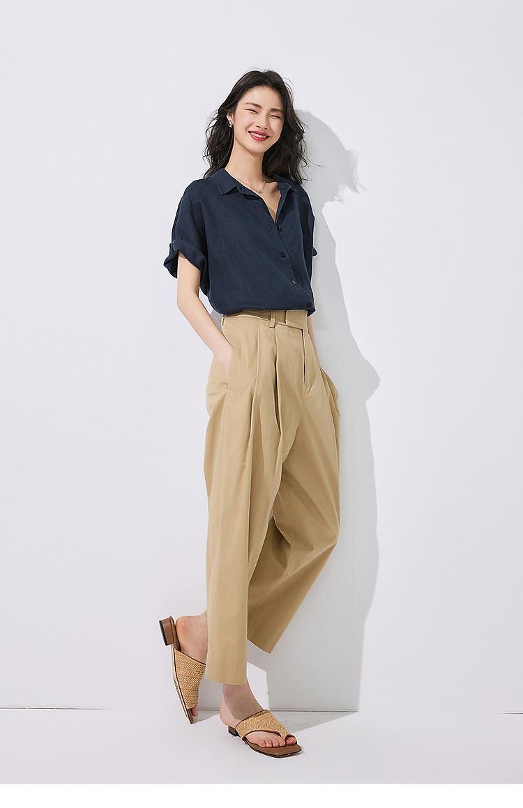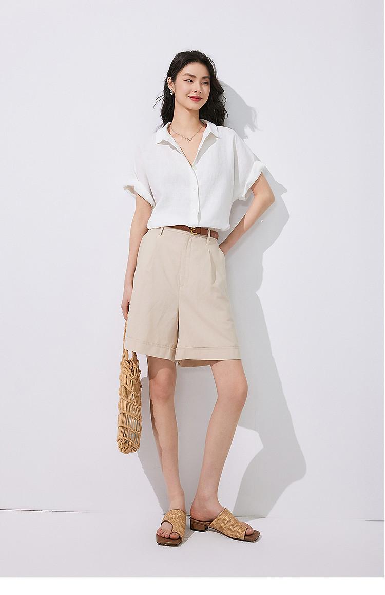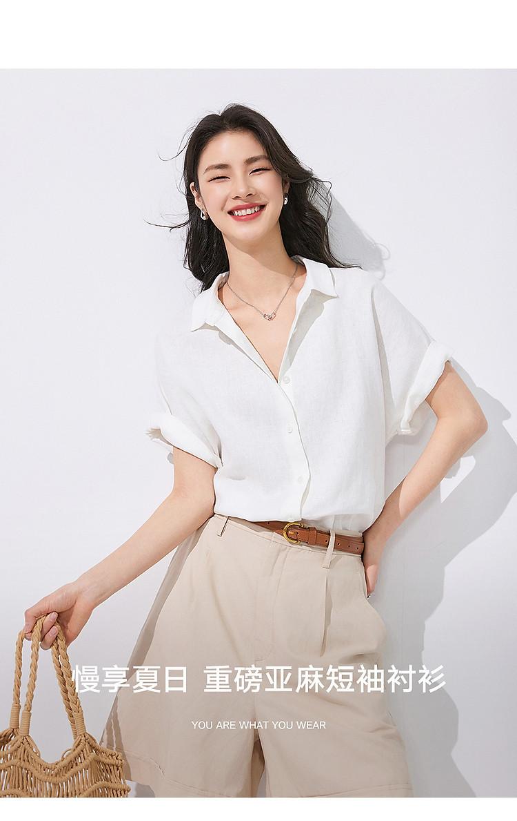 Camisa de manga corta para mujer, estilo caja, holgada, de primavera y verano, con solapa, de lino, transpirable y drapeada.