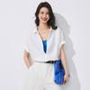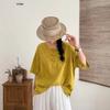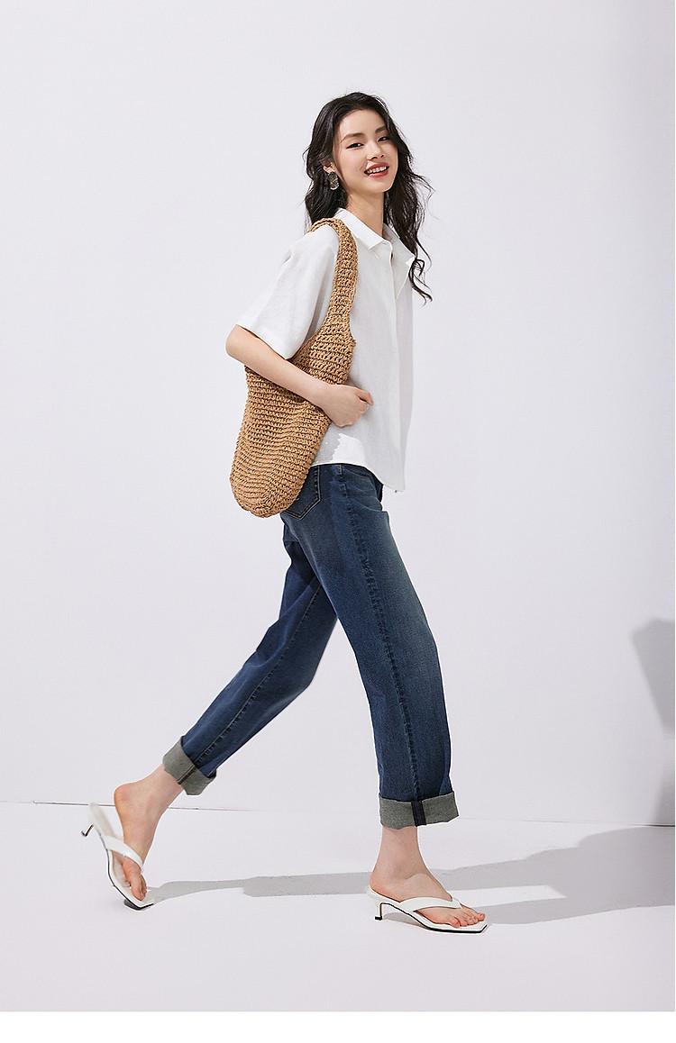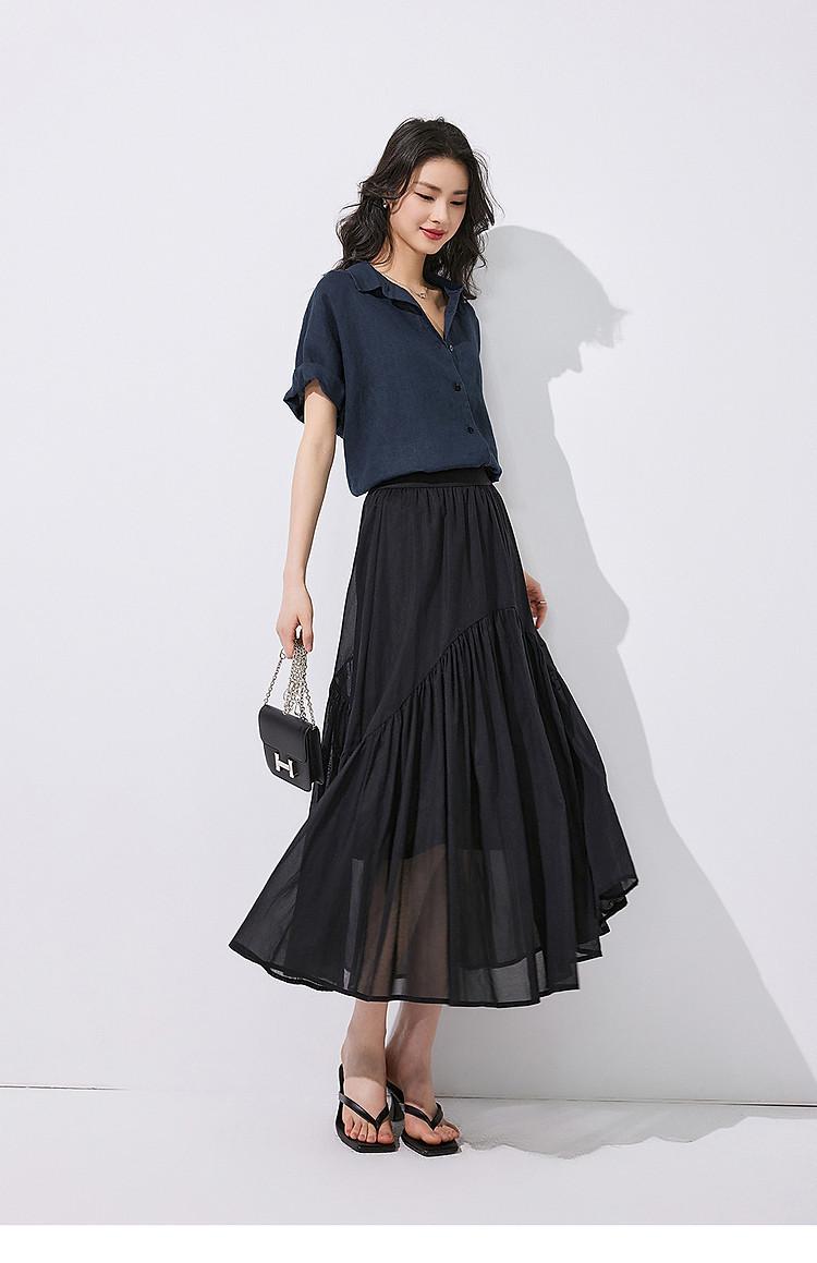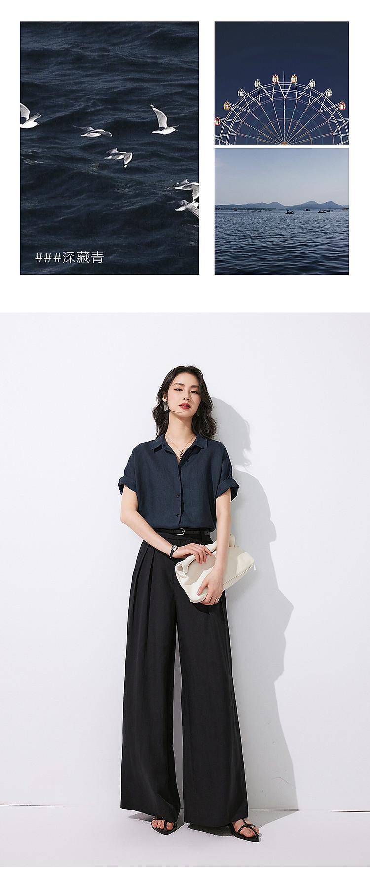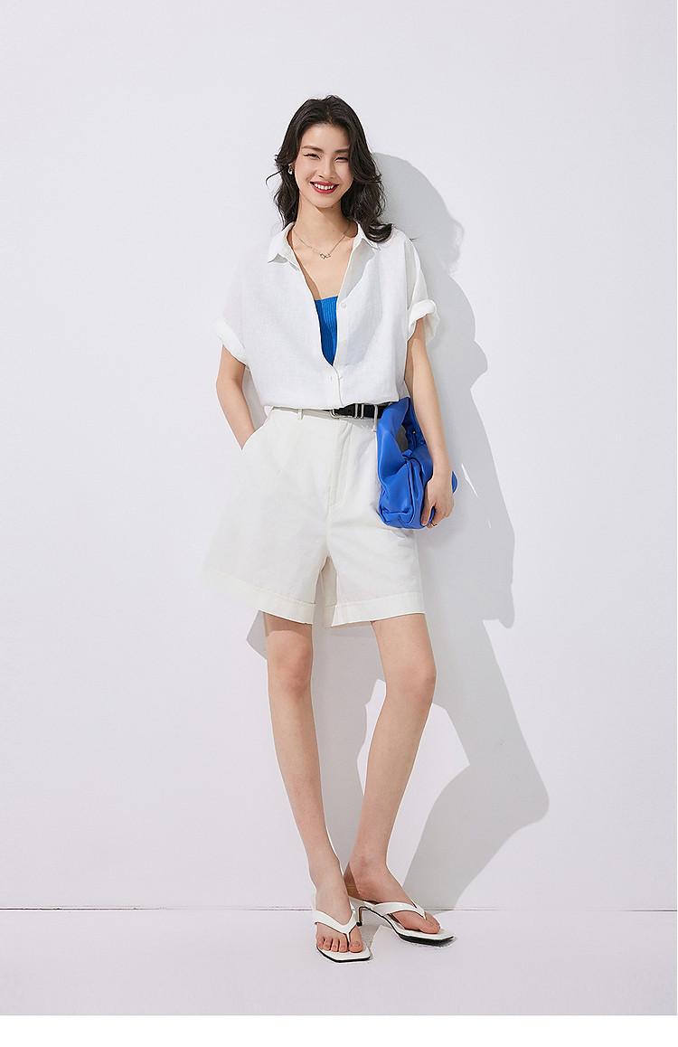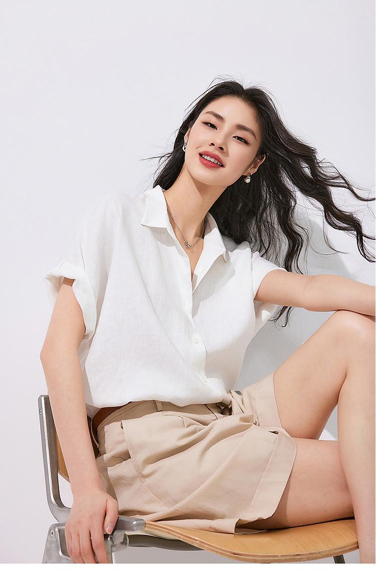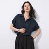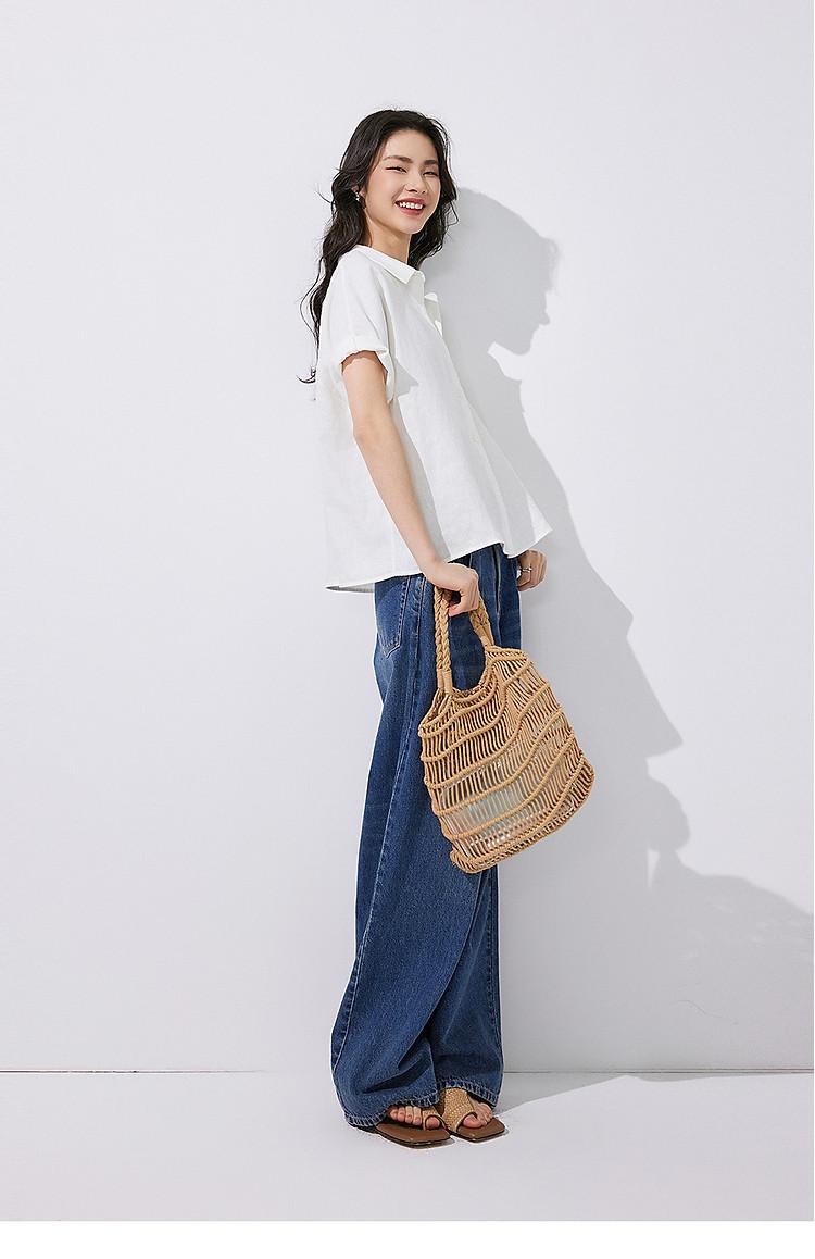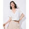 Camisa de manga corta para mujer, estilo caja, holgada, de primavera y verano, con solapa, de lino, transpirable y drapeada.