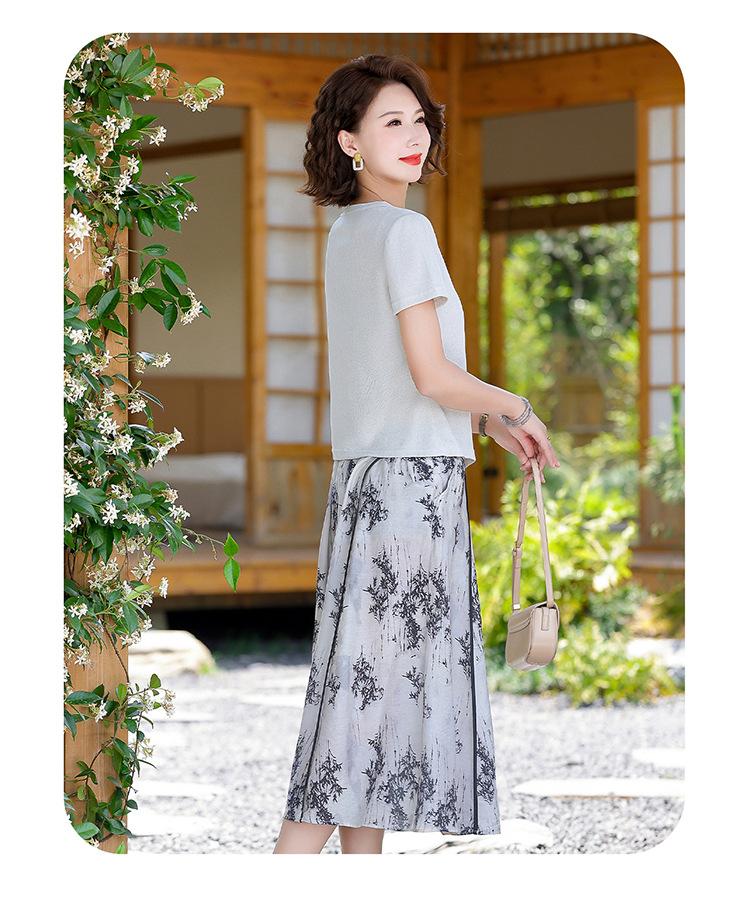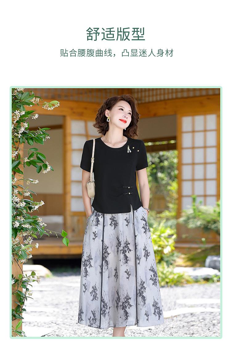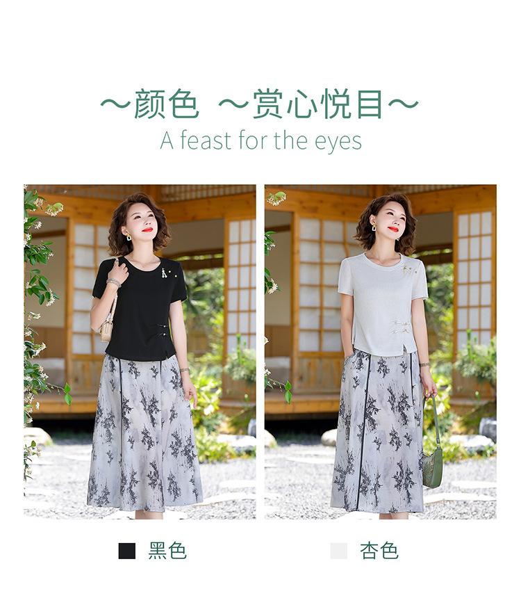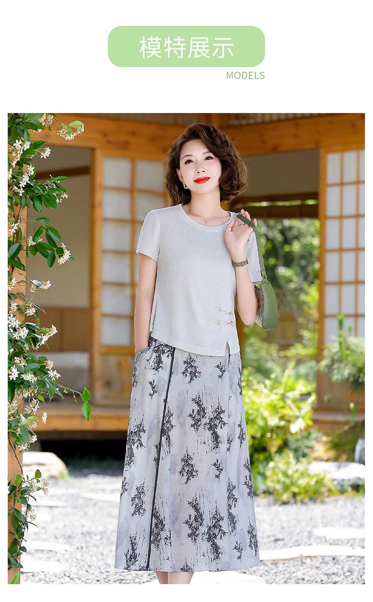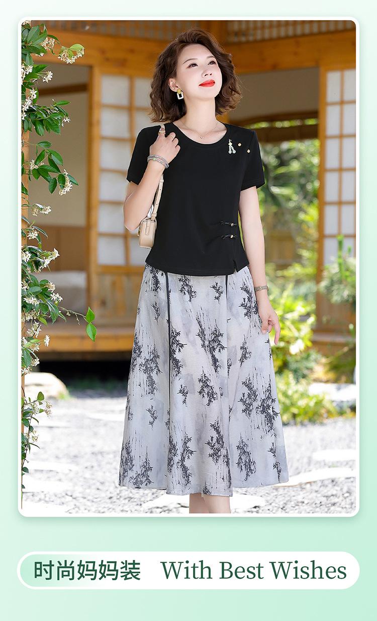 Falda de Moda de Verano para Mamá Temperamento Nuevo Camiseta de Manga Corta para Mujeres de Mediana Edad Falda Traje de Dos Piezas Falda
