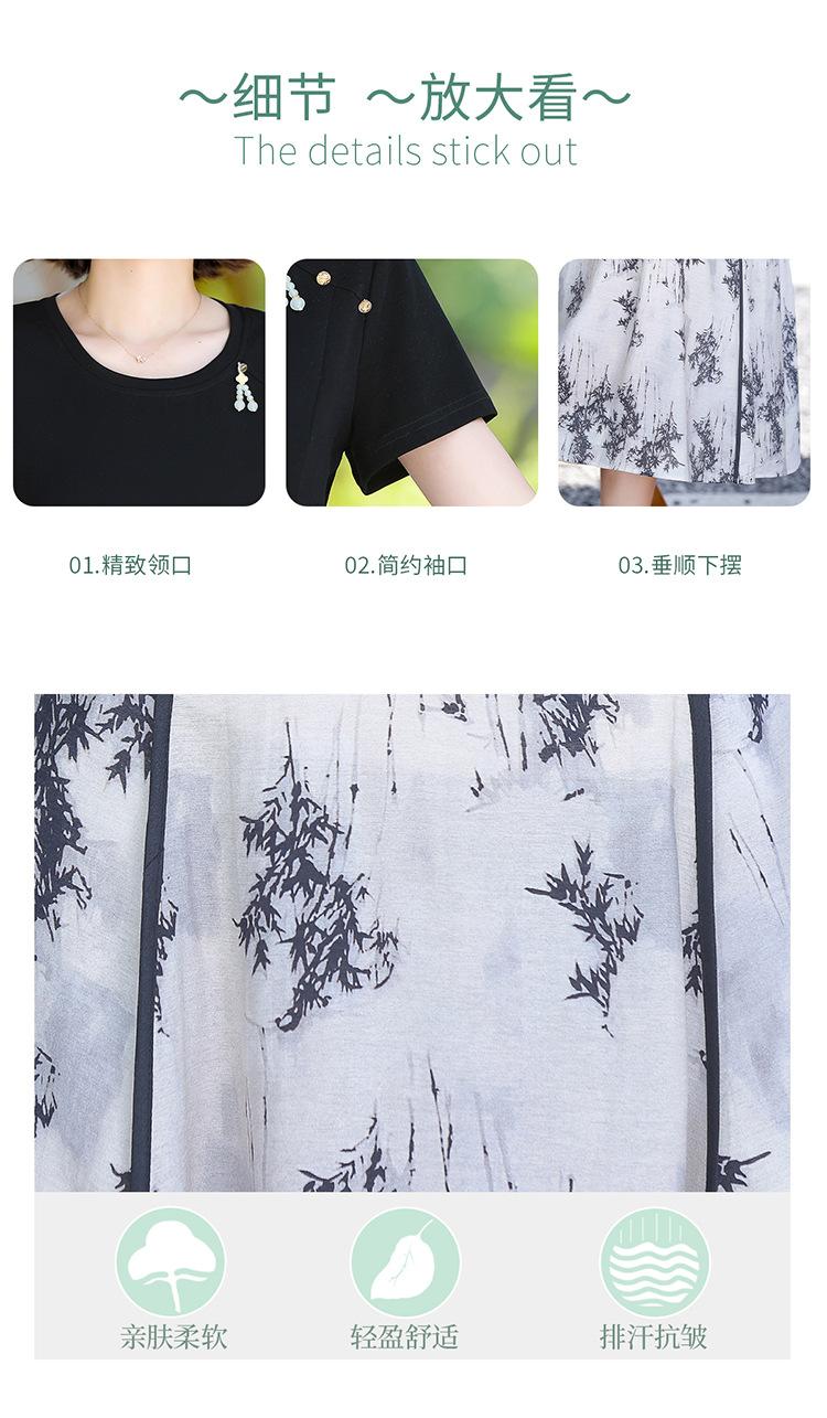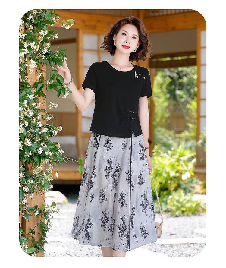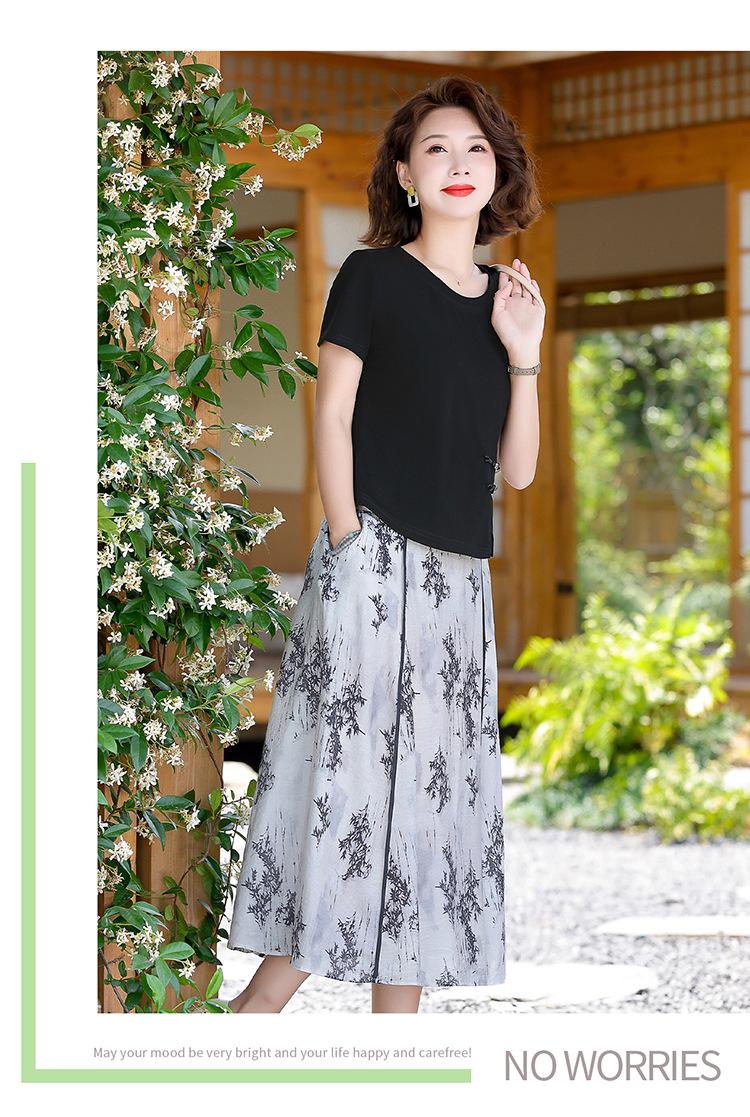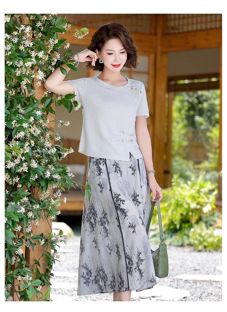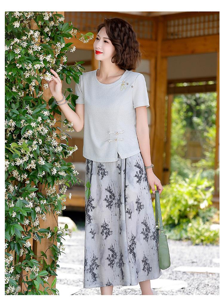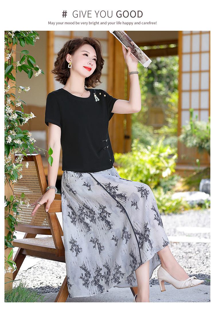 Falda de Moda de Verano para Mamá Temperamento Nuevo Camiseta de Manga Corta para Mujeres de Mediana Edad Falda Traje de Dos Piezas Falda