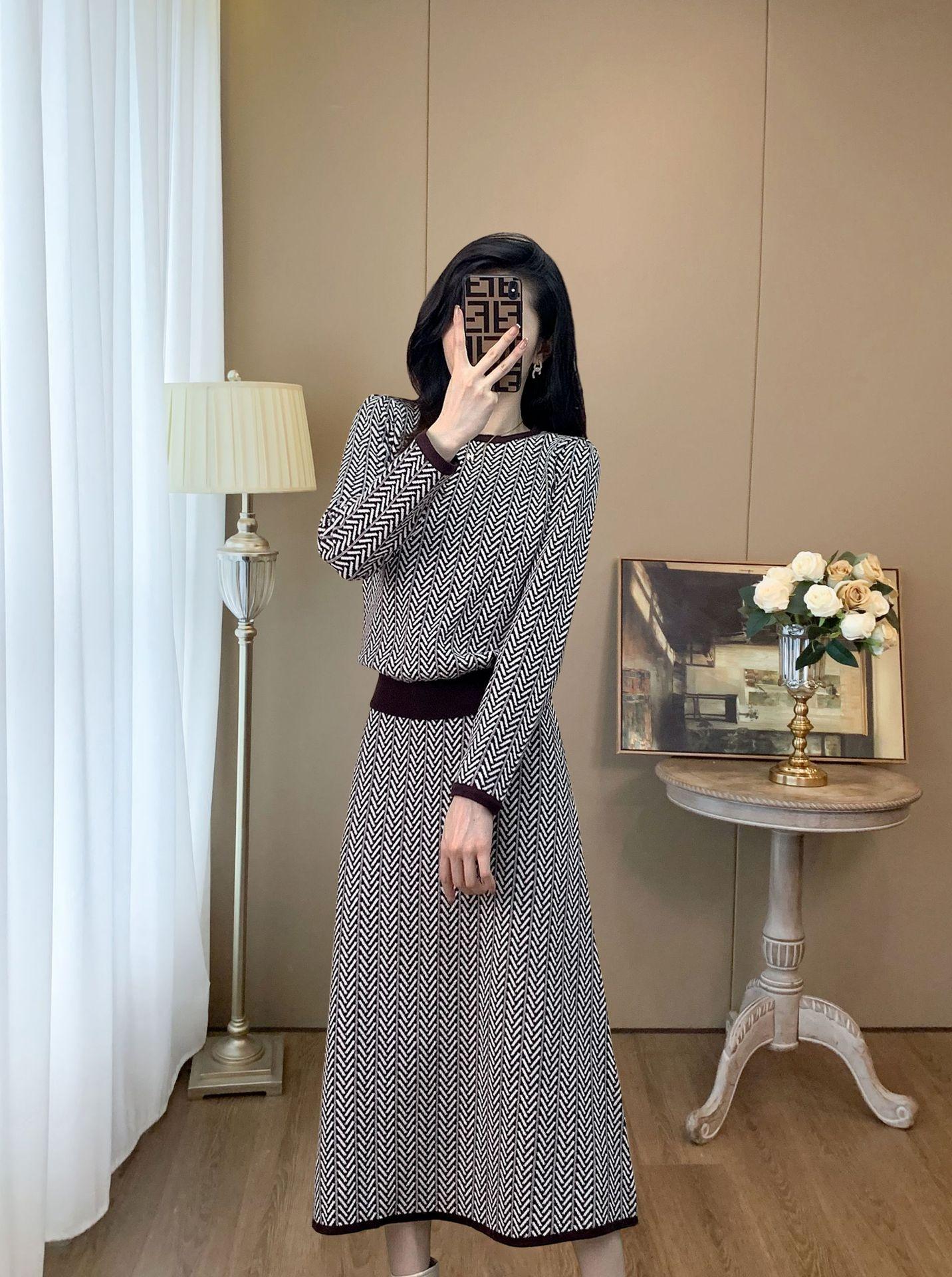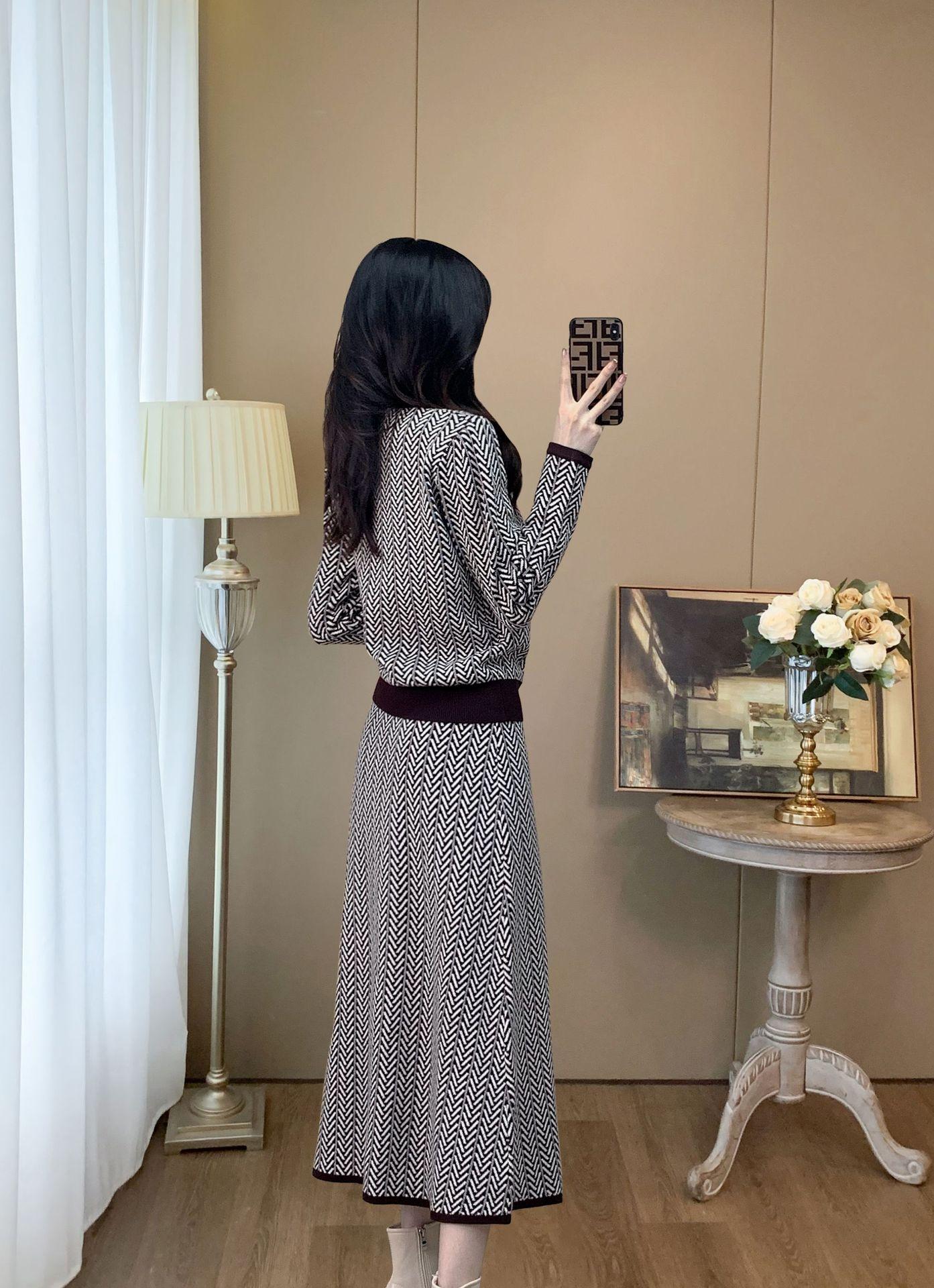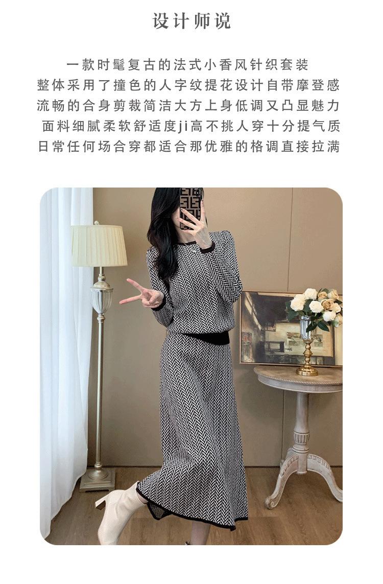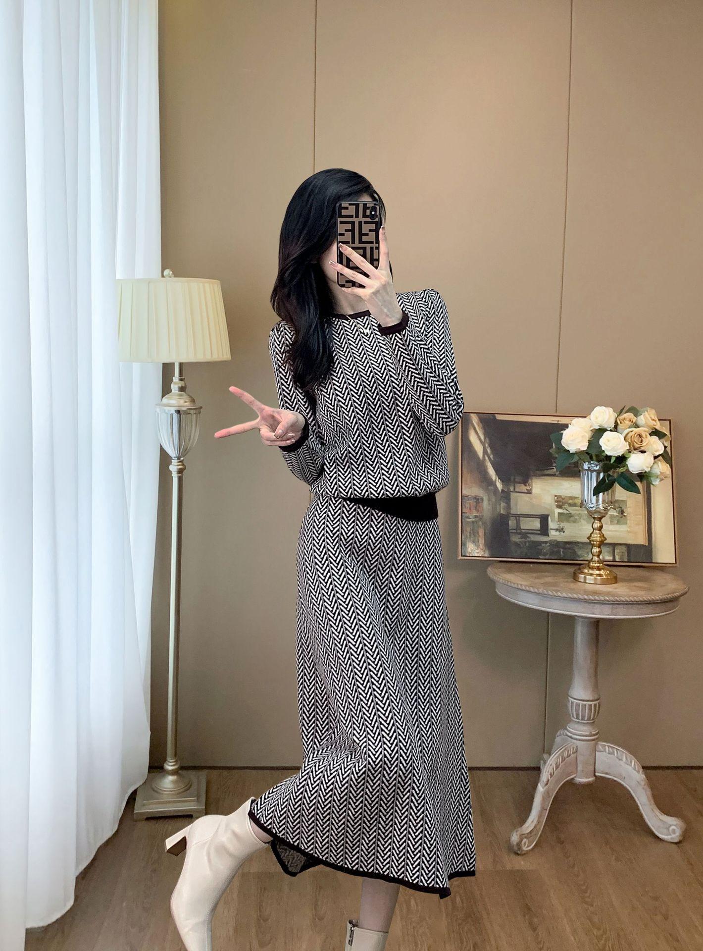 Traje de Punto Retro a la Moda 2025 Principios de Otoño Nuevo Estilo Francés Lujo Accesible Gama Alta Top y Falda Conjunto de Dos Piezas