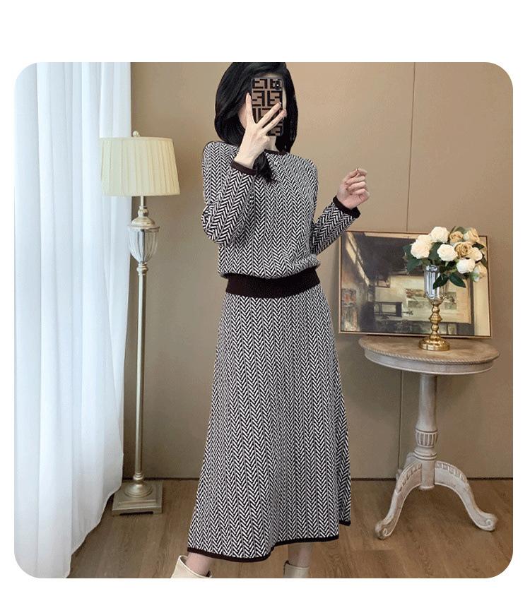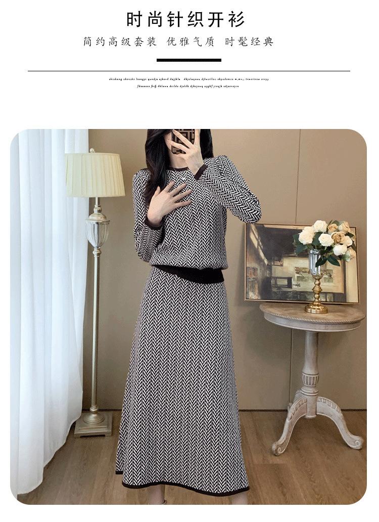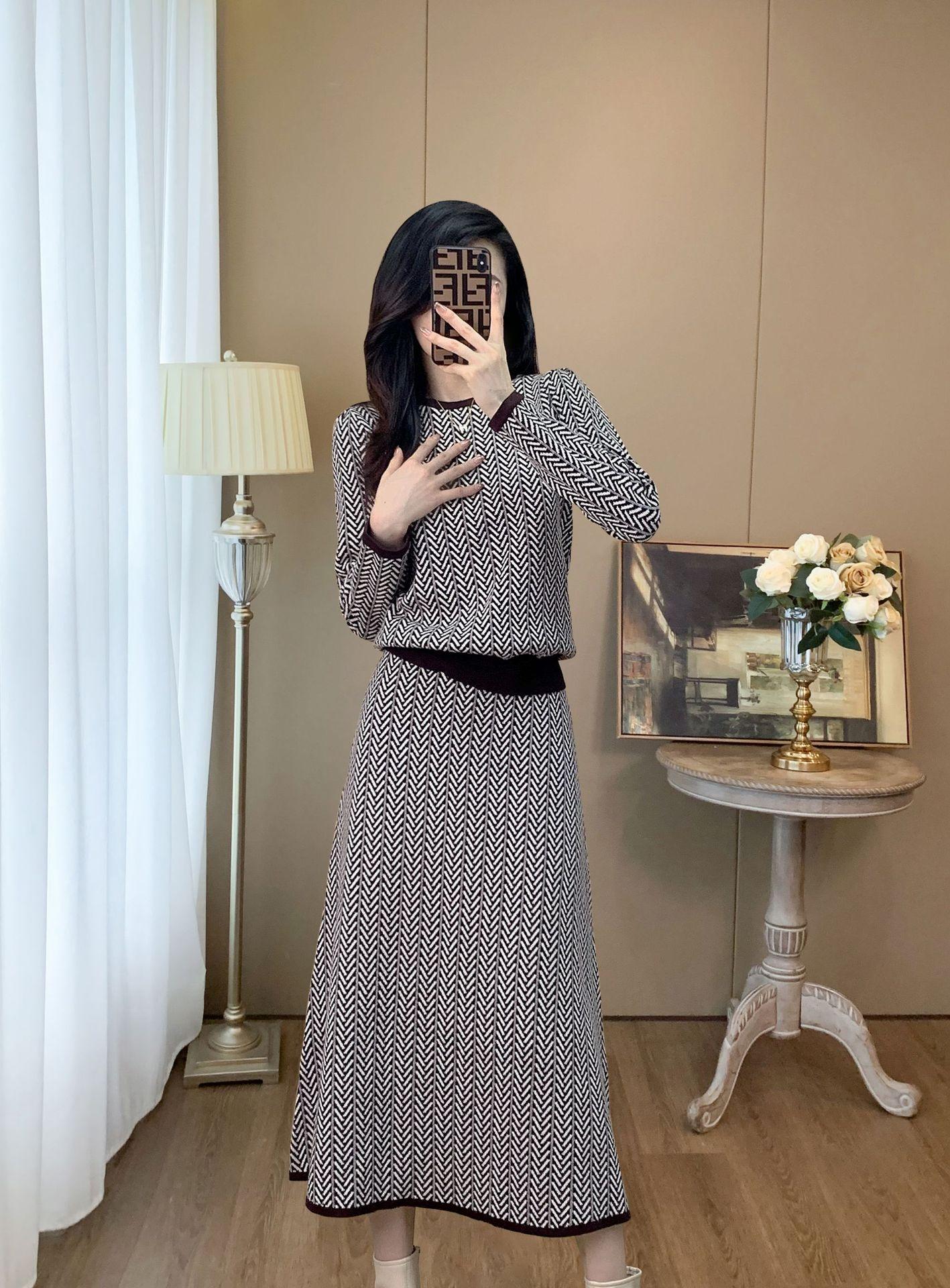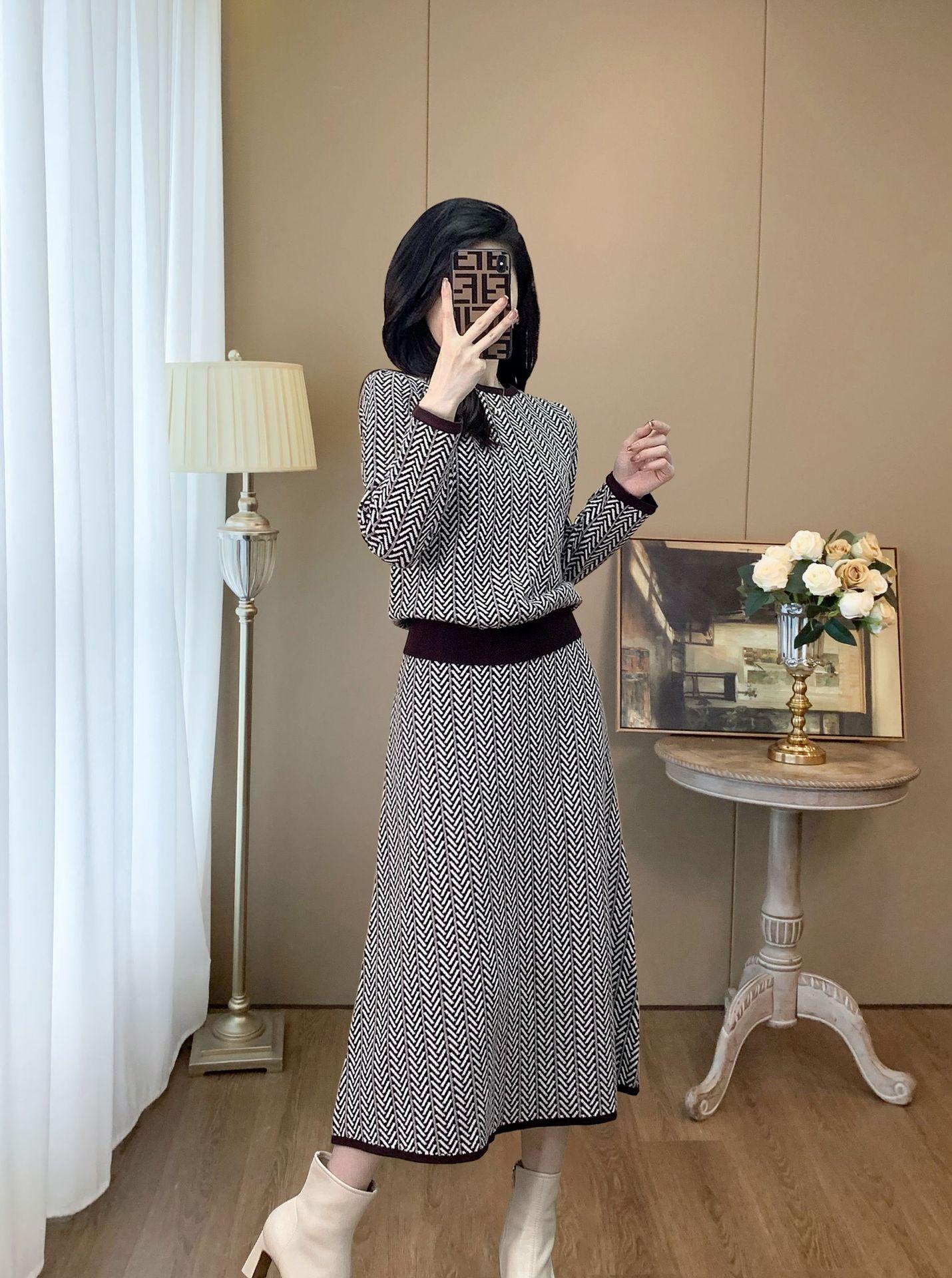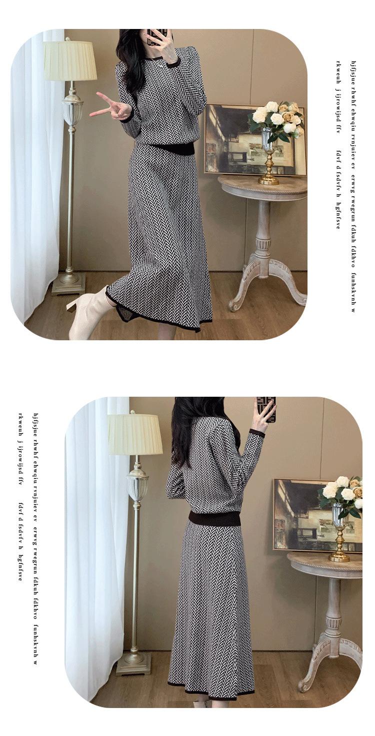 Traje de Punto Retro a la Moda 2025 Principios de Otoño Nuevo Estilo Francés Lujo Accesible Gama Alta Top y Falda Conjunto de Dos Piezas