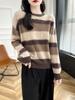 Suéter de lana de punto para mujer, estilo coreano, moda de otoño e invierno, suéter holgado a rayas para exteriores, estilo coreano, estilo perezoso, 2024