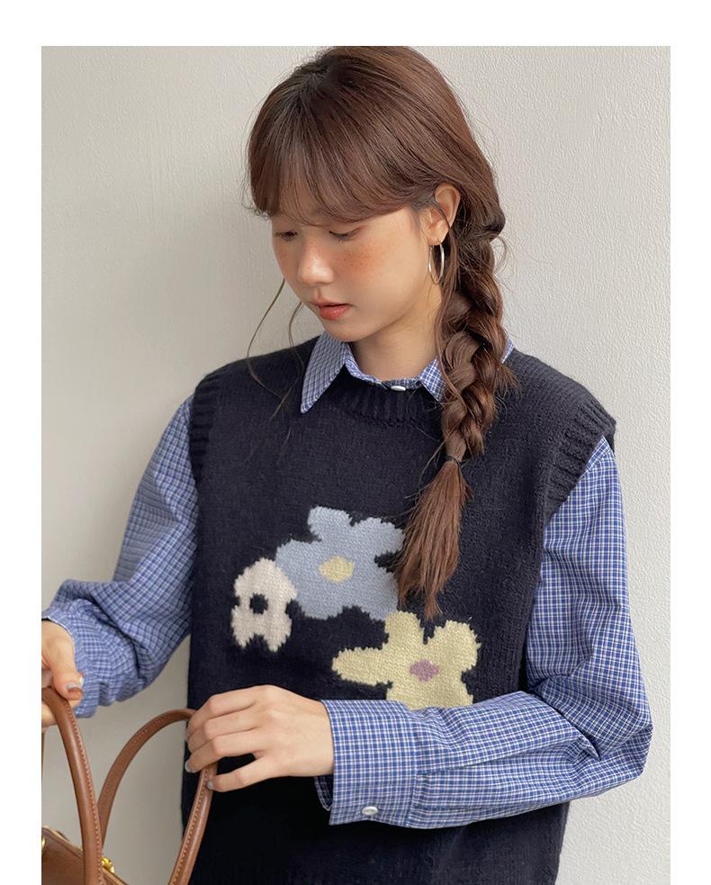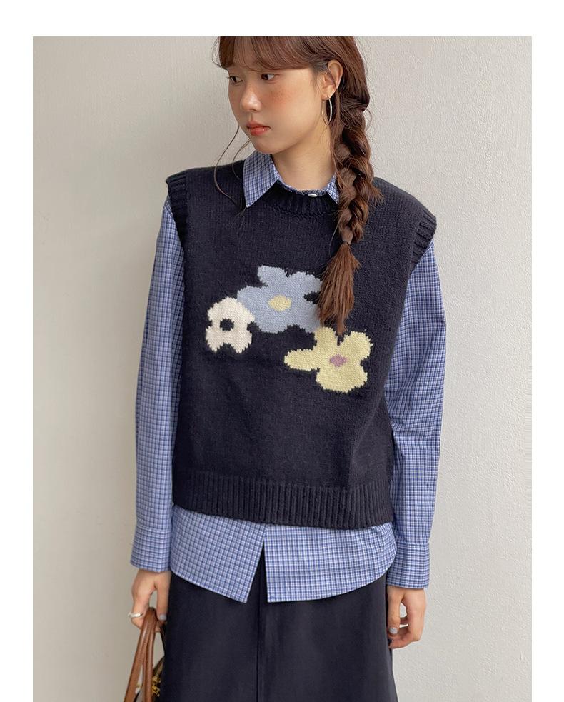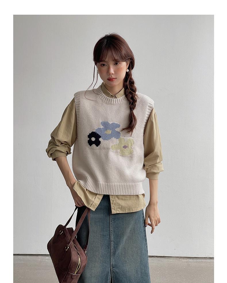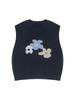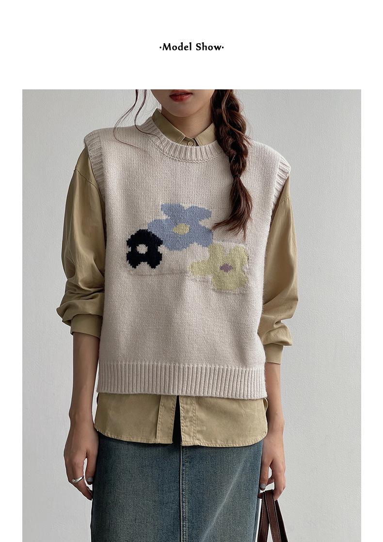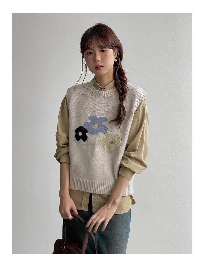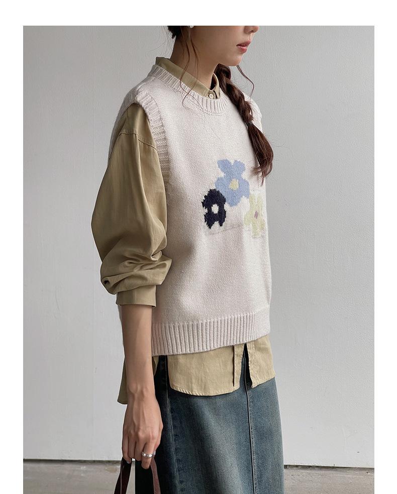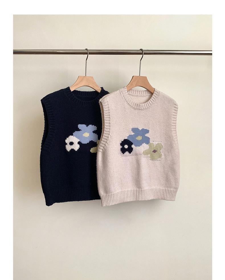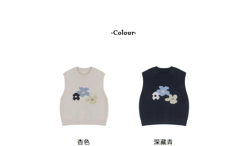 [Flor y Otoño] Ge Ming Design Chaleco de Punto de Flores de Cuello Redondo para Mujer Top sin Mangas para Apilar N133B