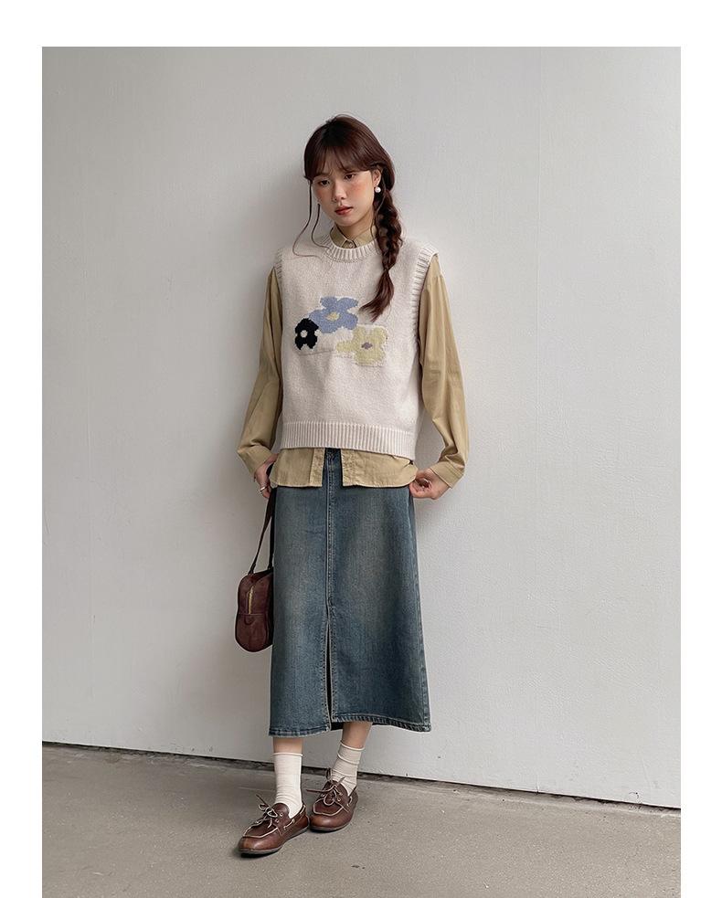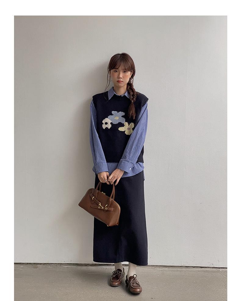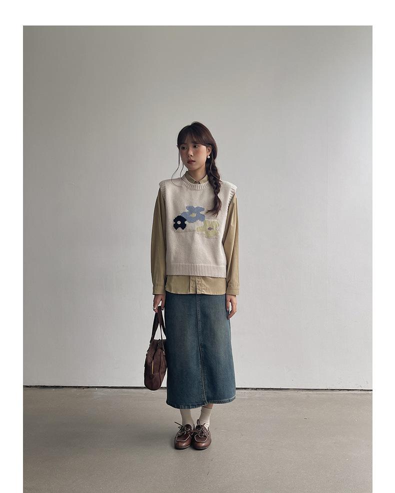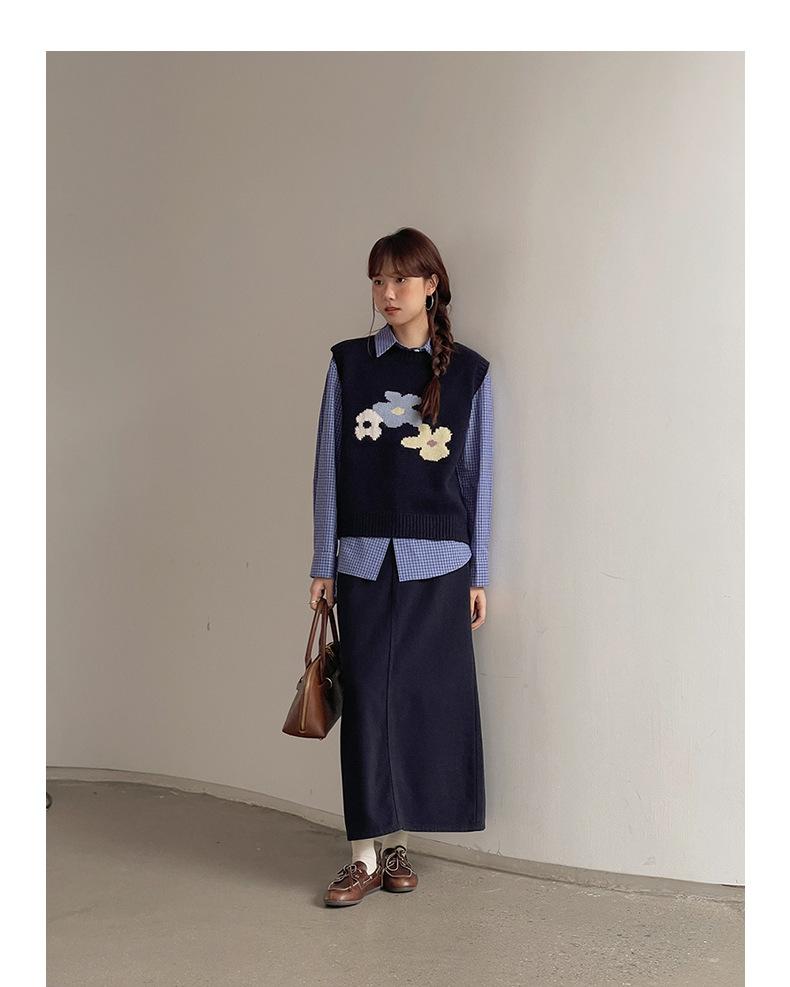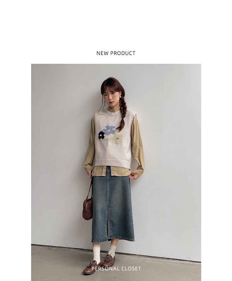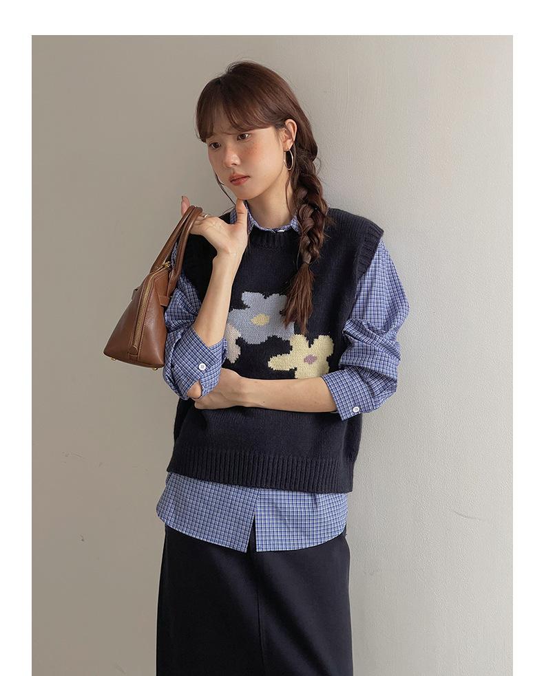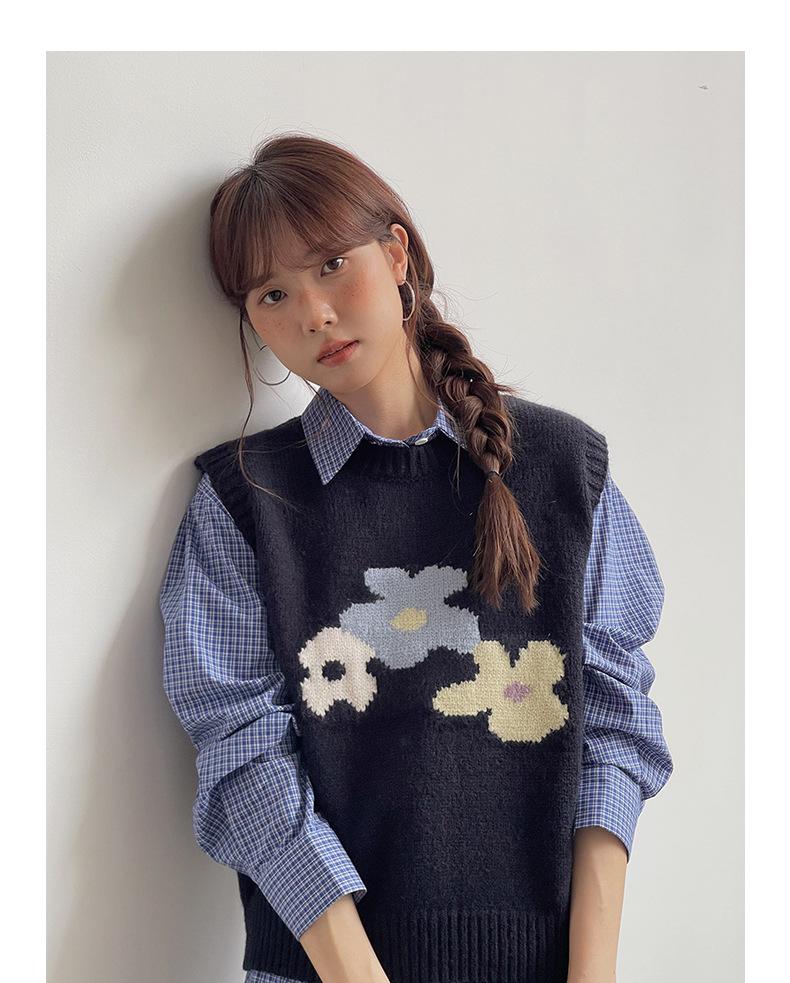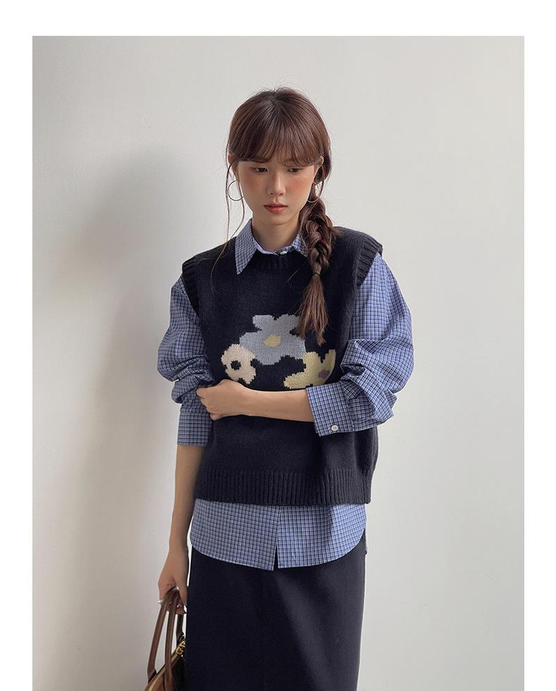 [Flor y Otoño] Ge Ming Design Chaleco de Punto de Flores de Cuello Redondo para Mujer Top sin Mangas para Apilar N133B