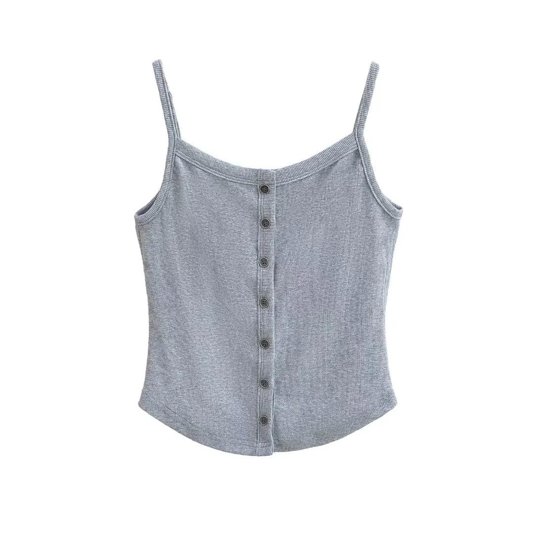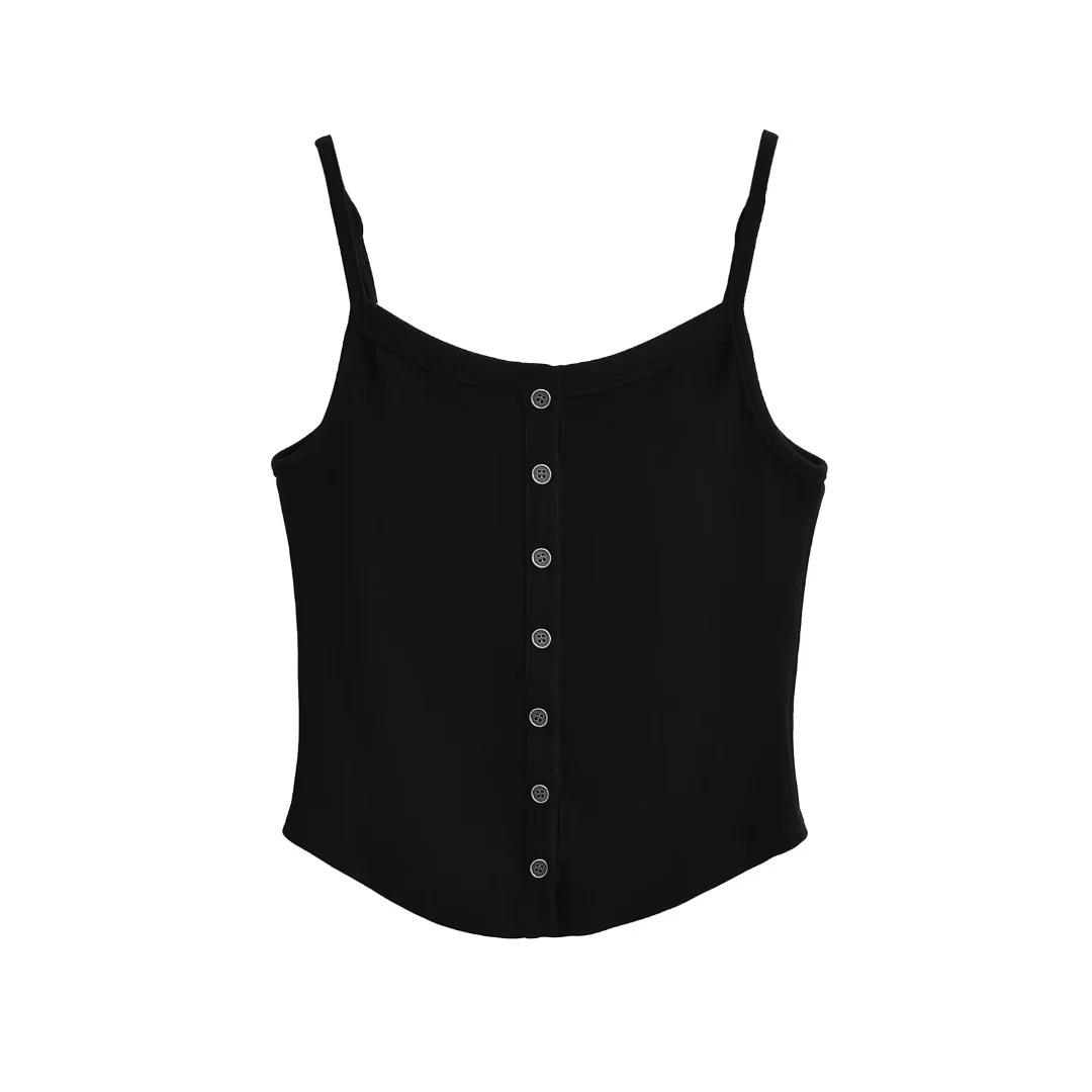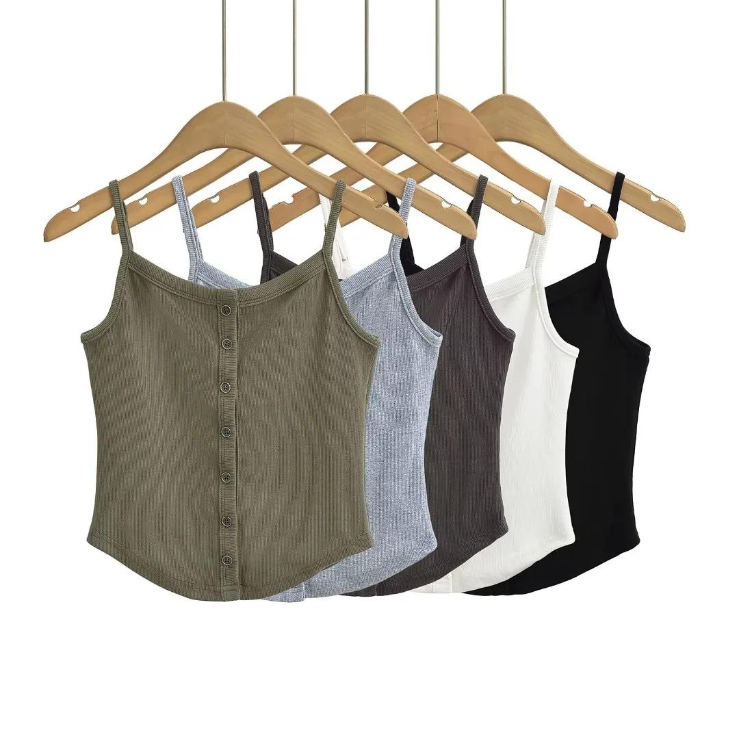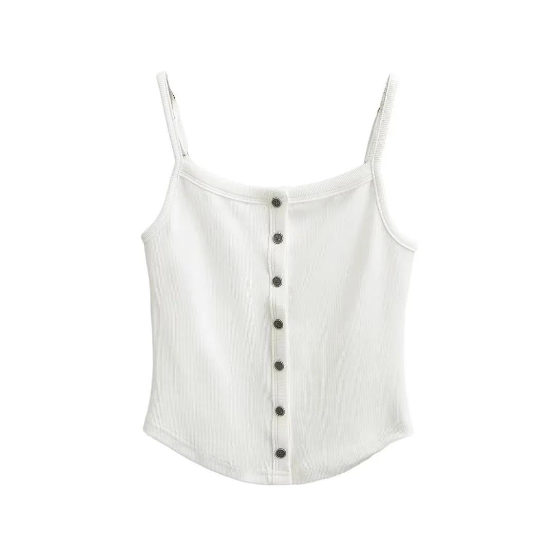 Chaleco estilo Spice Girl estilo americano para mujer, novedad de verano 2024, top básico con tirantes y botonadura frontal que combina con todo.