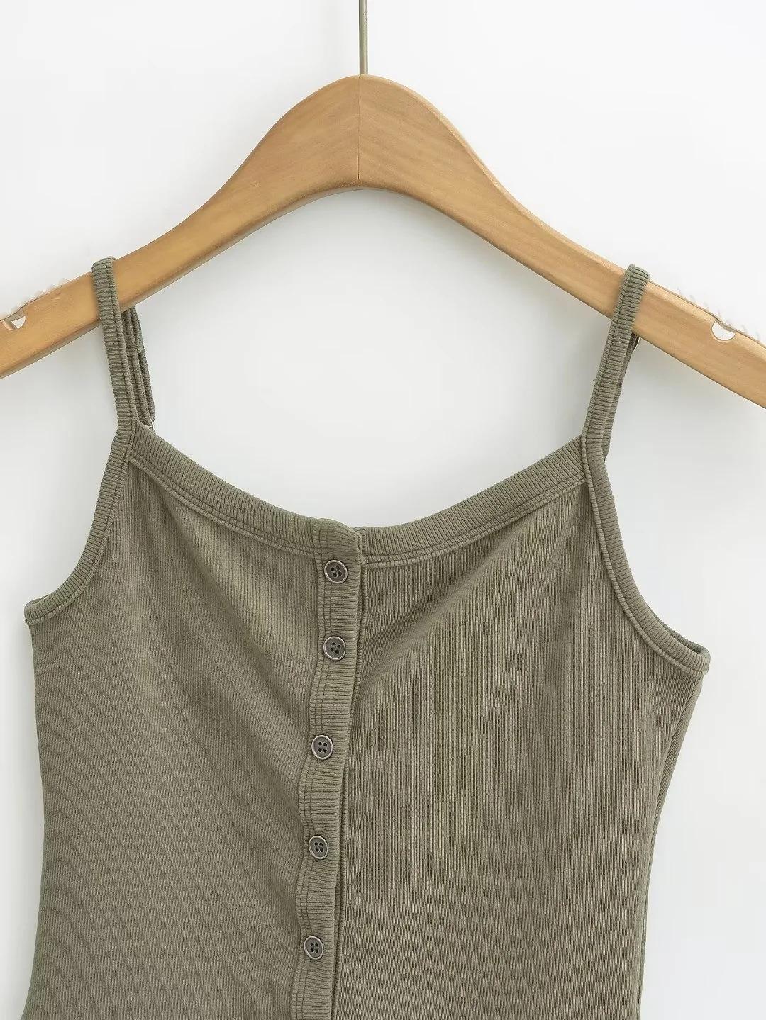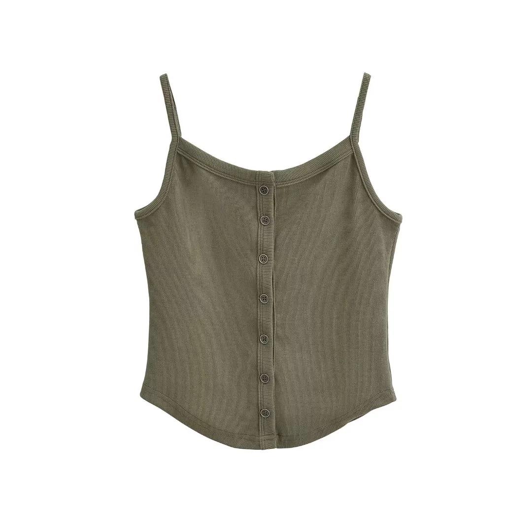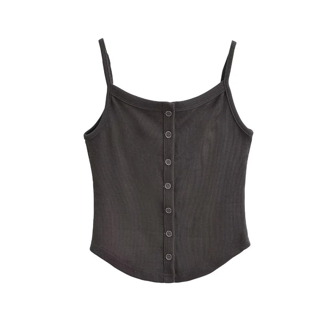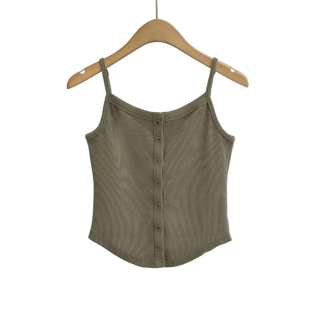 Chaleco estilo Spice Girl estilo americano para mujer, novedad de verano 2024, top básico con tirantes y botonadura frontal que combina con todo.