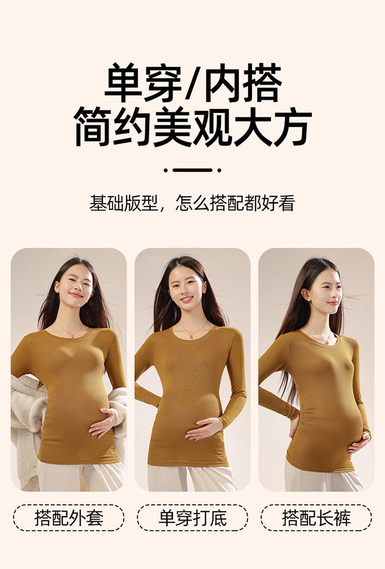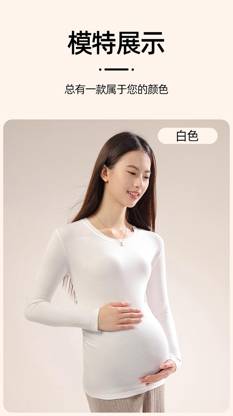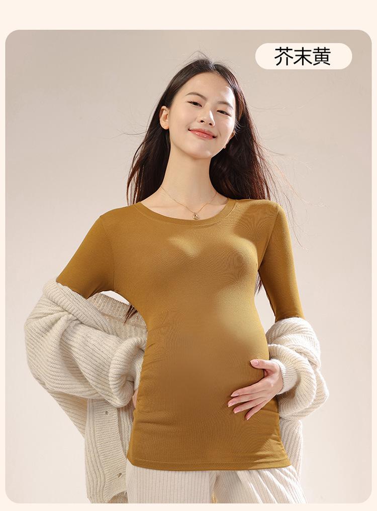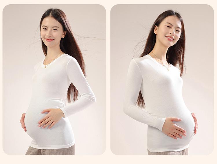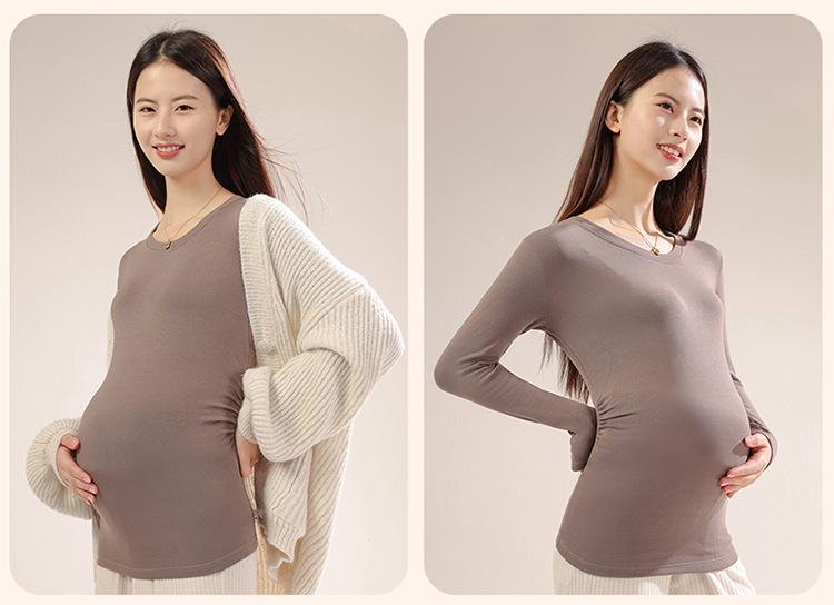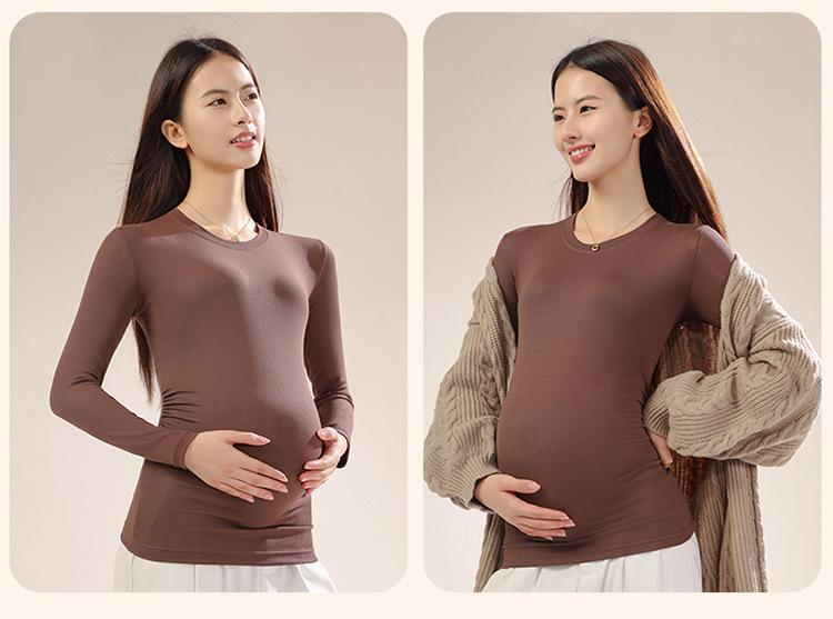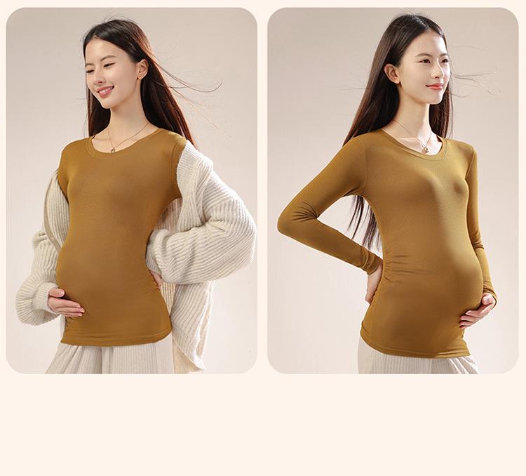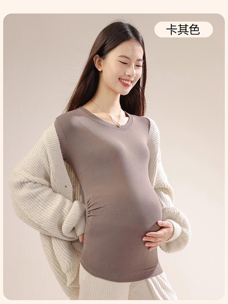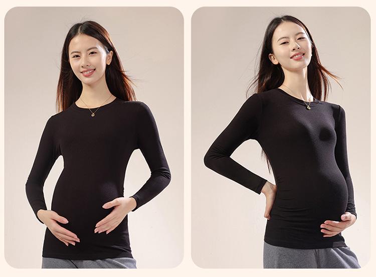 Ropa de Maternidad Primavera y Otoño Tops de Maternidad Cuello Redondo de Alta Elasticidad Nuevo Estilo Ropa Exterior de Maternidad Camiseta Básica 802 Prenatal