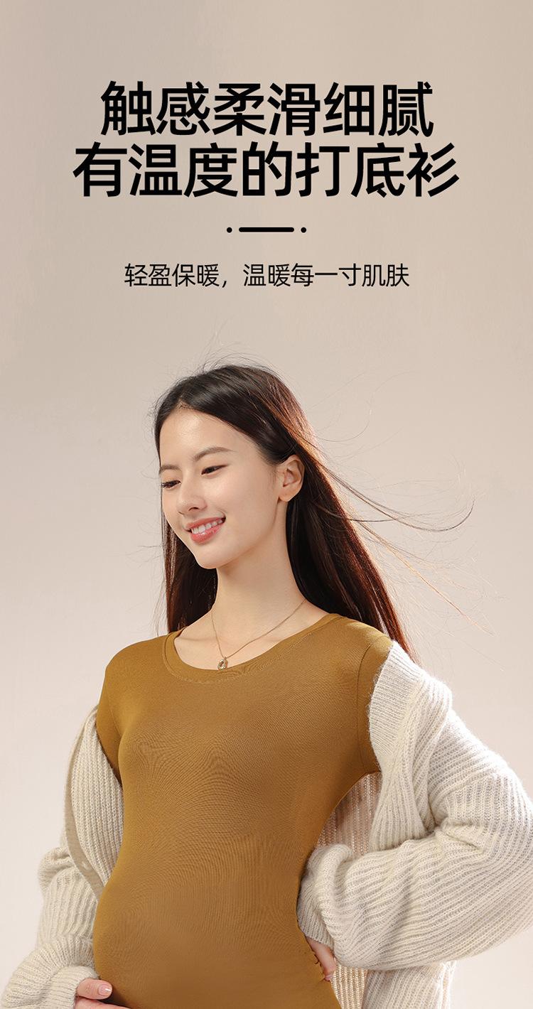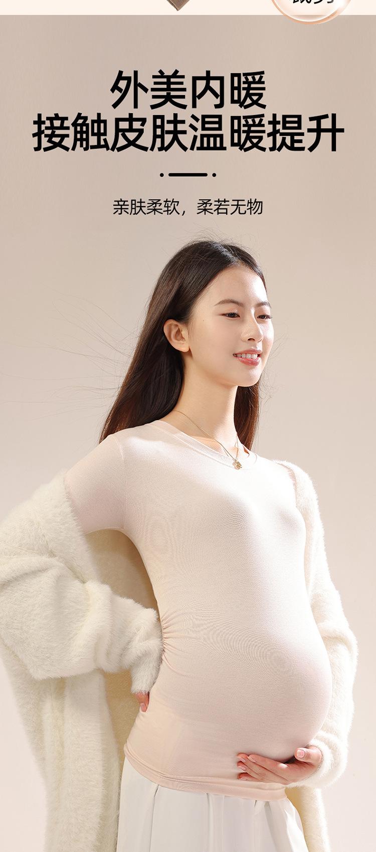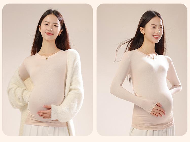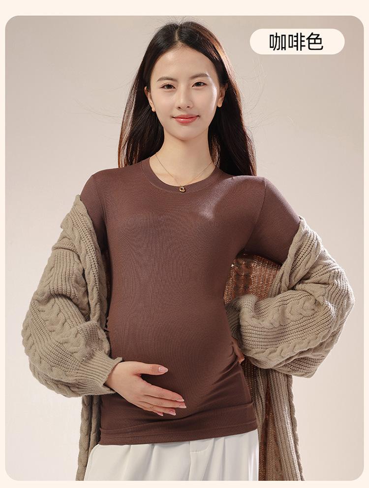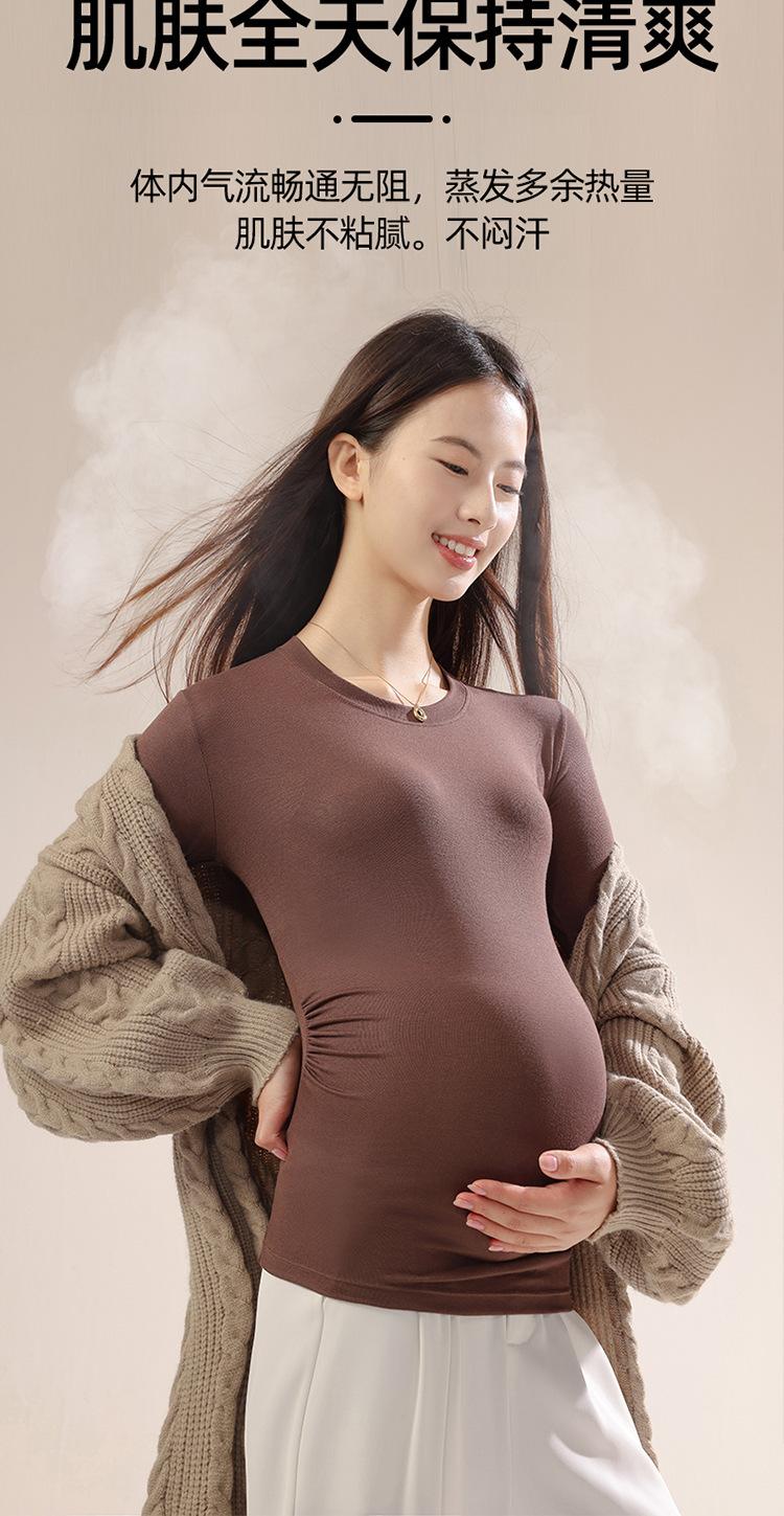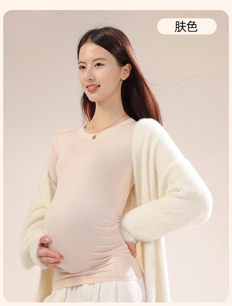 Ropa de Maternidad Primavera y Otoño Tops de Maternidad Cuello Redondo de Alta Elasticidad Nuevo Estilo Ropa Exterior de Maternidad Camiseta Básica 802 Prenatal