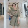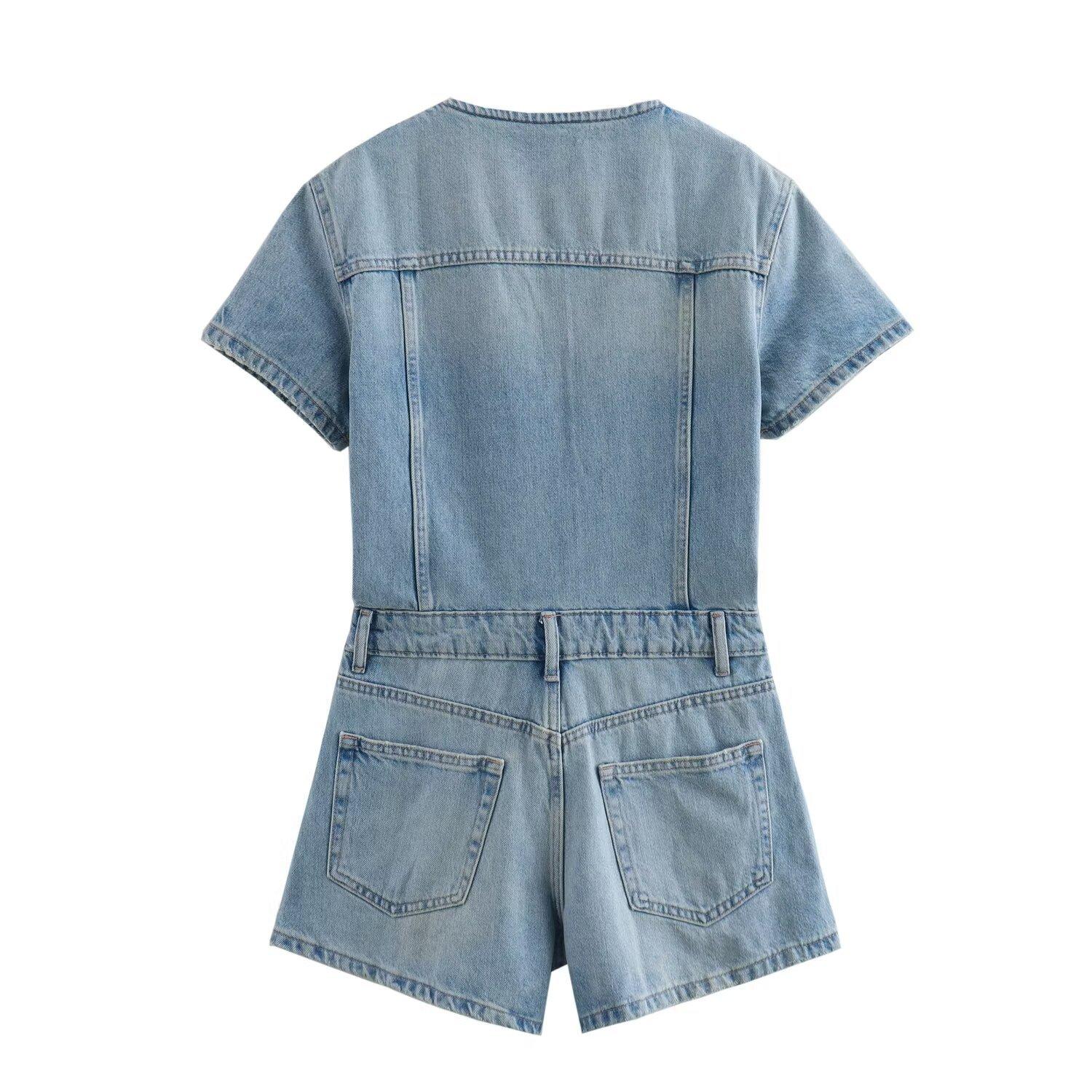 Ropa de mujer de estilo europeo y americano, novedad de verano 2024, mono de trabajo de moda personalizado con cuello en V, corto, recto y ajustado de mezclilla.
