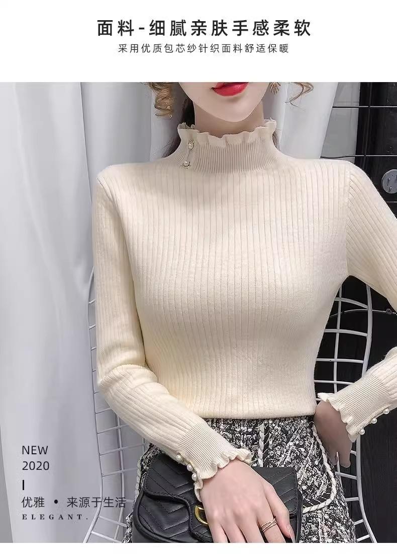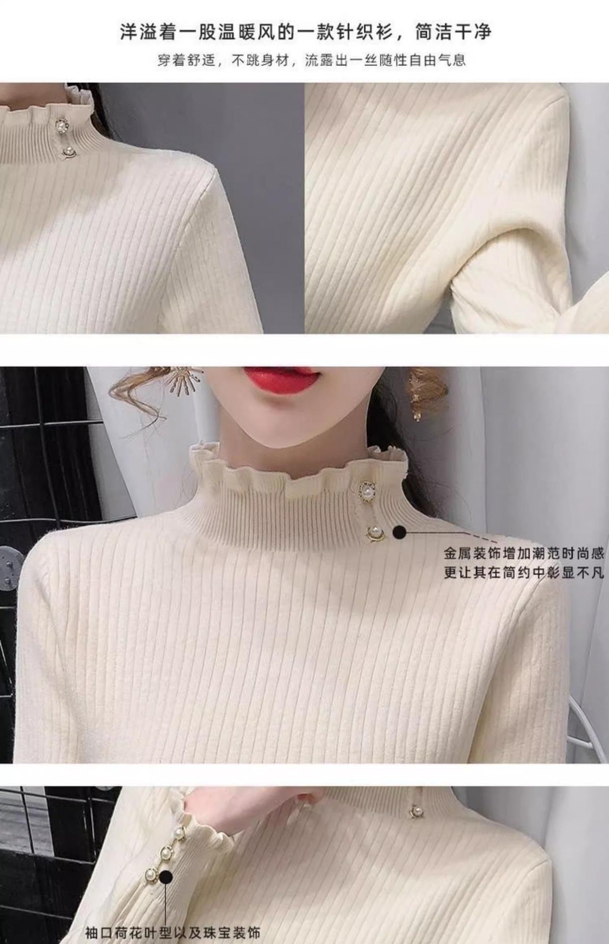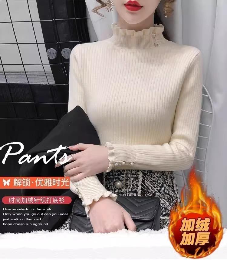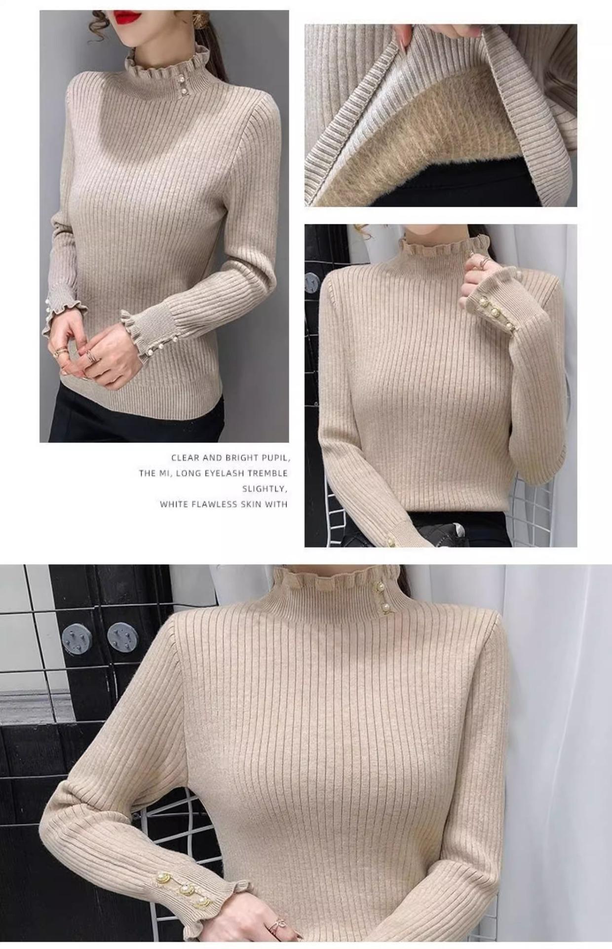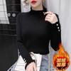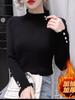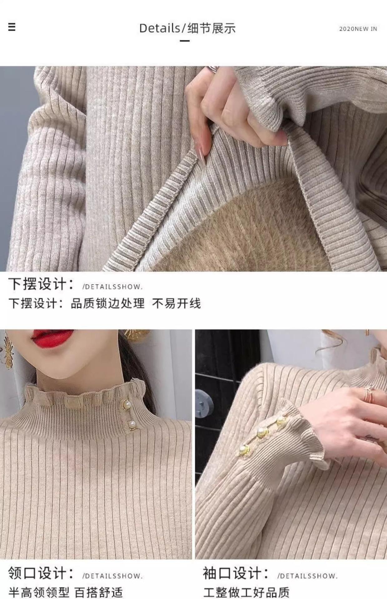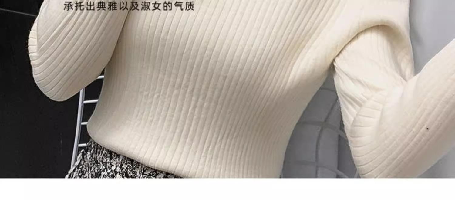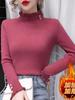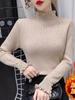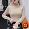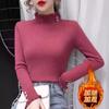 Suéter de Terciopelo Grueso de Una Pieza con Forro Polar para Mujer Nuevo Otoño e Invierno Camiseta Básica Tejida Cuello Medio Alto Estilo Ajustado Cálido Ropa Interior