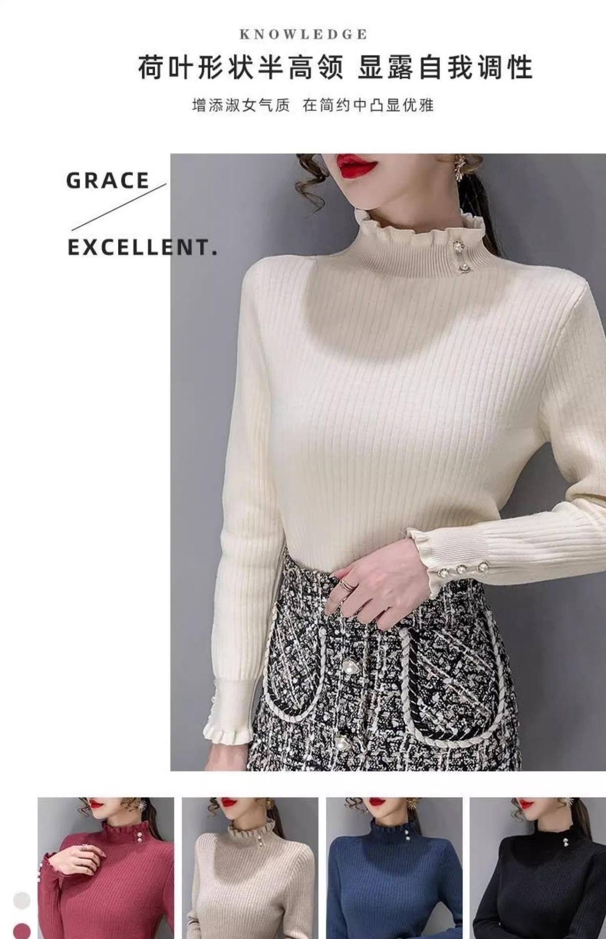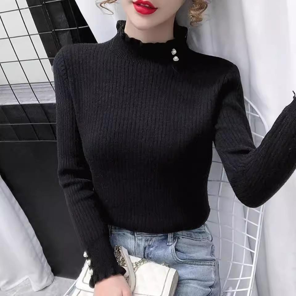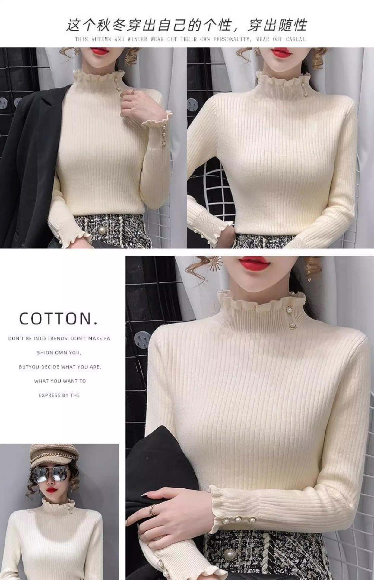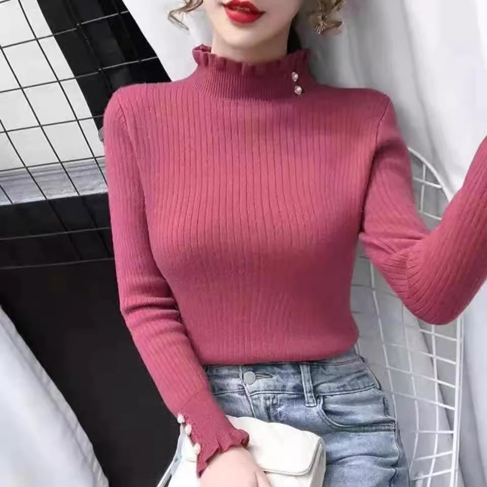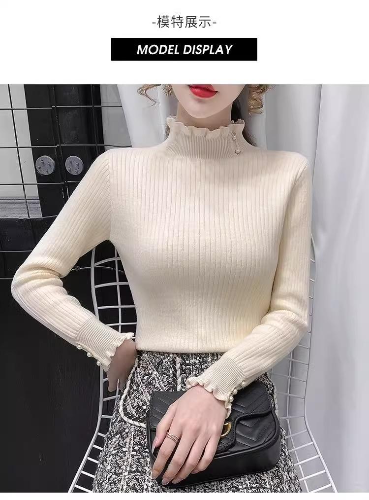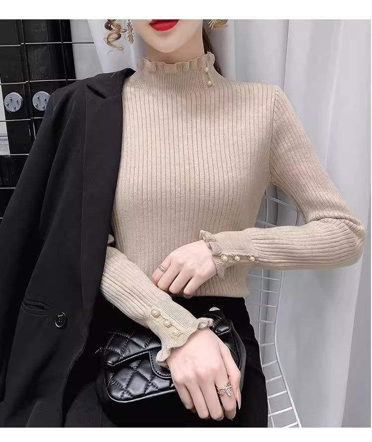 Suéter de Terciopelo Grueso de Una Pieza con Forro Polar para Mujer Nuevo Otoño e Invierno Camiseta Básica Tejida Cuello Medio Alto Estilo Ajustado Cálido Ropa Interior
