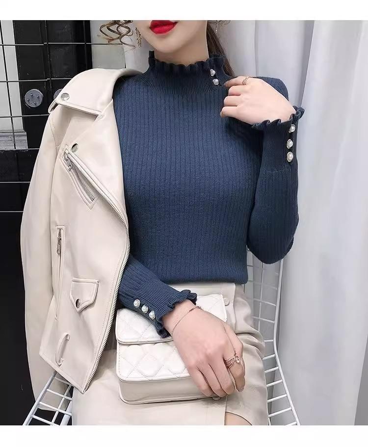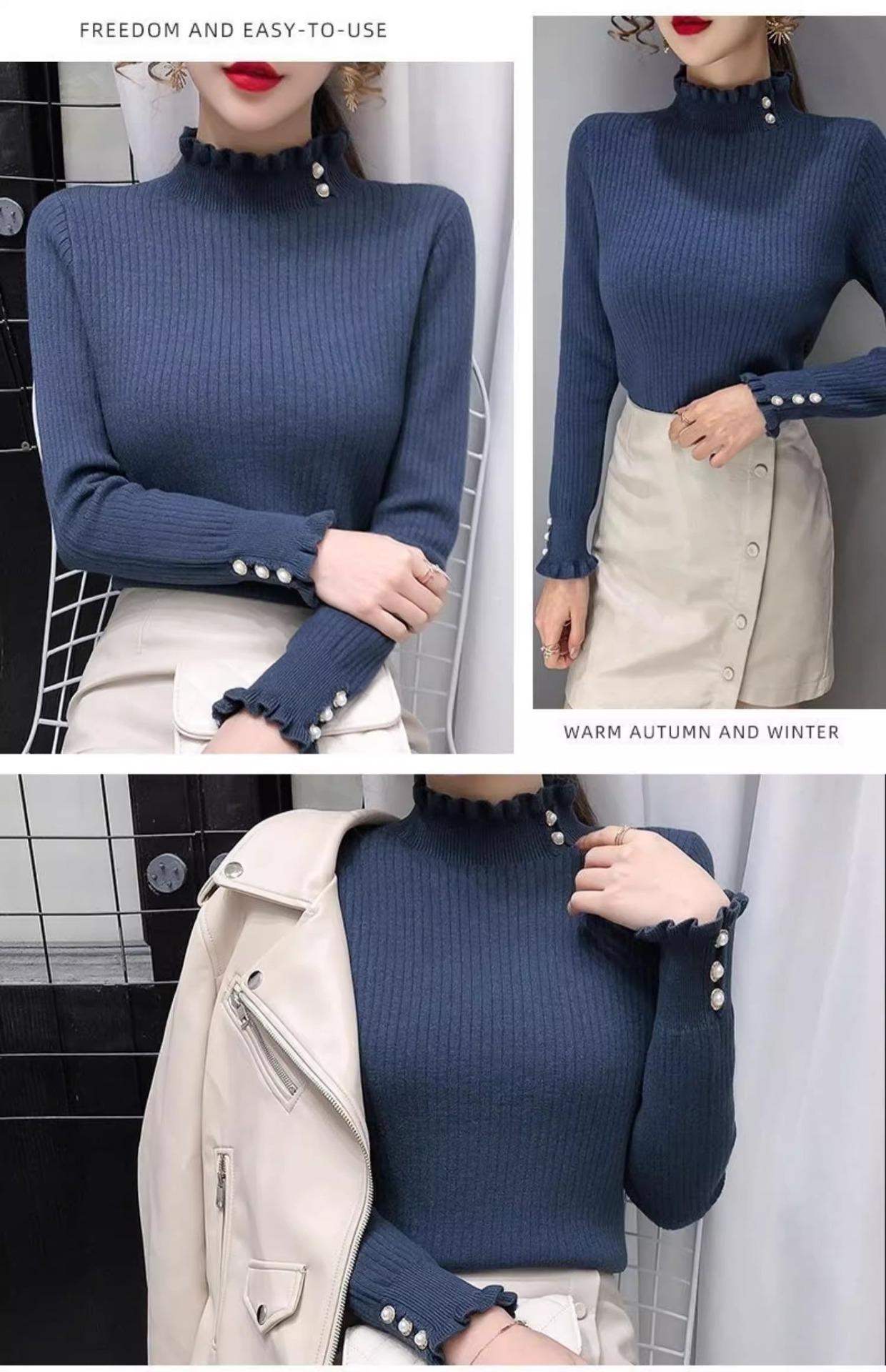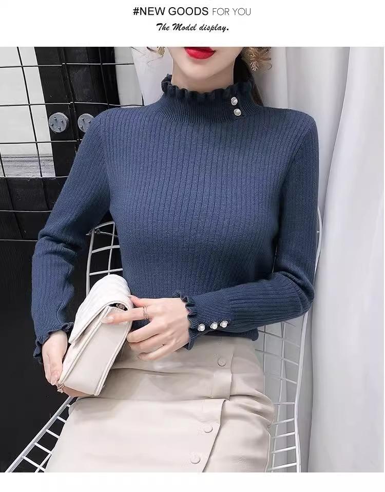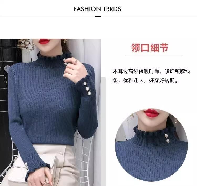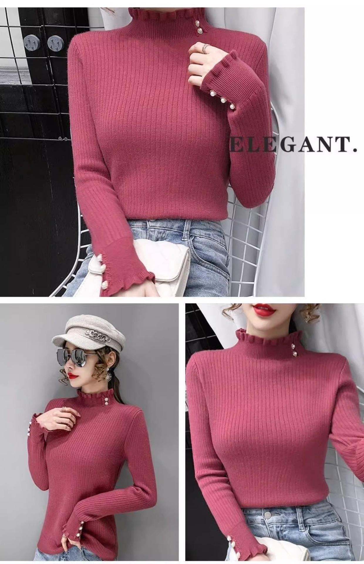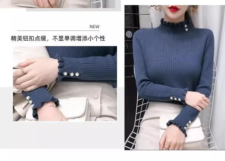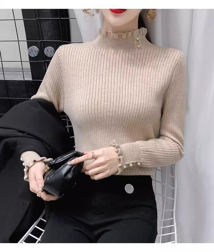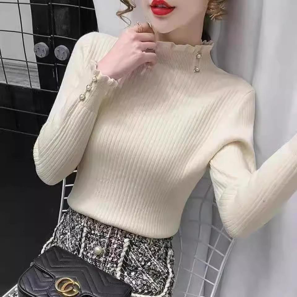 Suéter de Terciopelo Grueso de Una Pieza con Forro Polar para Mujer Nuevo Otoño e Invierno Camiseta Básica Tejida Cuello Medio Alto Estilo Ajustado Cálido Ropa Interior