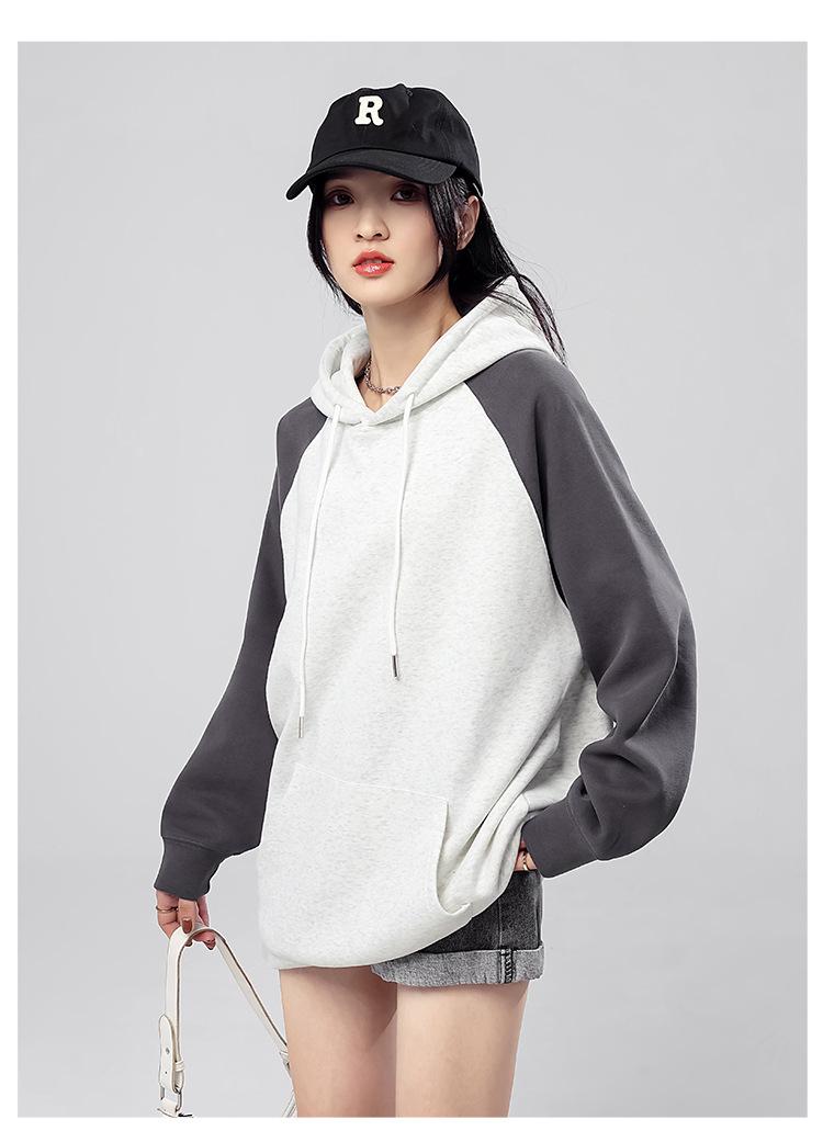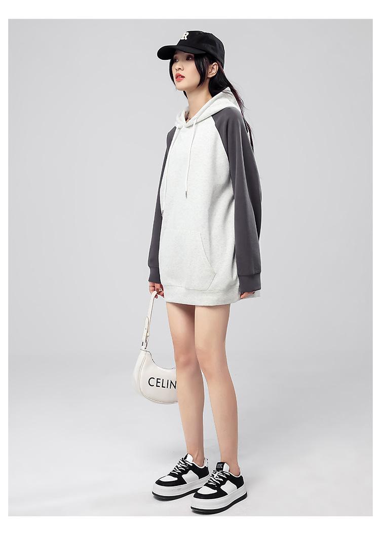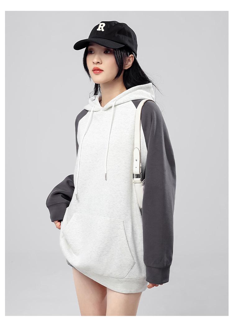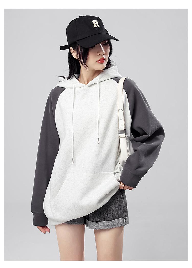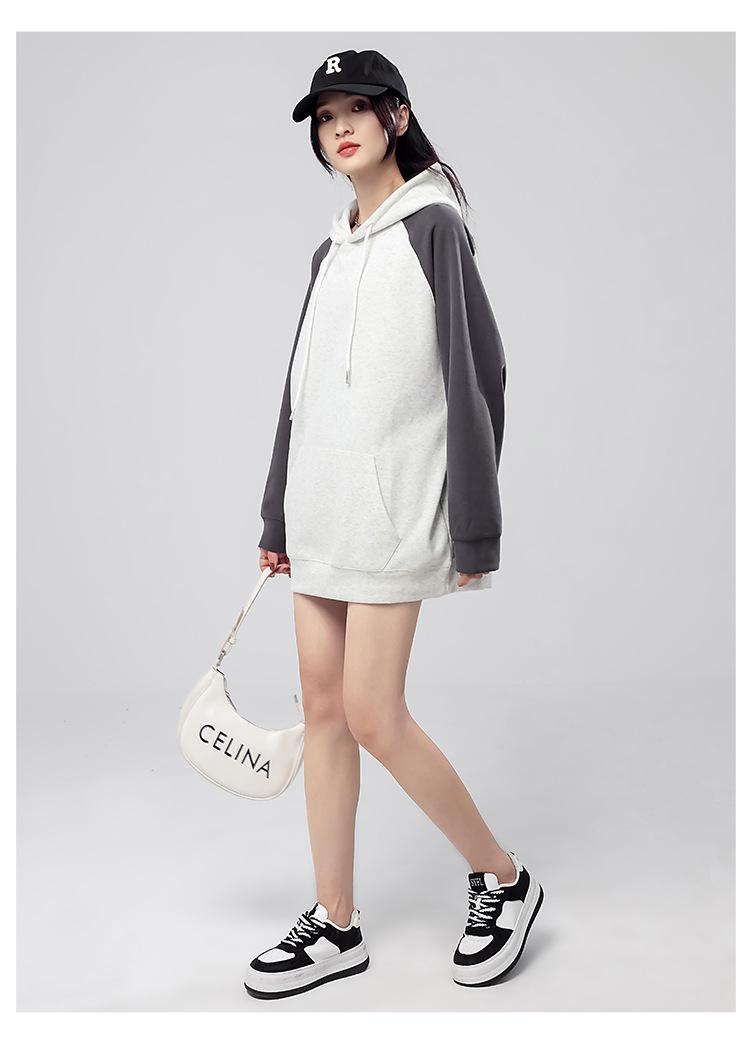 Sudadera con capucha para mujer 2025 Otoño e Invierno Nuevo estilo Patchwork de color contrastante Raglán Holgado Casual Estilo americano Perezoso Top con capucha
