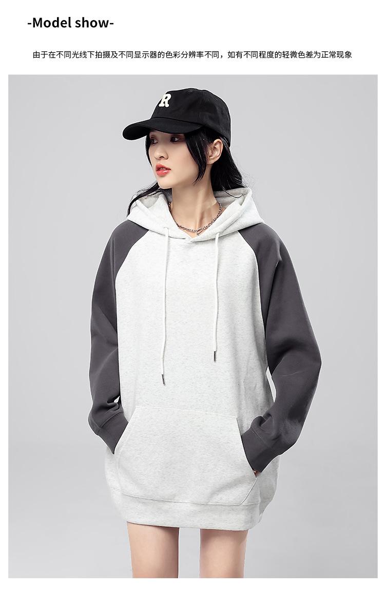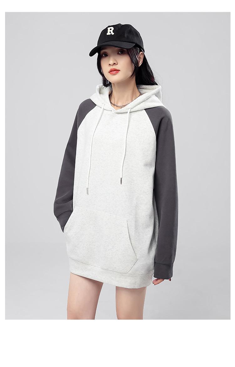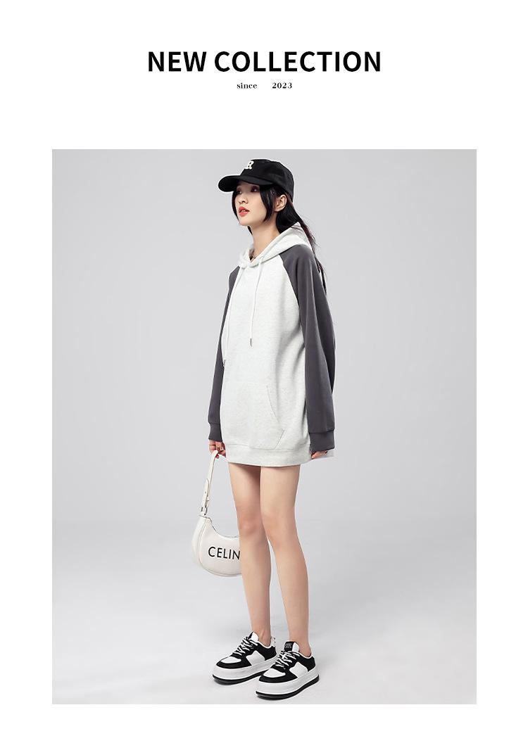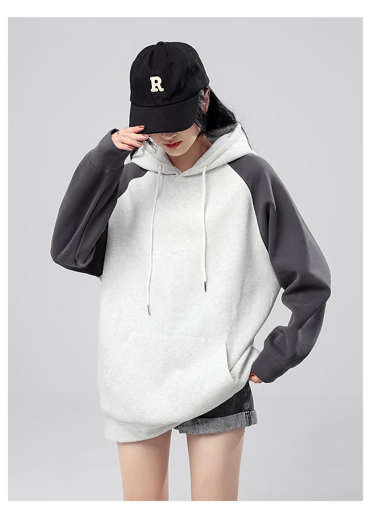 Sudadera con capucha para mujer 2025 Otoño e Invierno Nuevo estilo Patchwork de color contrastante Raglán Holgado Casual Estilo americano Perezoso Top con capucha