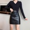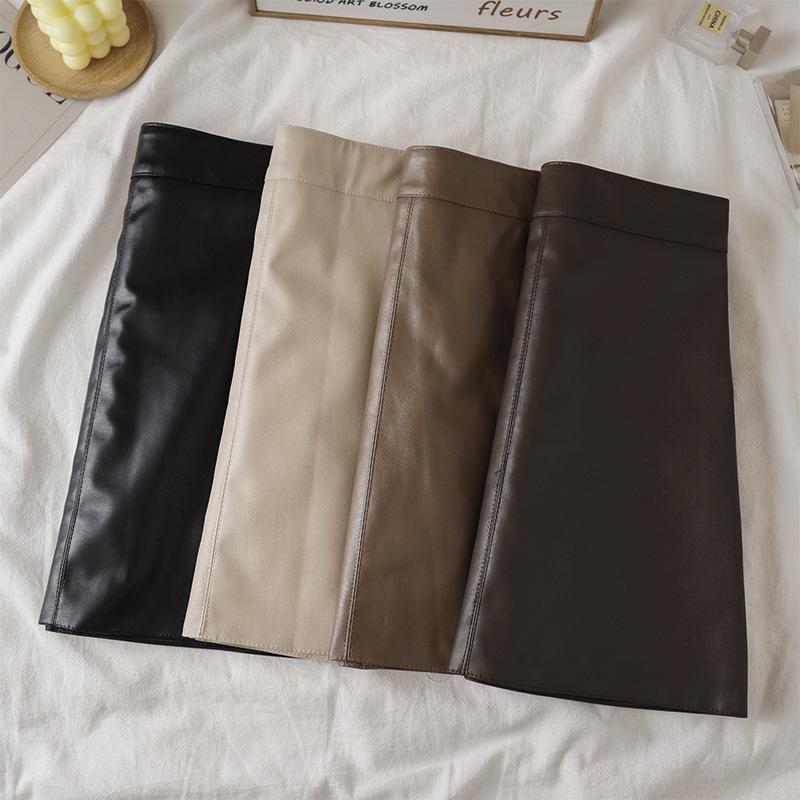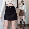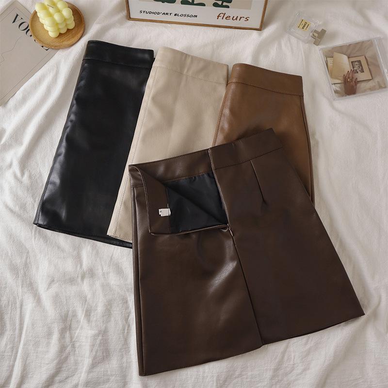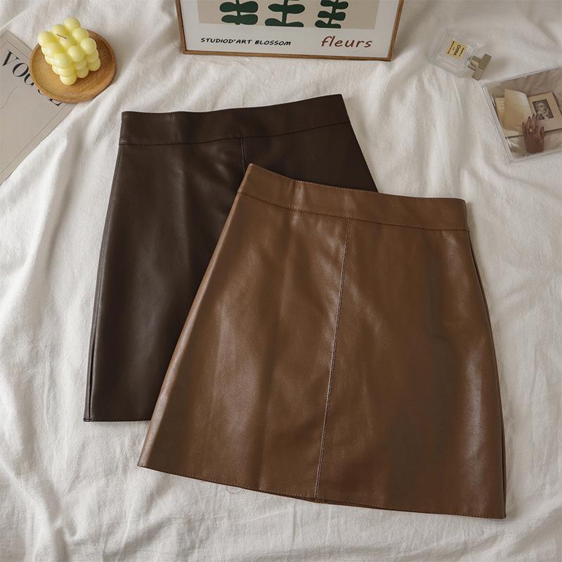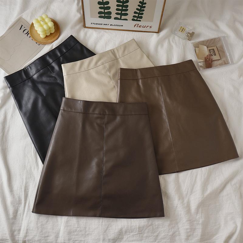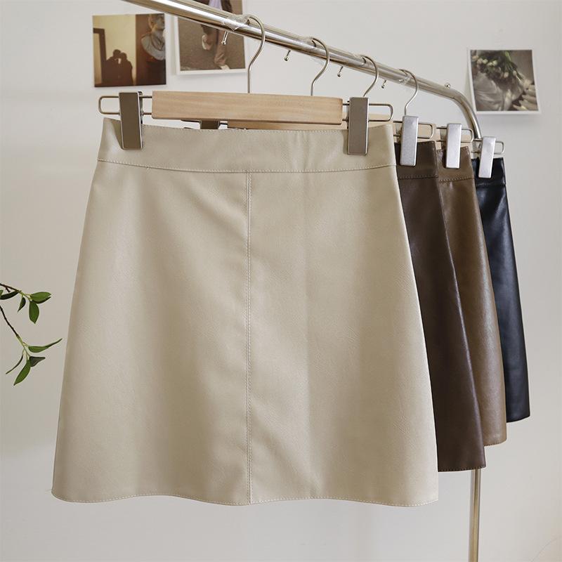 Falda de Cuero PU Falda Línea A Falda Corta Nueva de Otoño e Invierno para Mujer Negra Cubre Caderas Falda Corta de Cintura Alta Pequeña Adelgazante Cubre Caderas