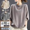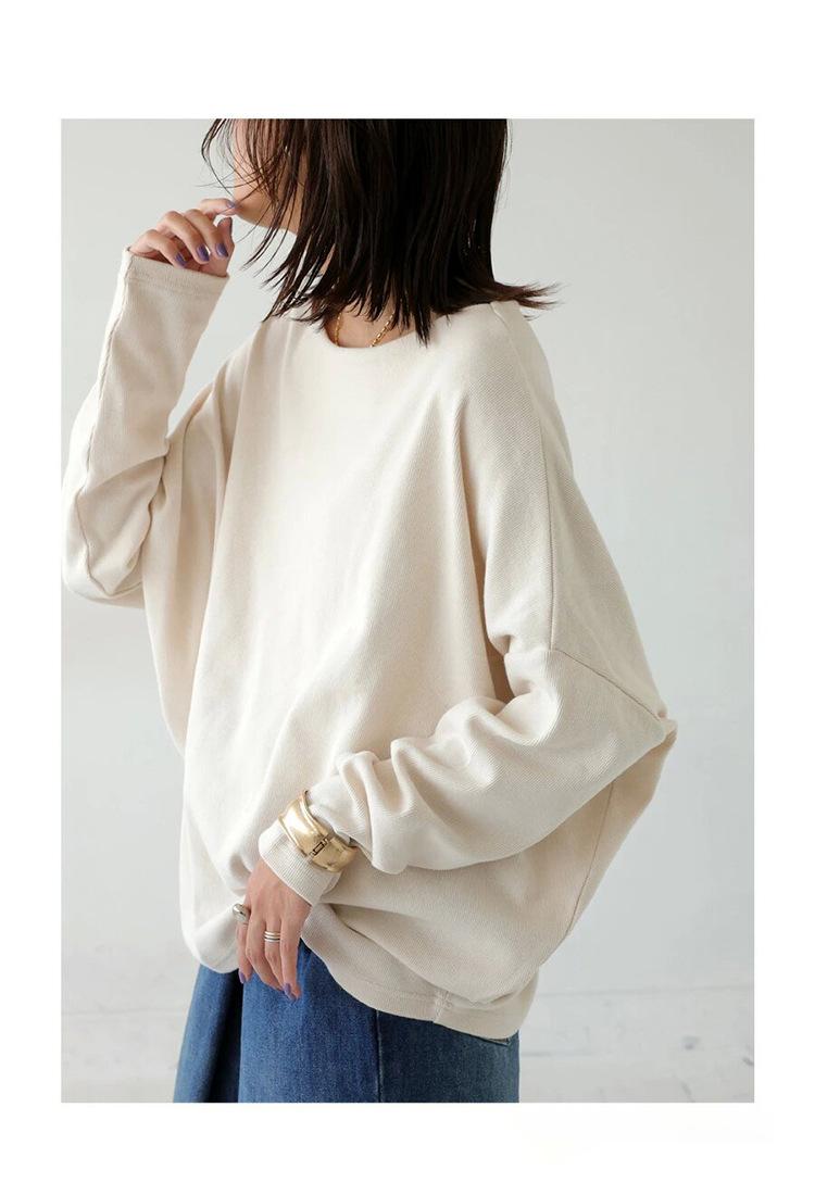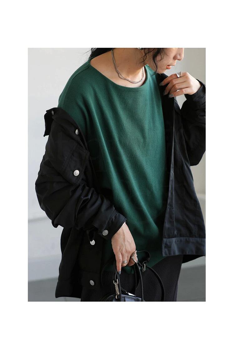 Camiseta de manga larga para mujer, estilo japonés y coreano, de otoño, de color liso, holgada, con cuello redondo