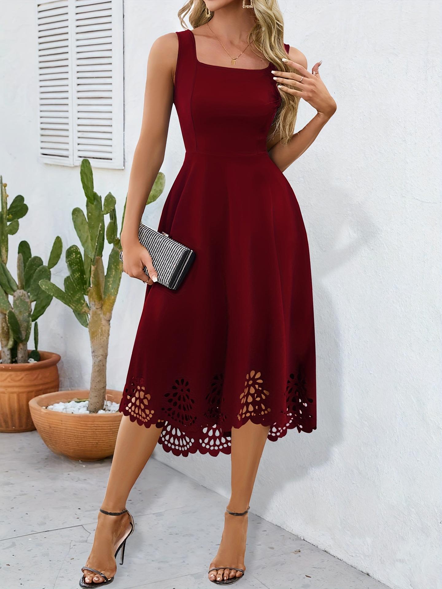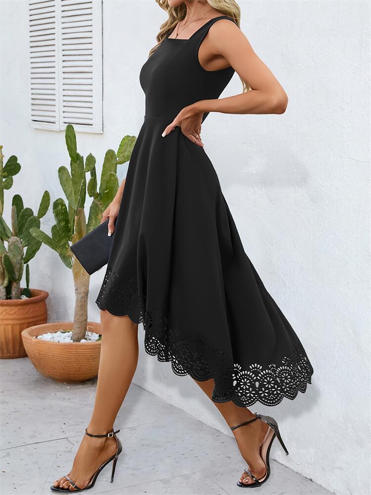 Falda para Mujer 2024 Nueva Elegante Dobladillo Irregular Flor Calado Vestido Chaleco 通勤 Color Sólido Falda Larga para Mujer