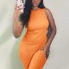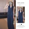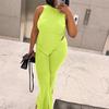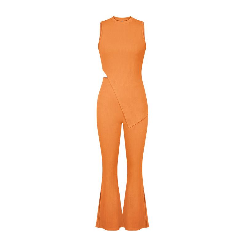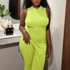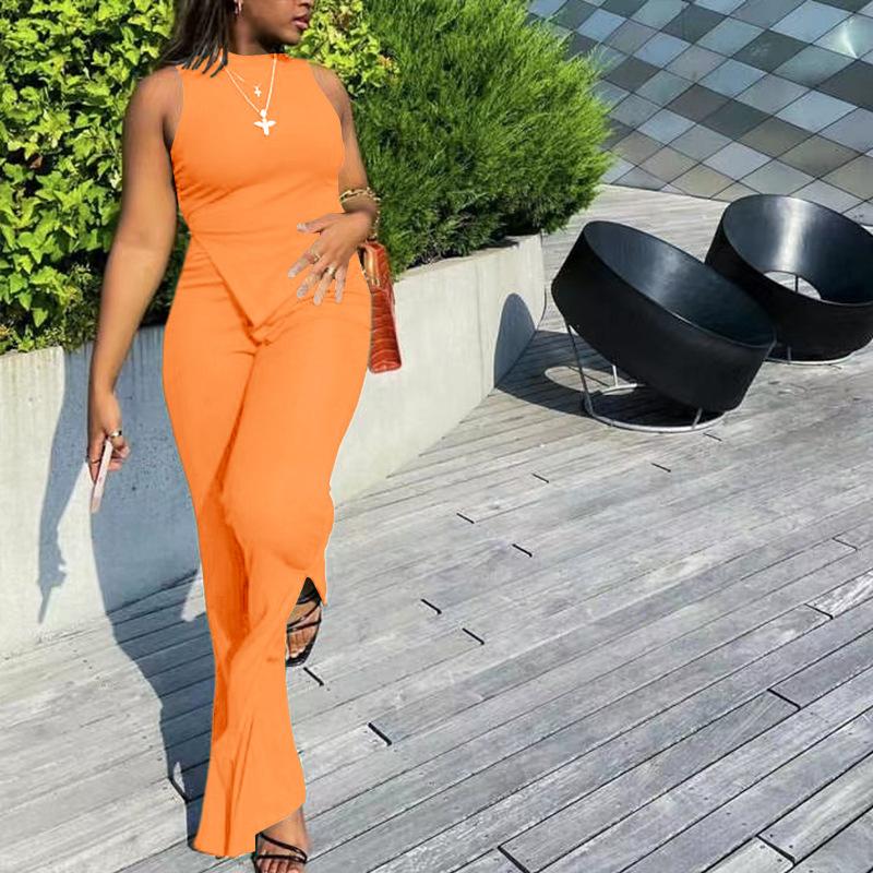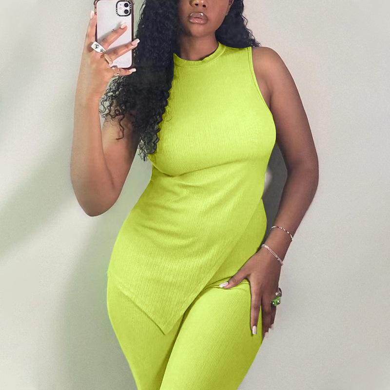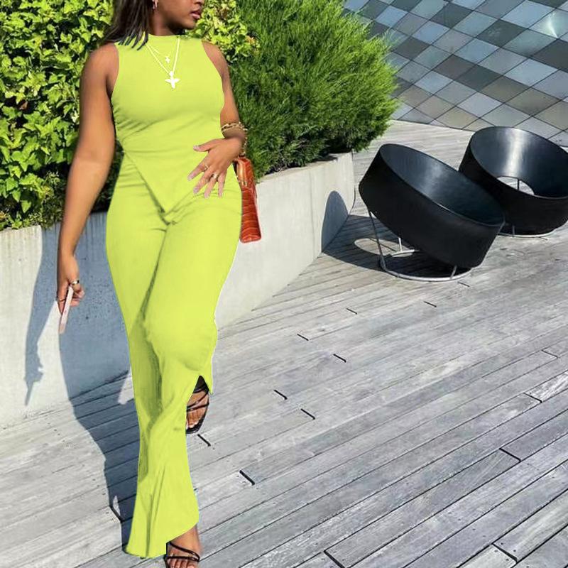 Nuevo Conjunto Europeo y Americano 2023 Color Puro Elegante Commuter Chaleco sin Mangas Pantalones con Abertura Conjunto de Dos Piezas Casual a la Moda para Mujeres