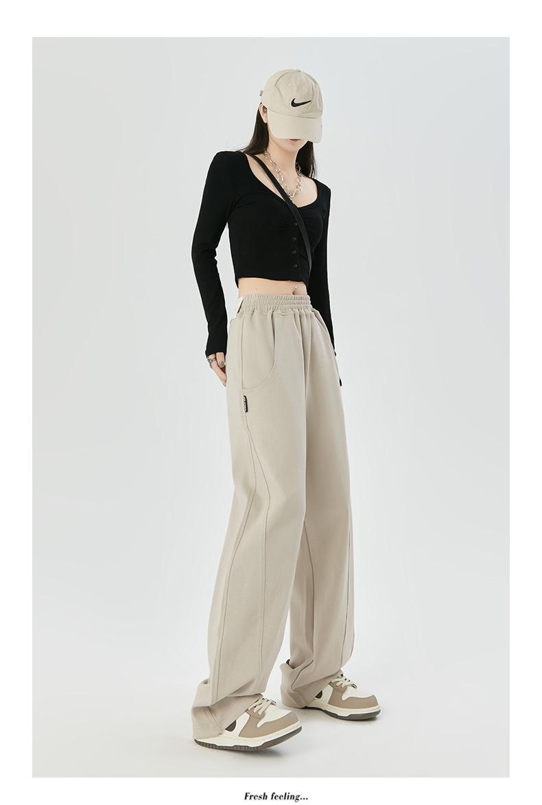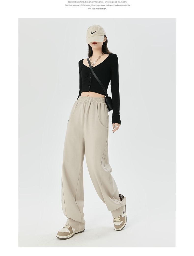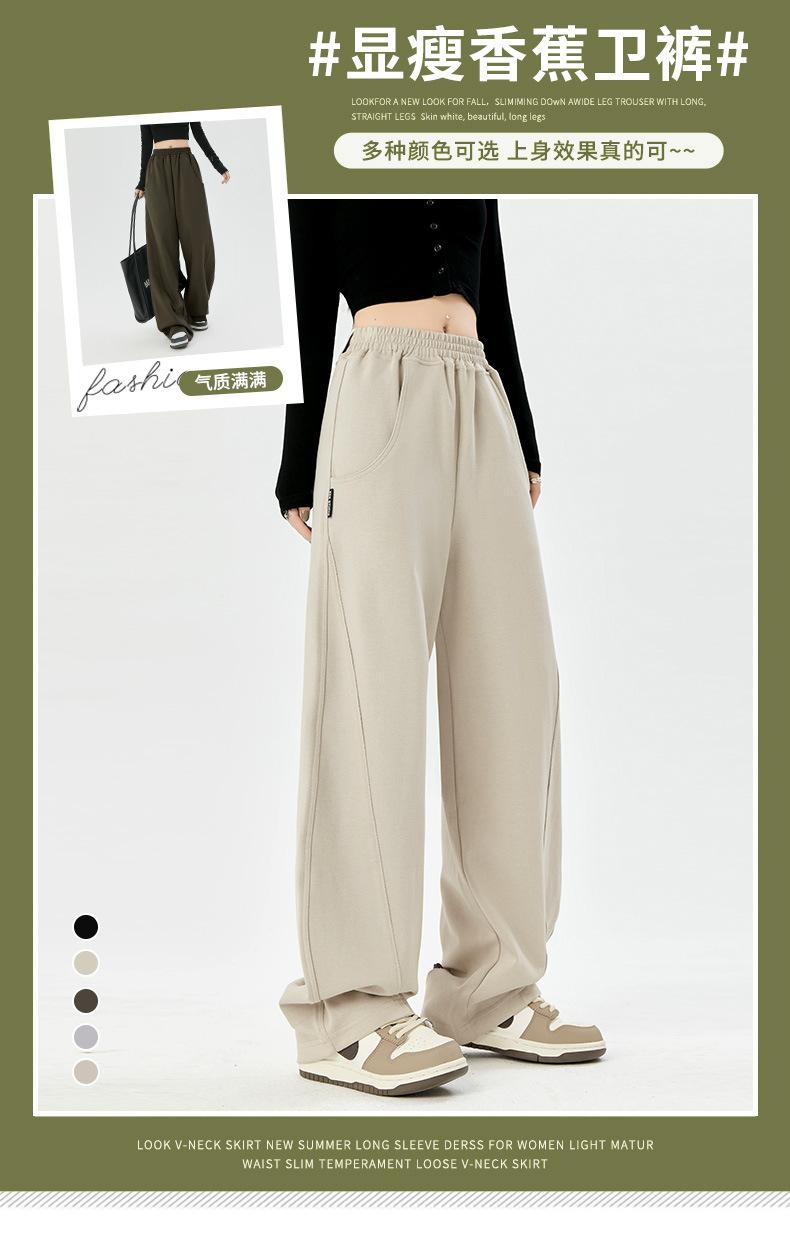 Pantalones deportivos americanos de otoño para mujer 2024 Nuevos Pantalones casuales de pierna ancha con aspecto suelto y adelgazante Pantalones tipo plátano estrechos