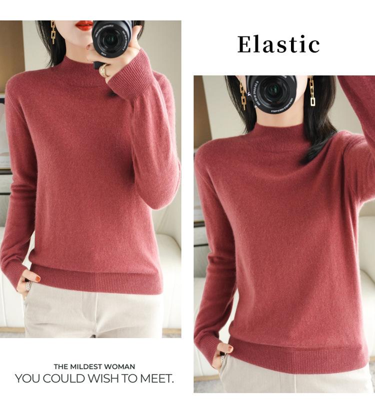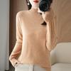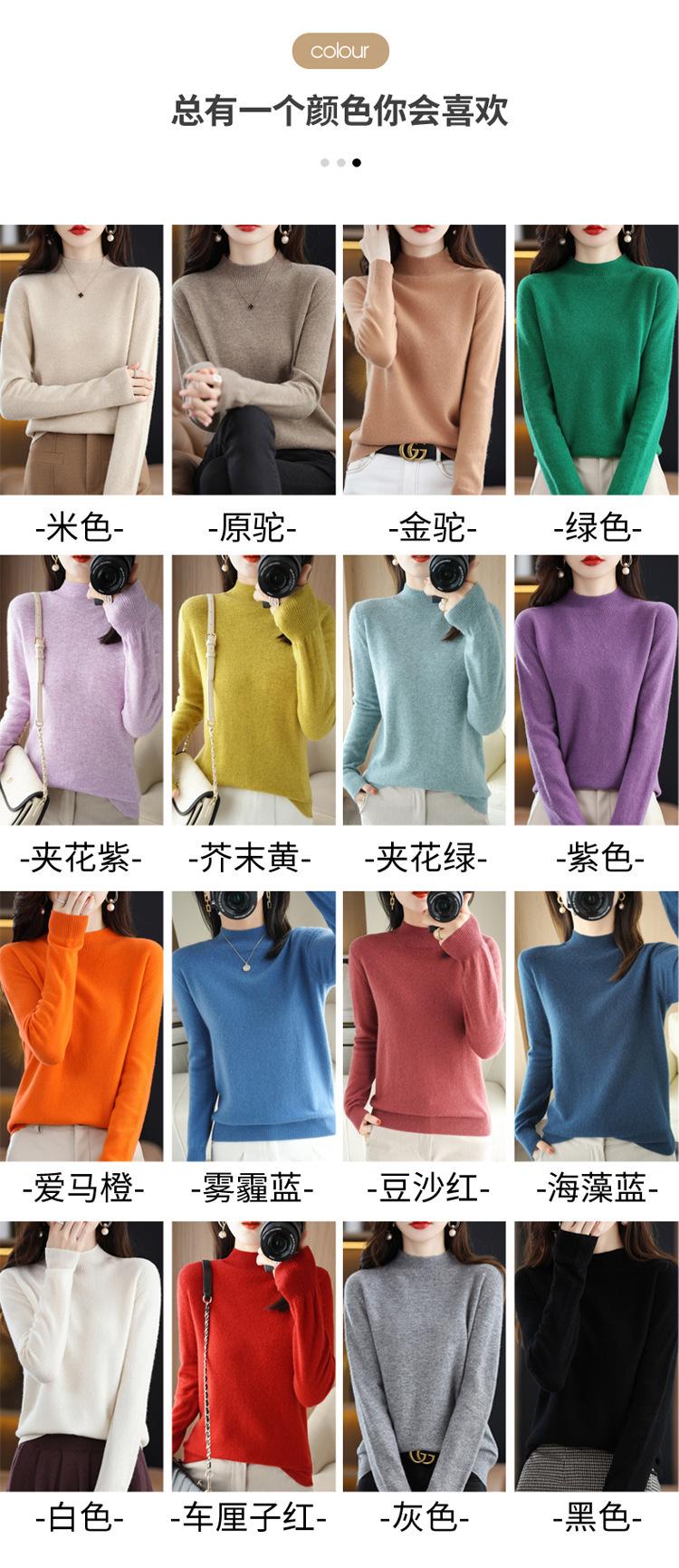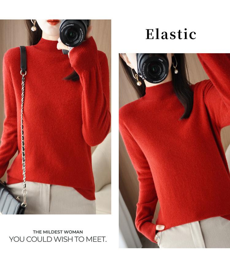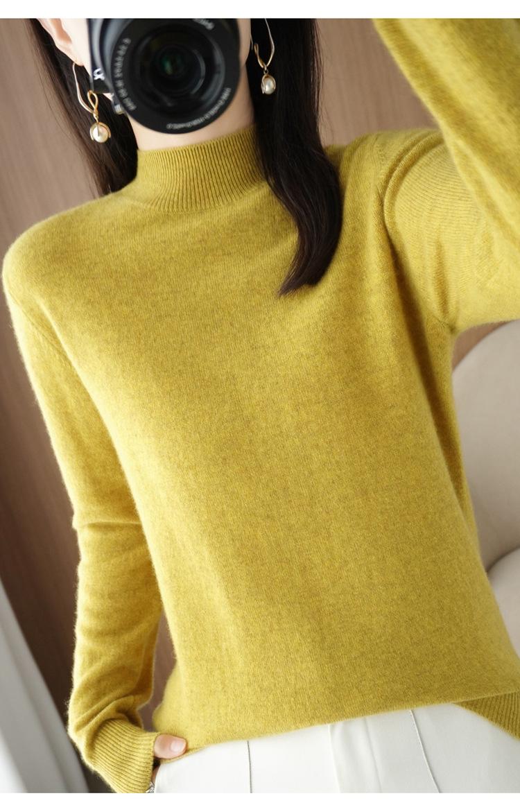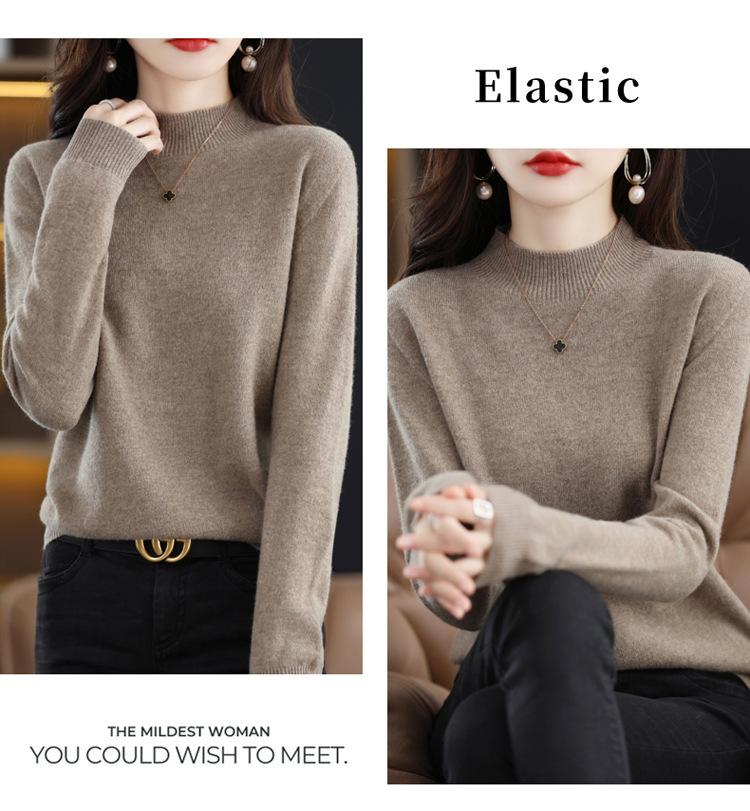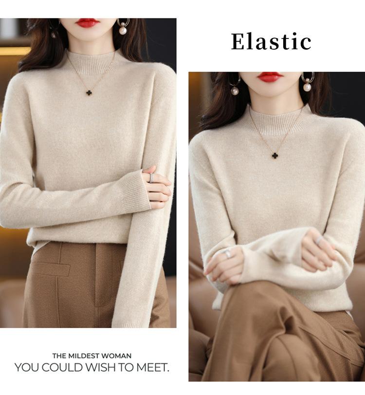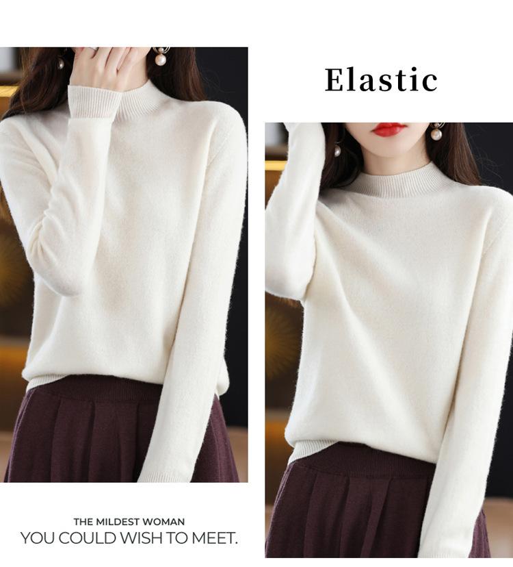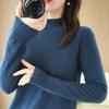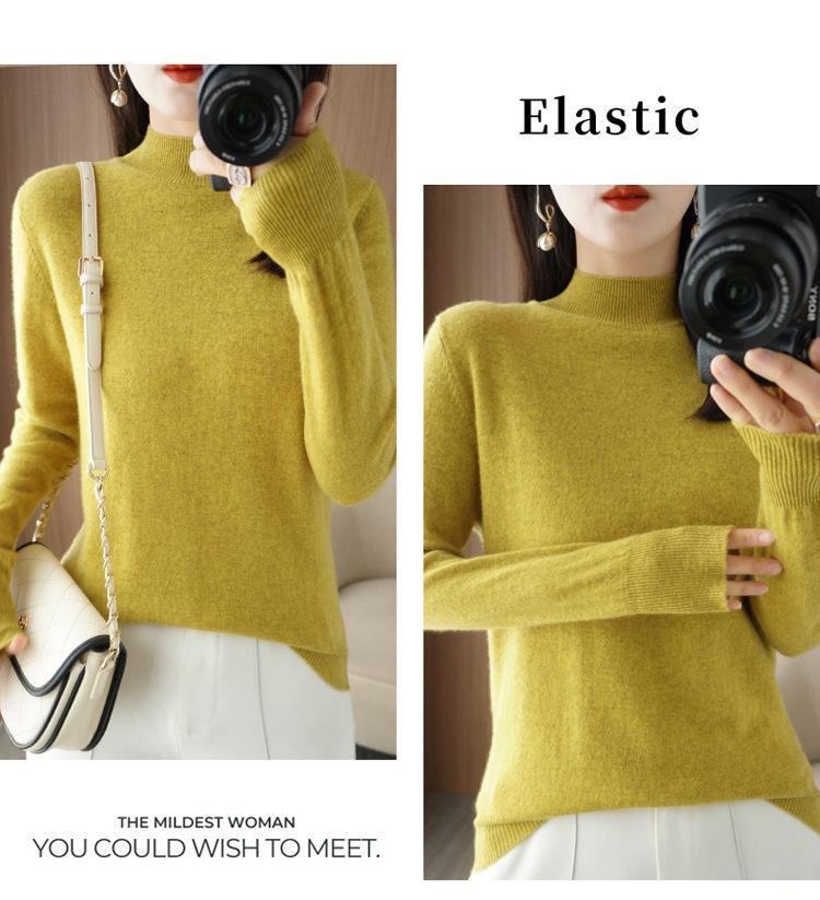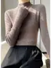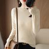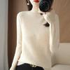 Suéter interior de otoño e invierno para mujer, suéter de color liso, cálido, de cuello medio alto, nuevo, de punto, de manga larga corta y ajustado.