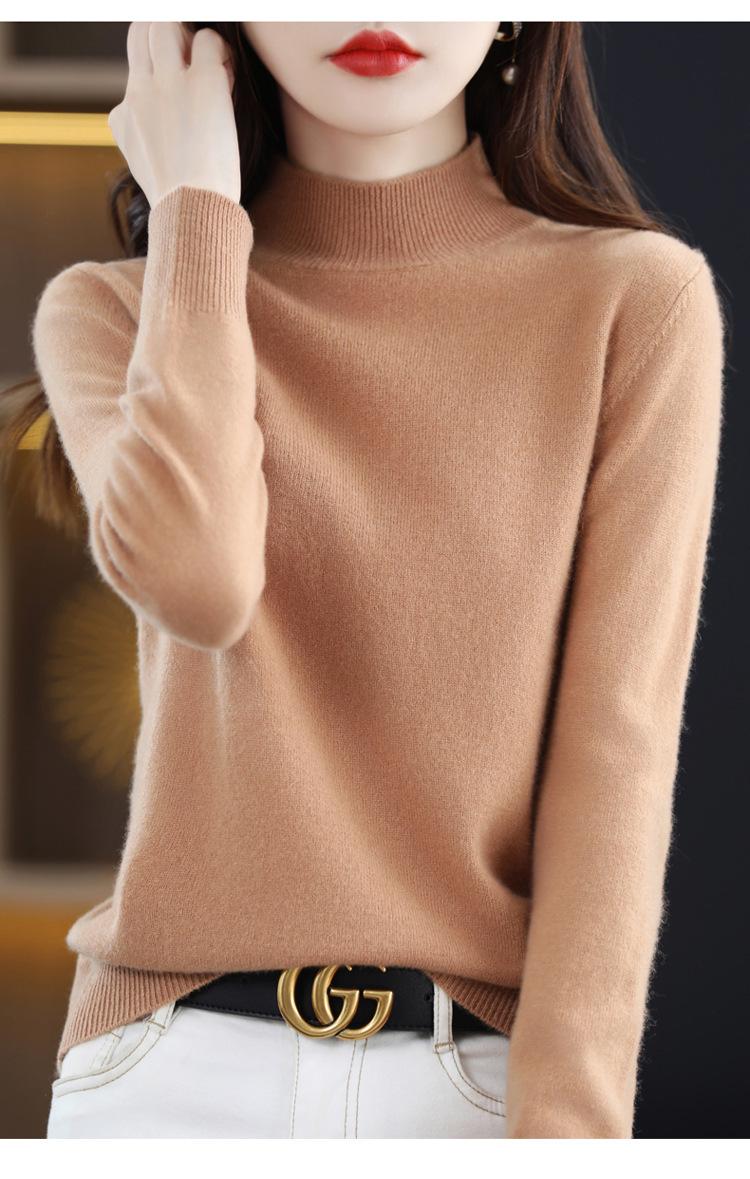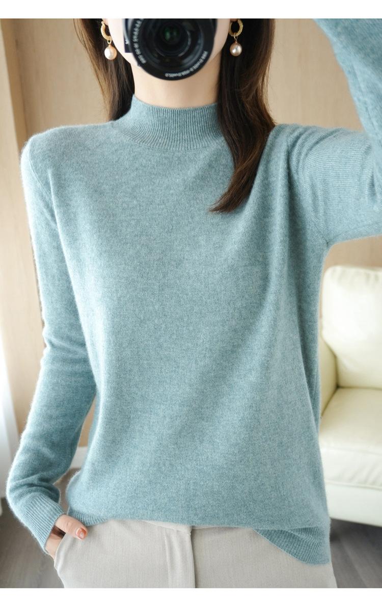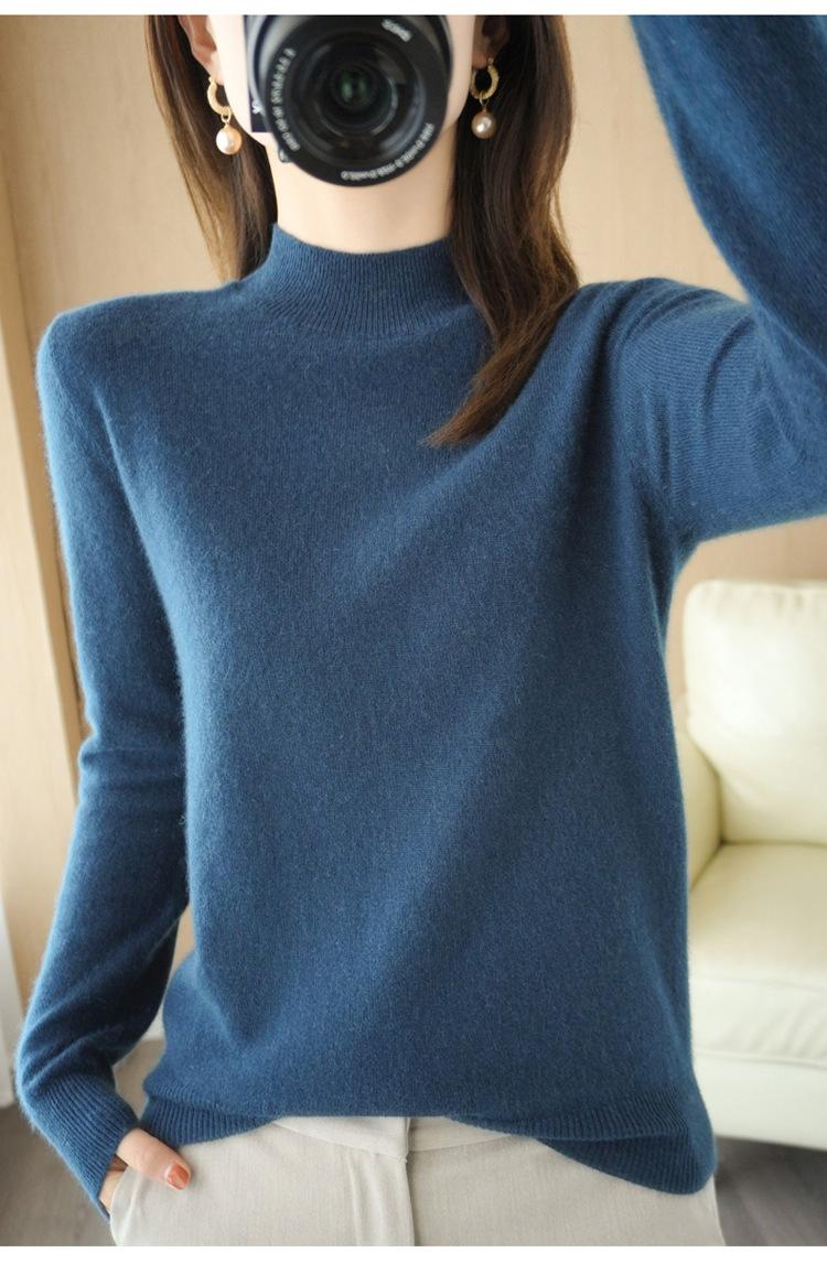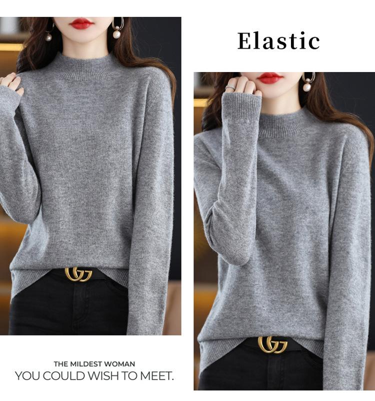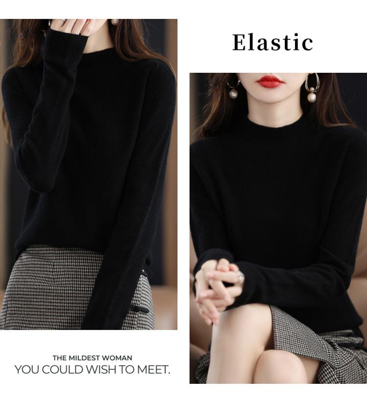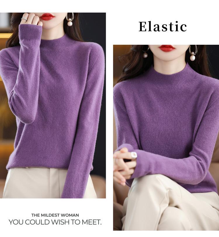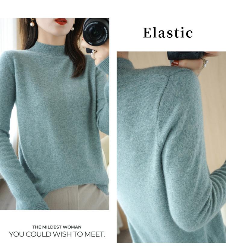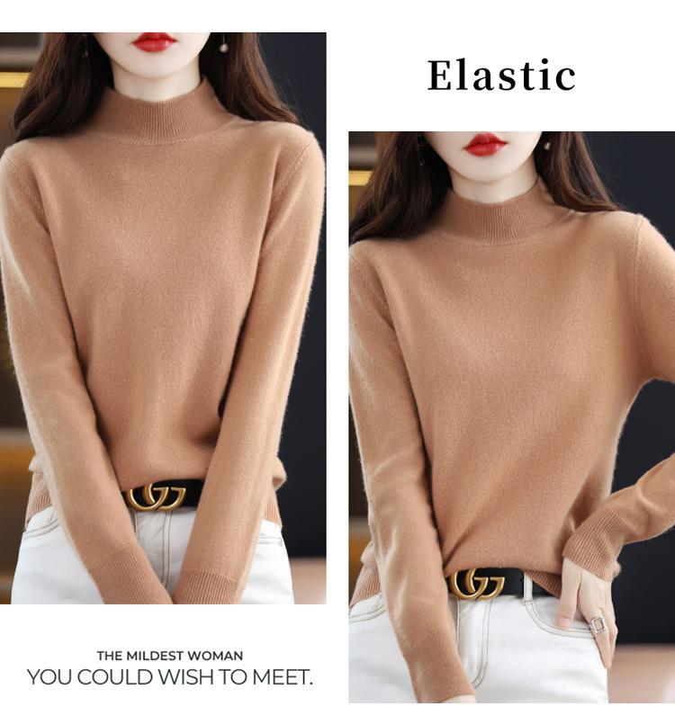Suéter interior de otoño e invierno para mujer, suéter de color liso, cálido, de cuello medio alto, nuevo, de punto, de manga larga corta y ajustado.