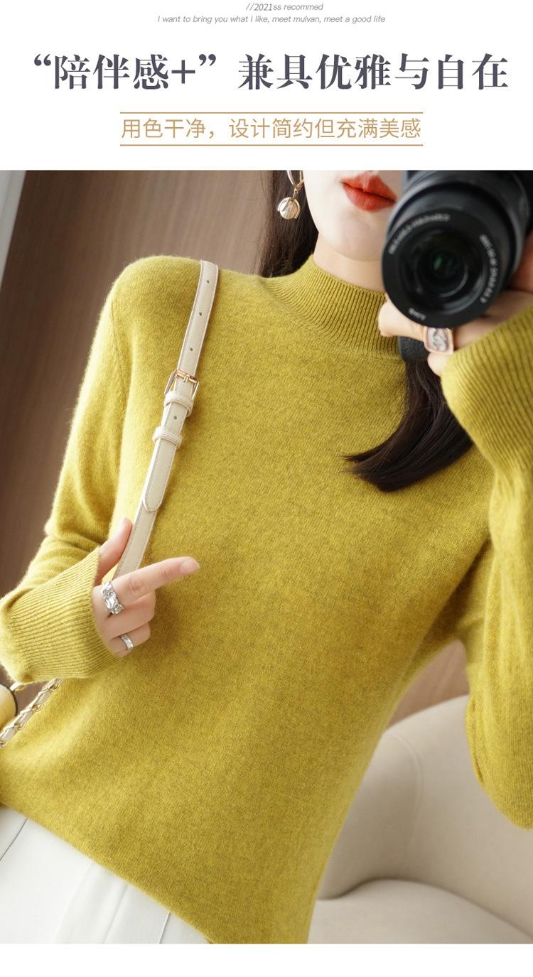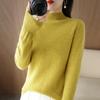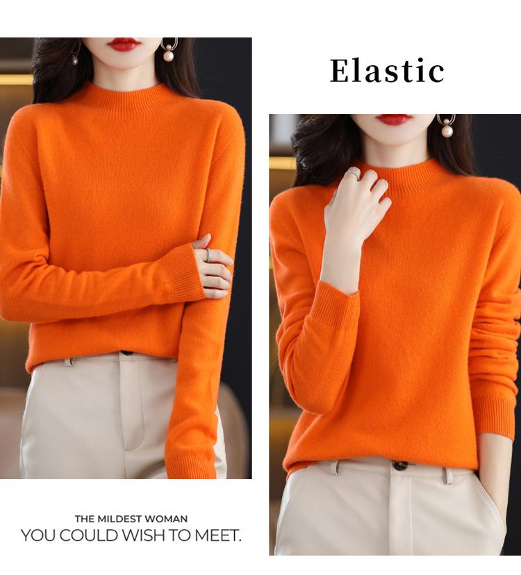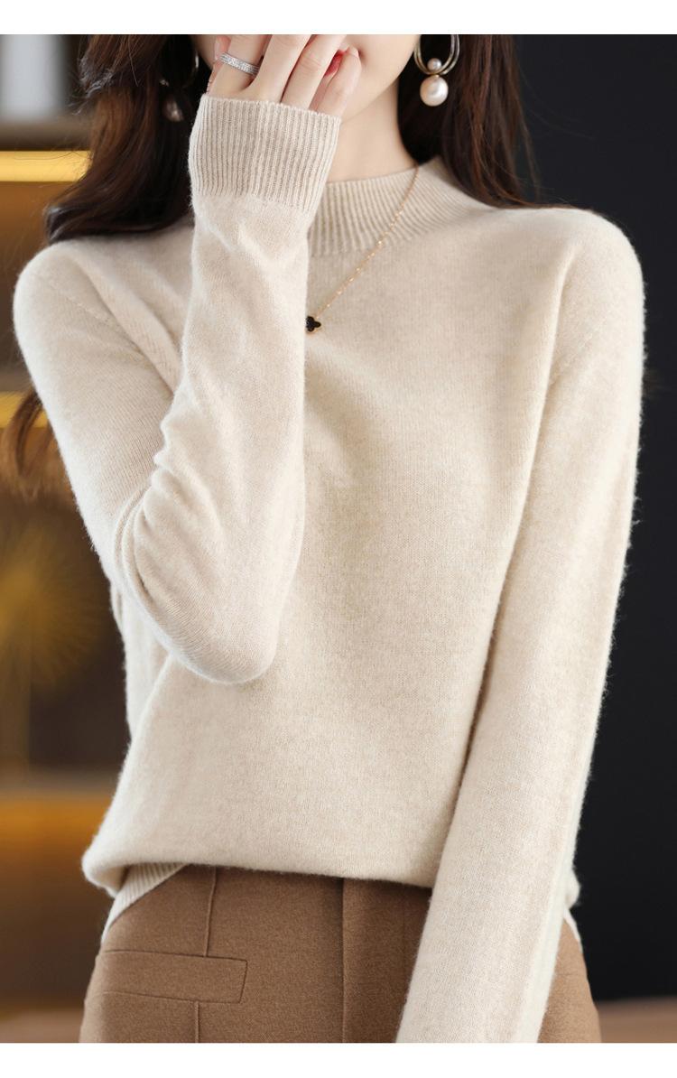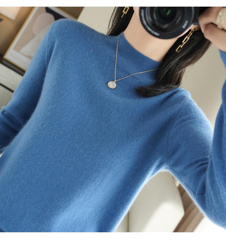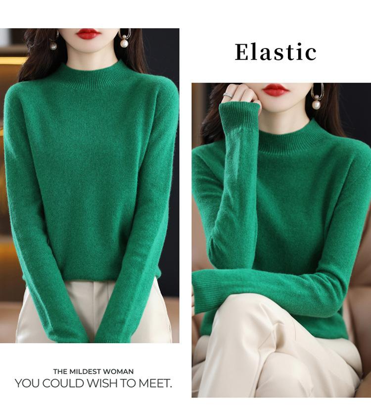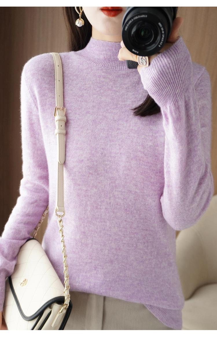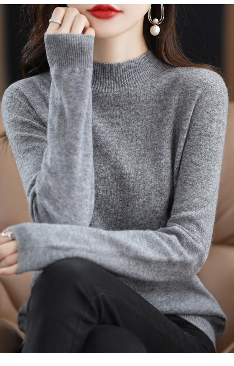 Suéter interior de otoño e invierno para mujer, suéter de color liso, cálido, de cuello medio alto, nuevo, de punto, de manga larga corta y ajustado.