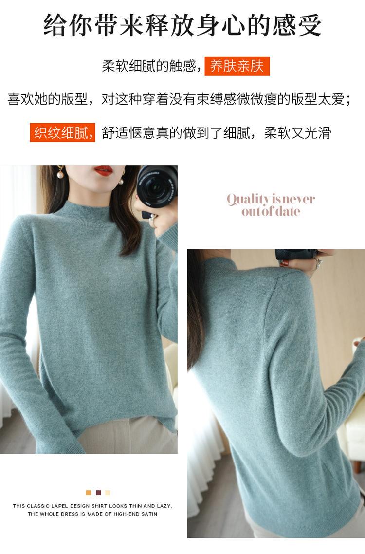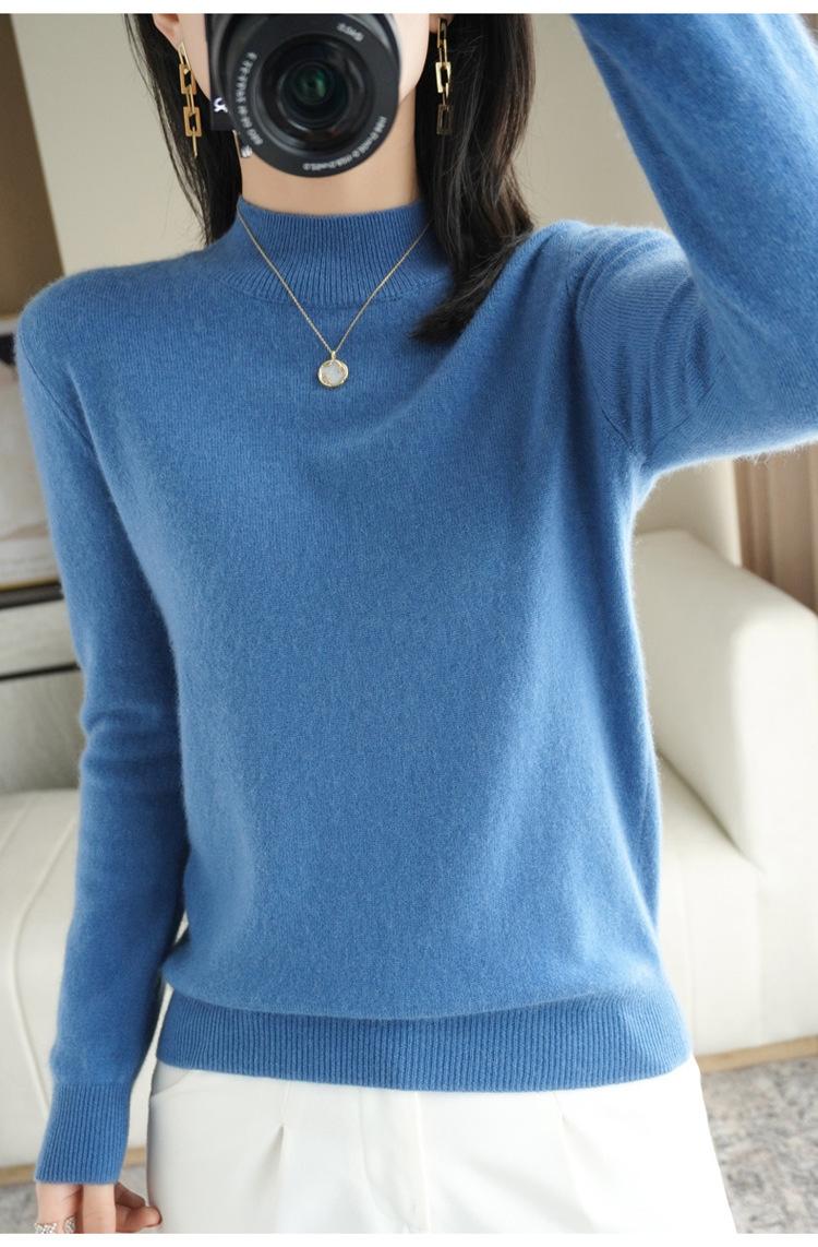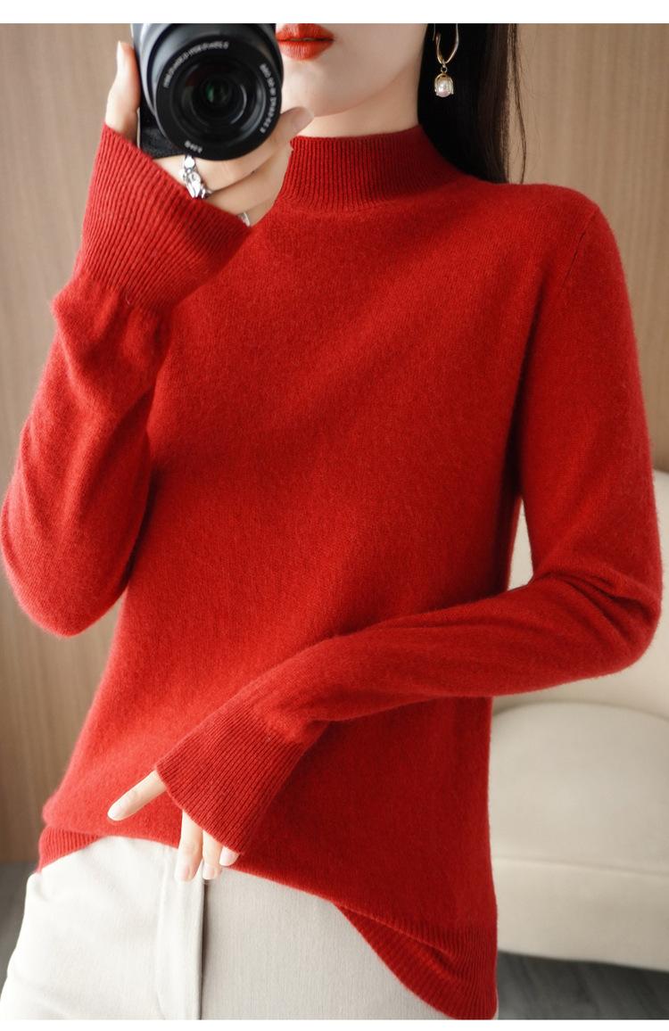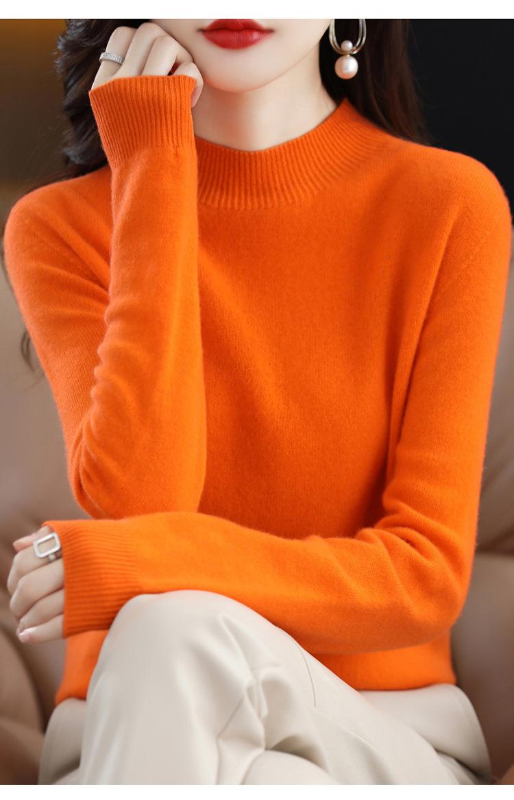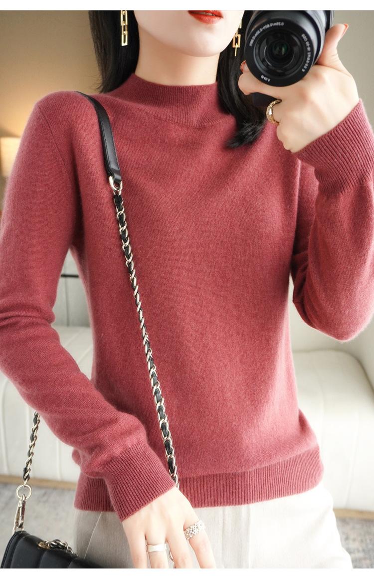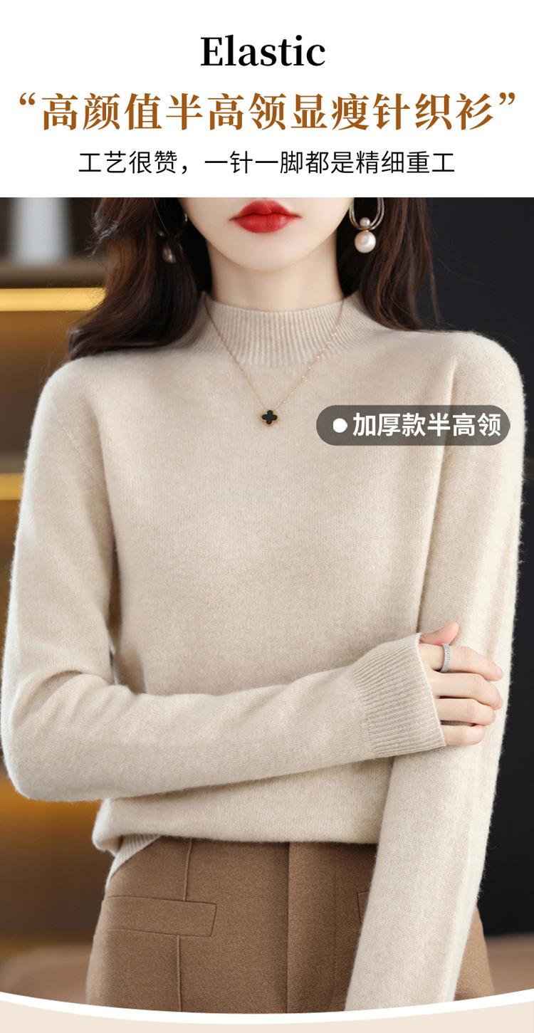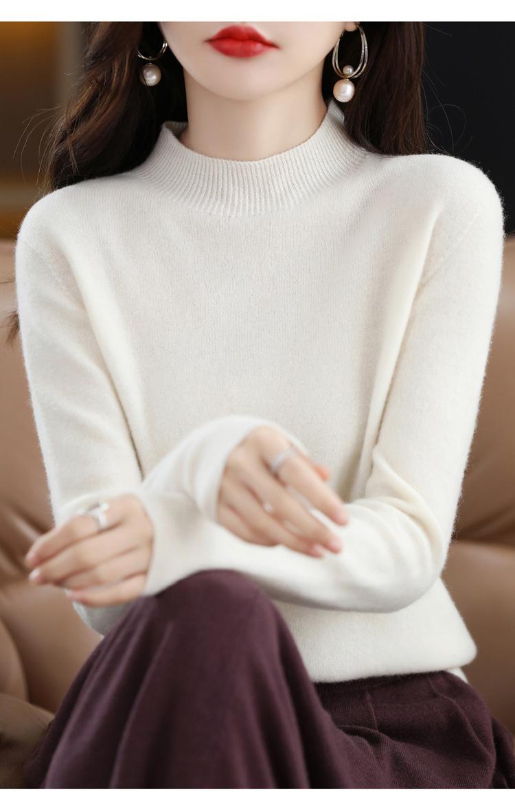 Suéter interior de otoño e invierno para mujer, suéter de color liso, cálido, de cuello medio alto, nuevo, de punto, de manga larga corta y ajustado.