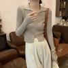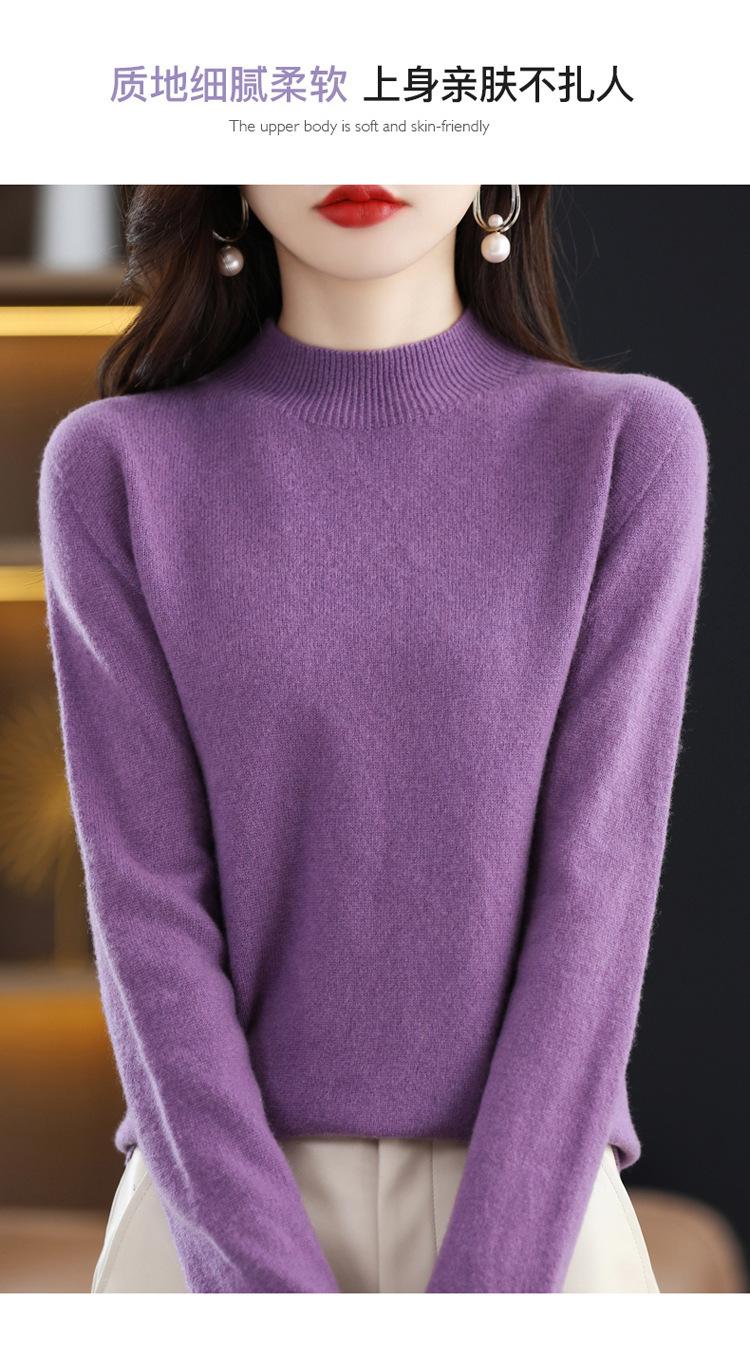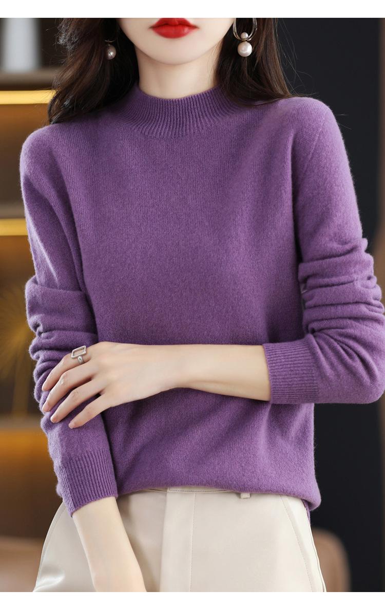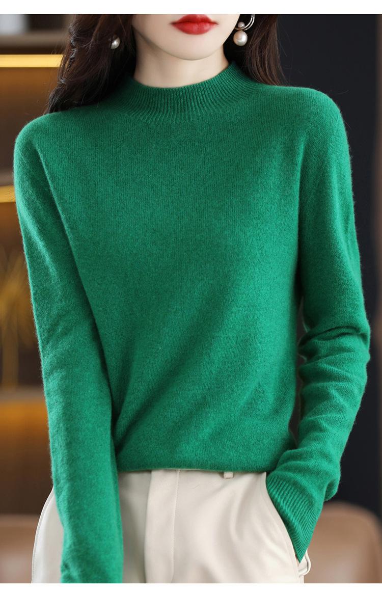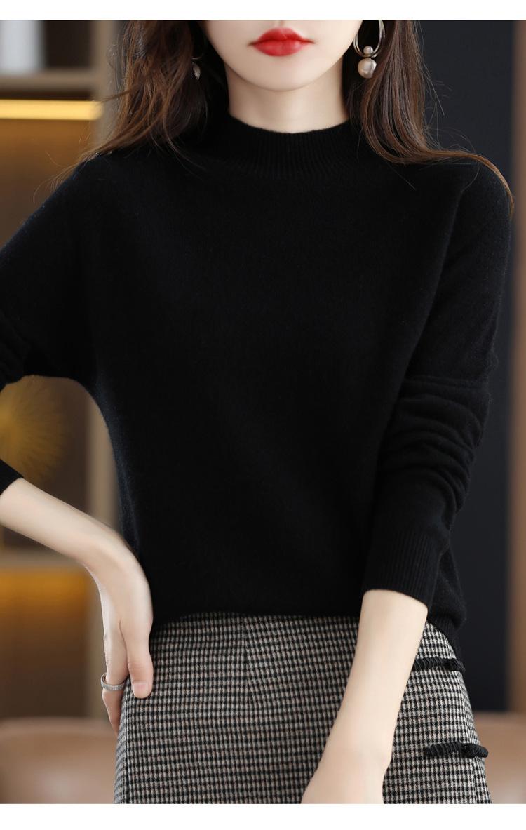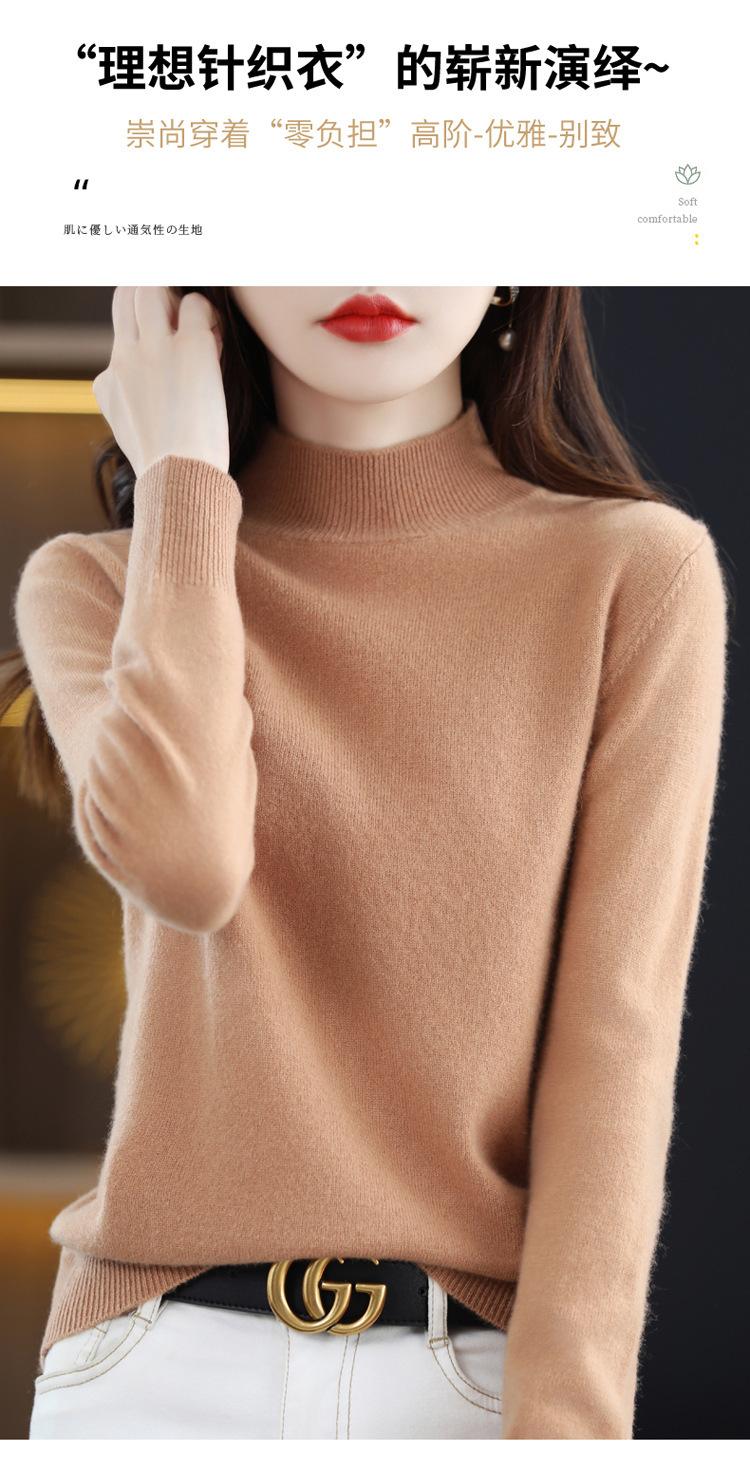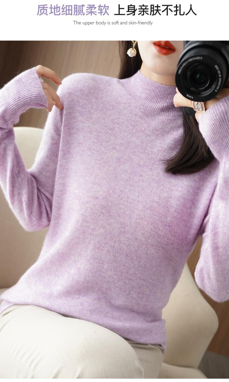 Suéter interior de otoño e invierno para mujer, suéter de color liso, cálido, de cuello medio alto, nuevo, de punto, de manga larga corta y ajustado.