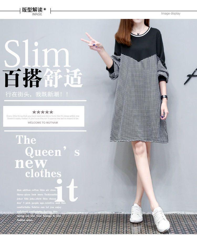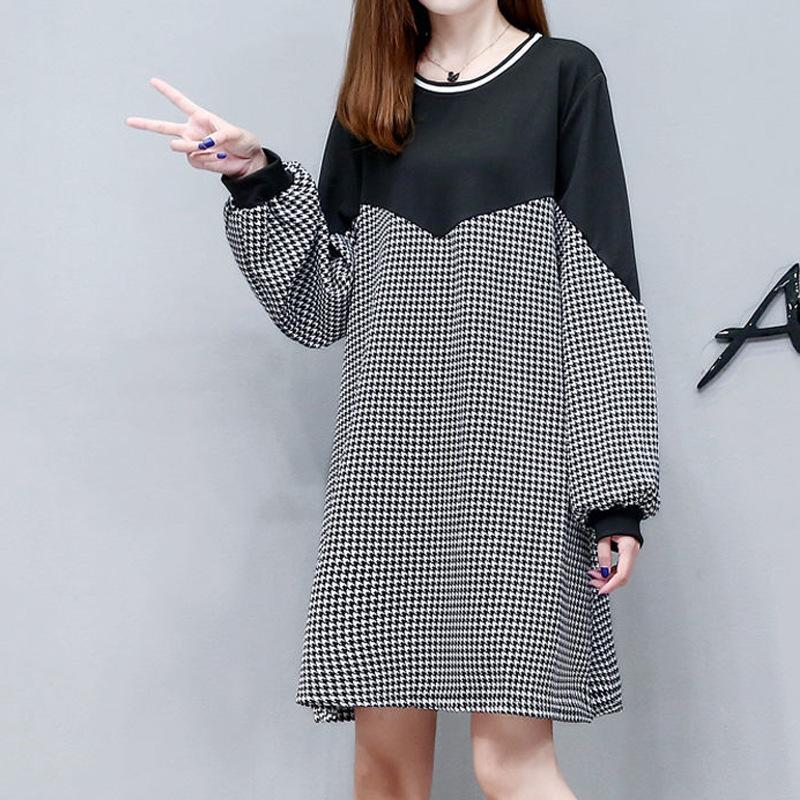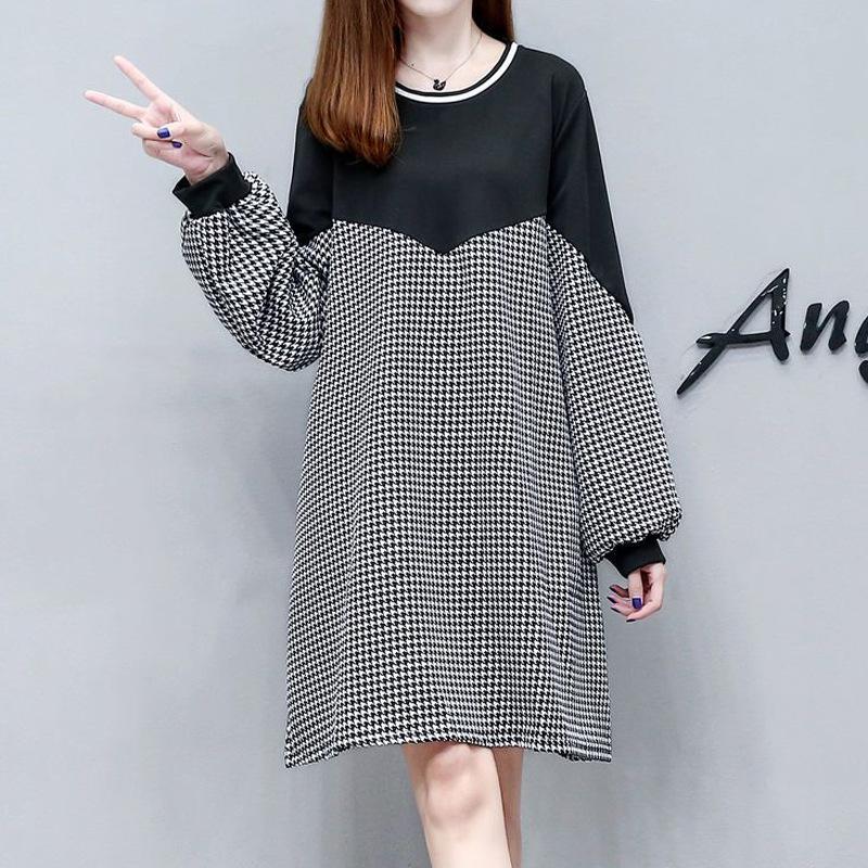 Ropa para embarazadas, primavera y otoño, moda coreana, falda larga de pata de gallo, conjunto de dos piezas para madre embarazada de talla grande